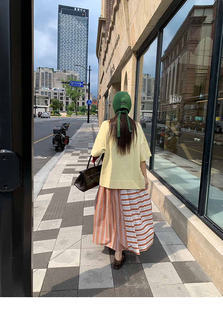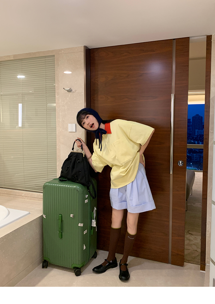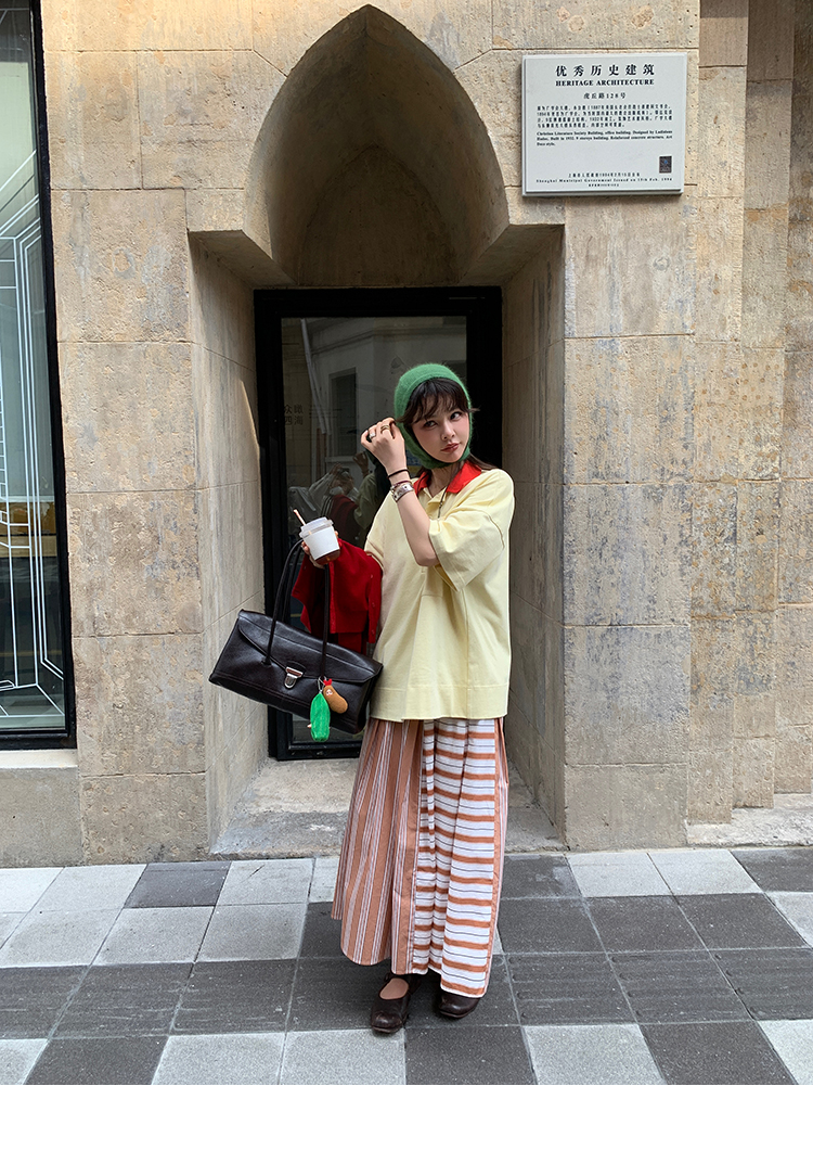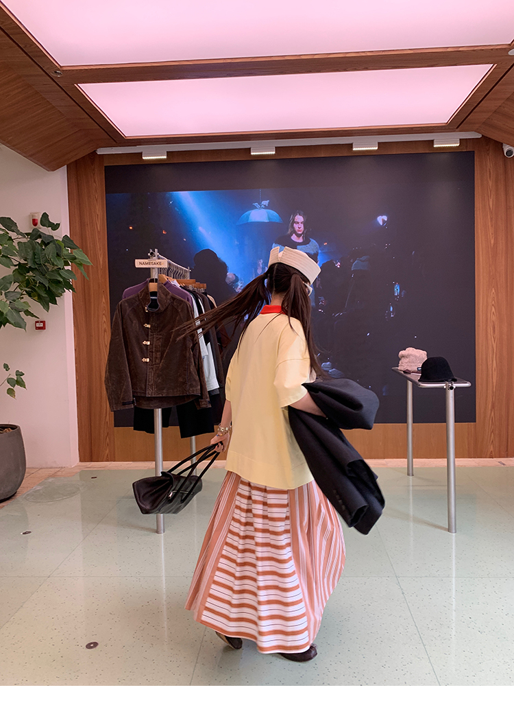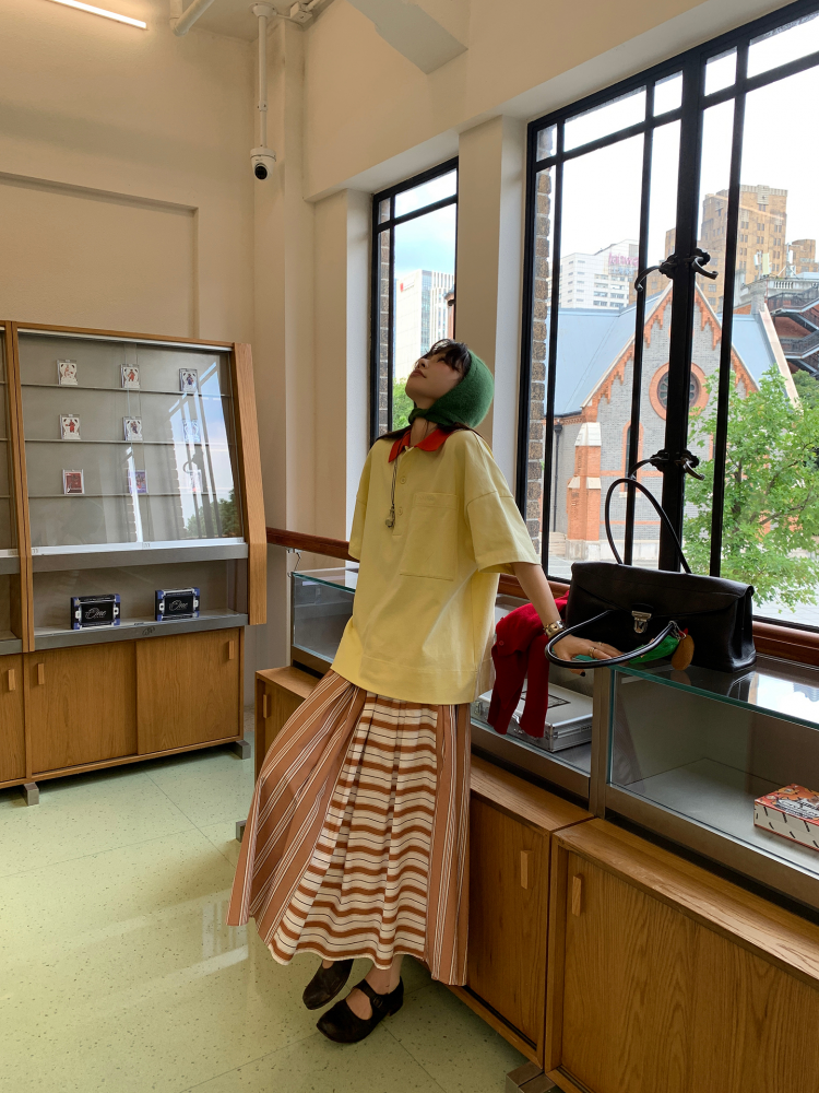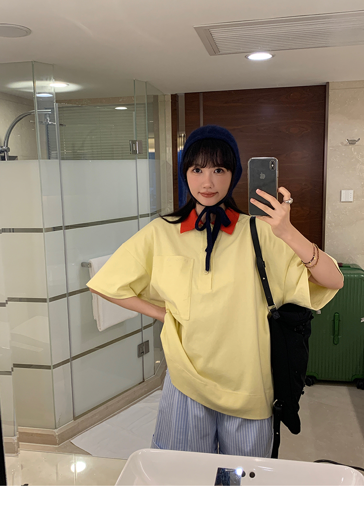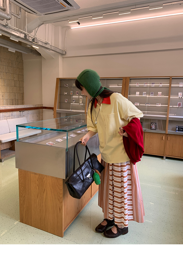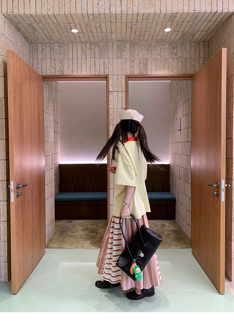 LRIB color trick contrast lapel Polo short-sleeved top and striped skirt