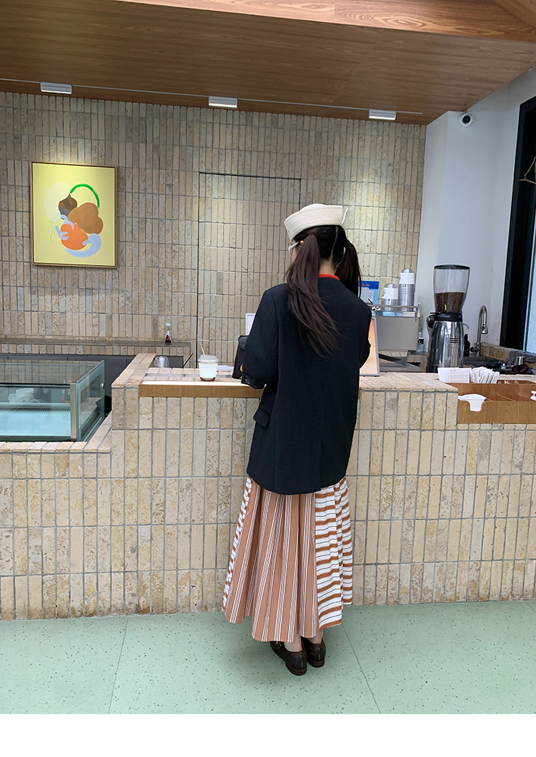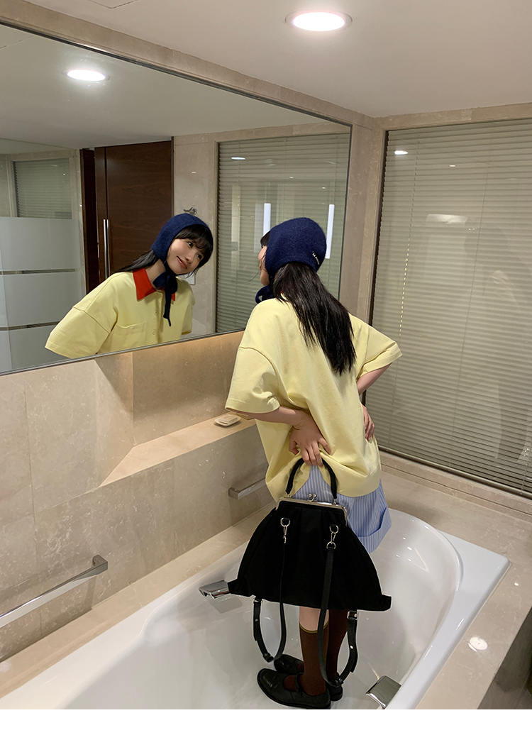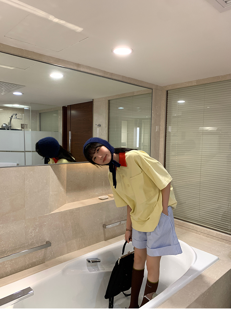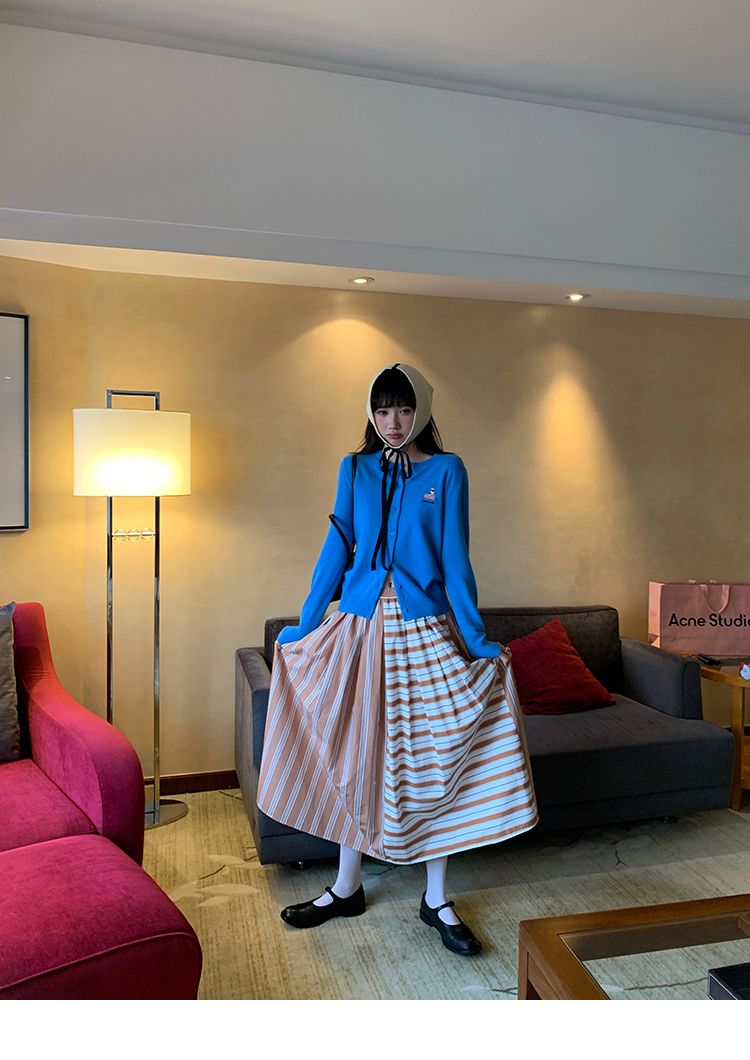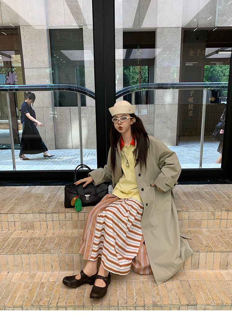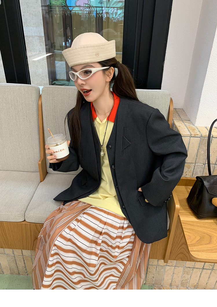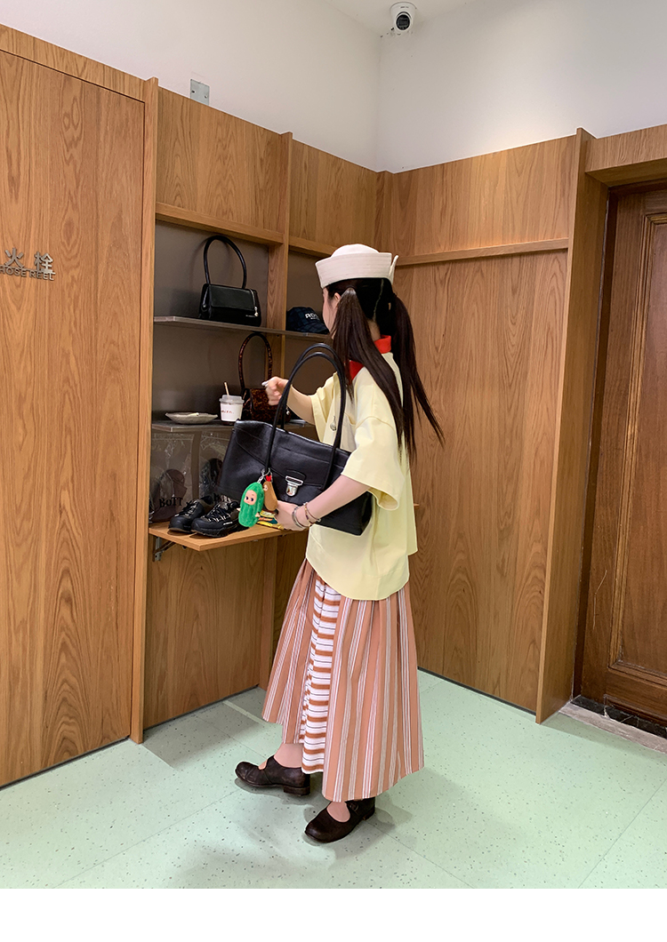 LRIB color trick contrast lapel Polo short-sleeved top and striped skirt