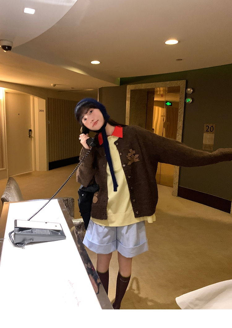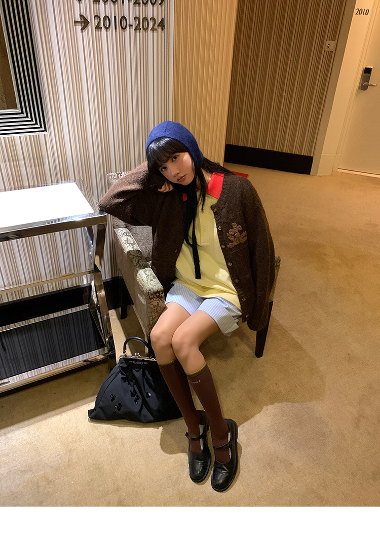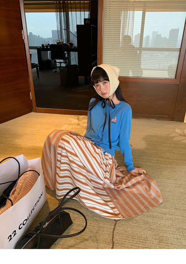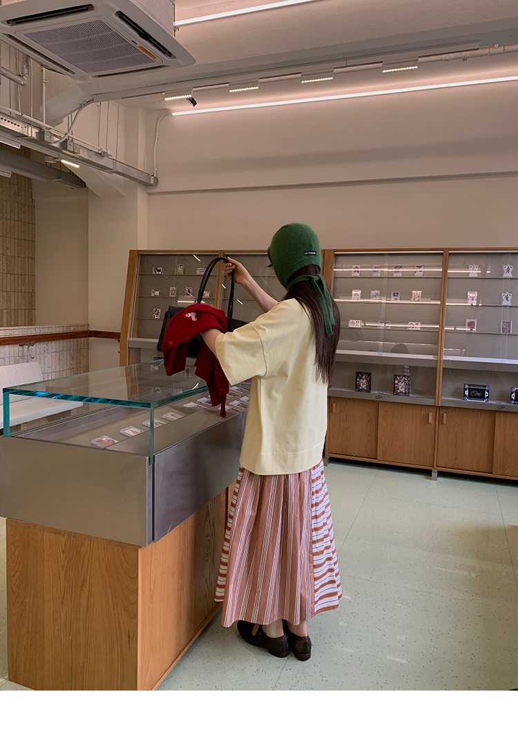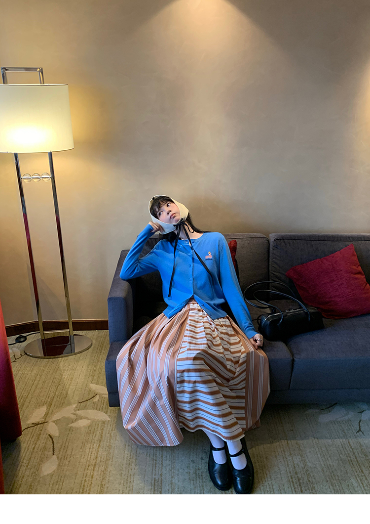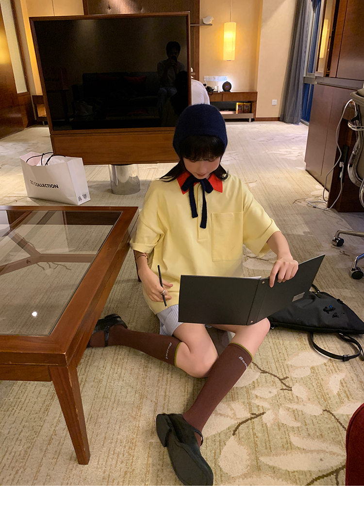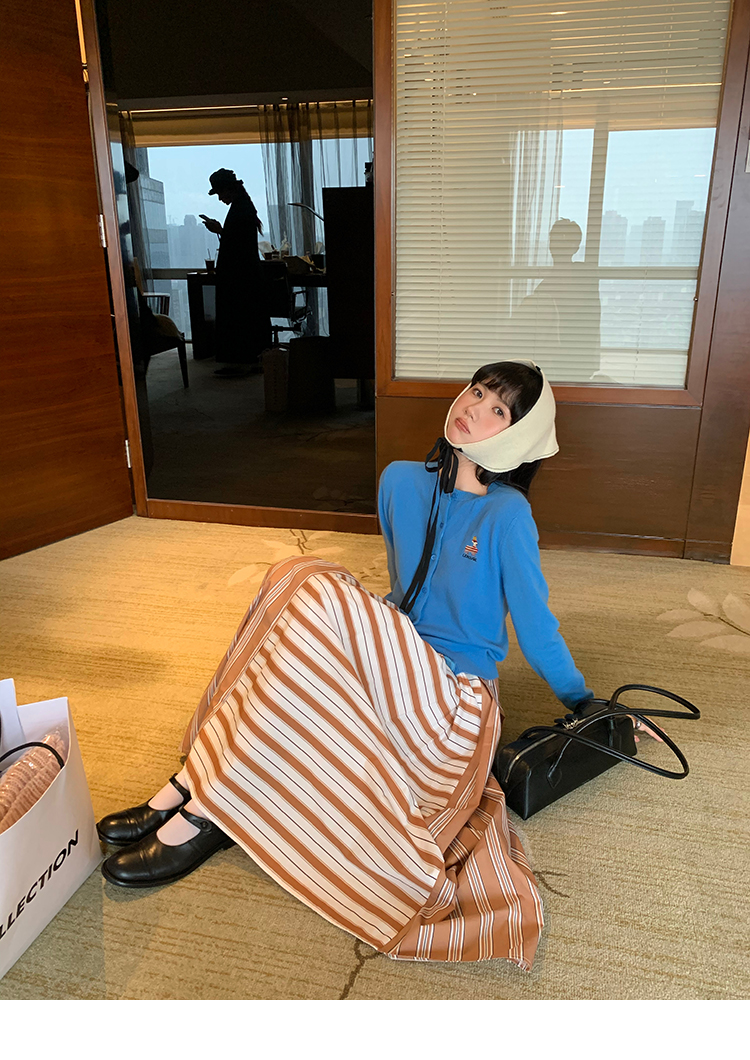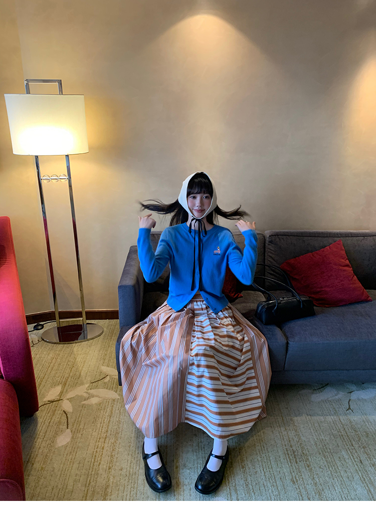 LRIB color trick contrast lapel Polo short-sleeved top and striped skirt