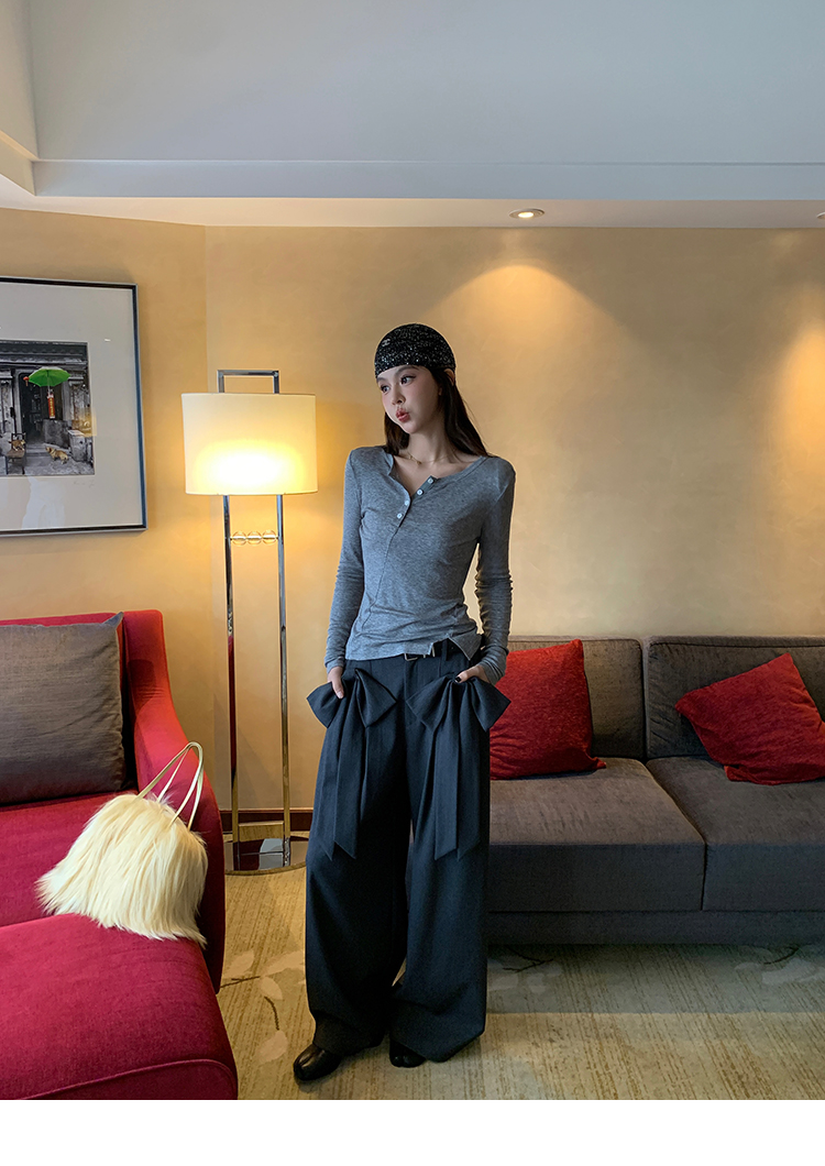 LRIB early autumn wool lyocell round neck bias-cut button top
