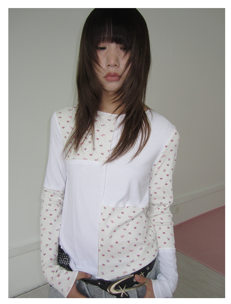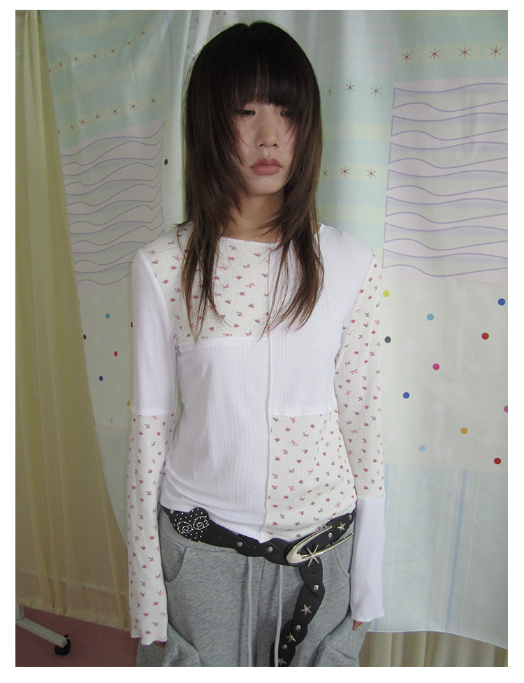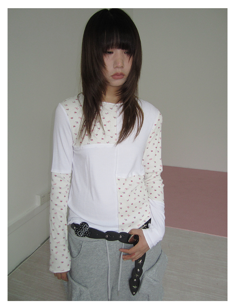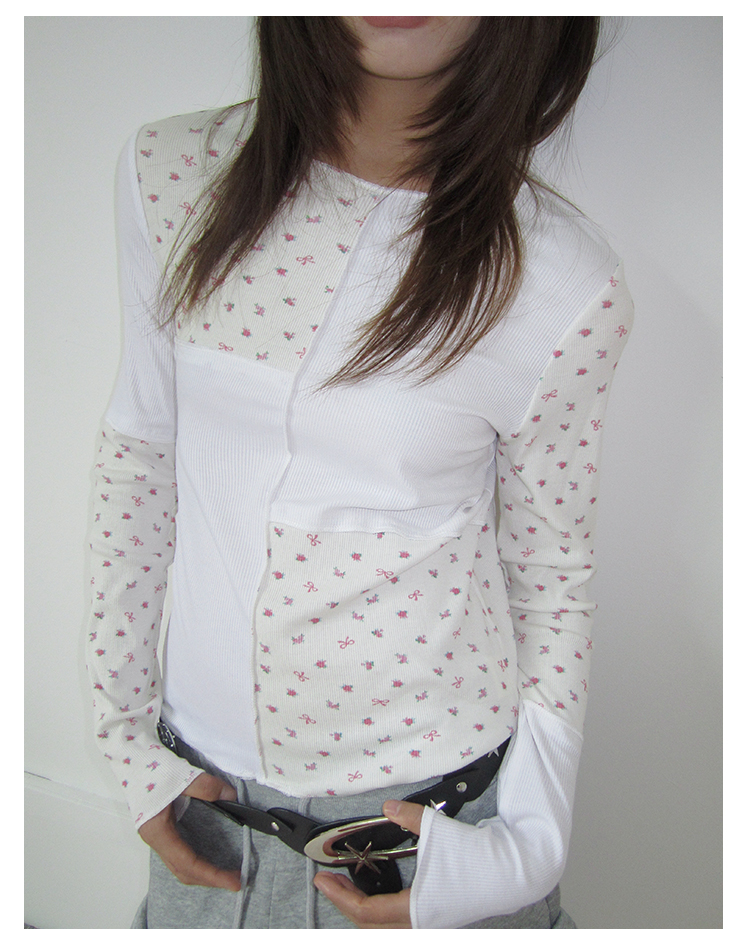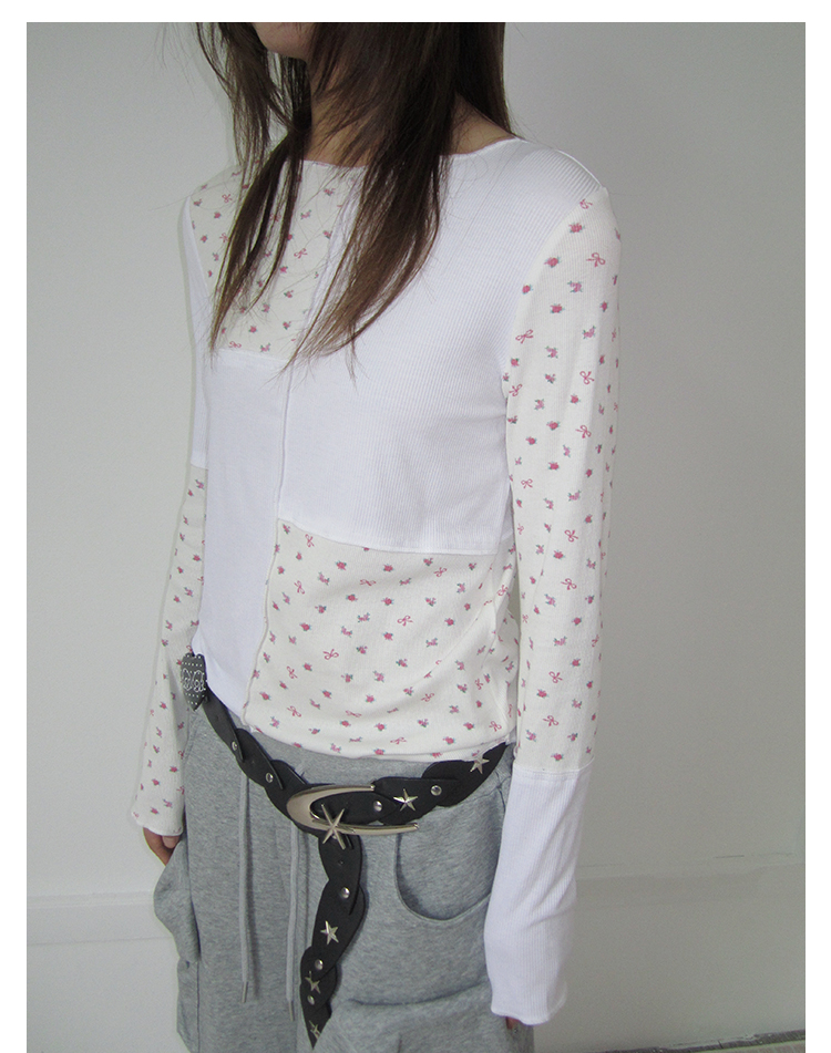 3MONTH floral patchwork loose versatile long-sleeved T-shirt