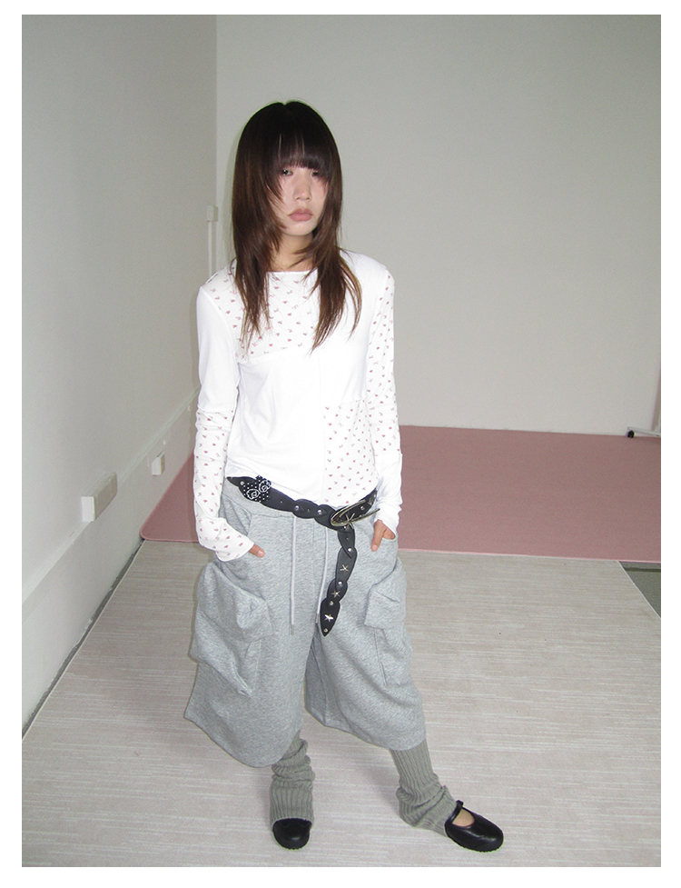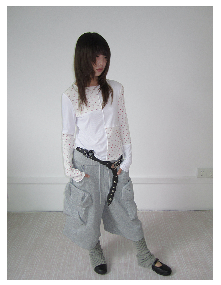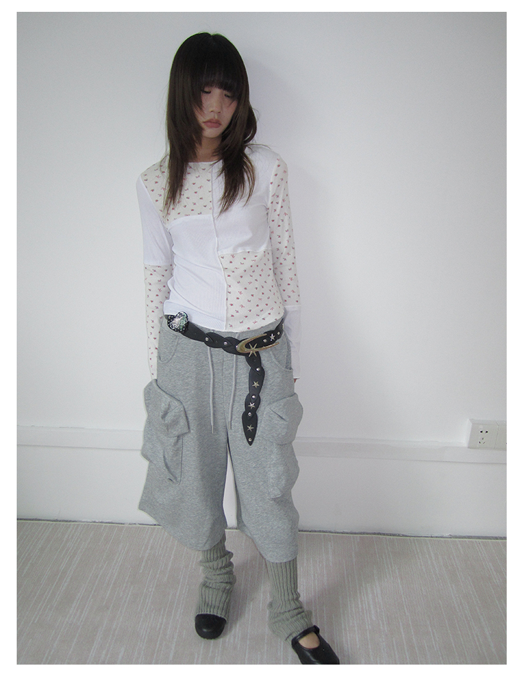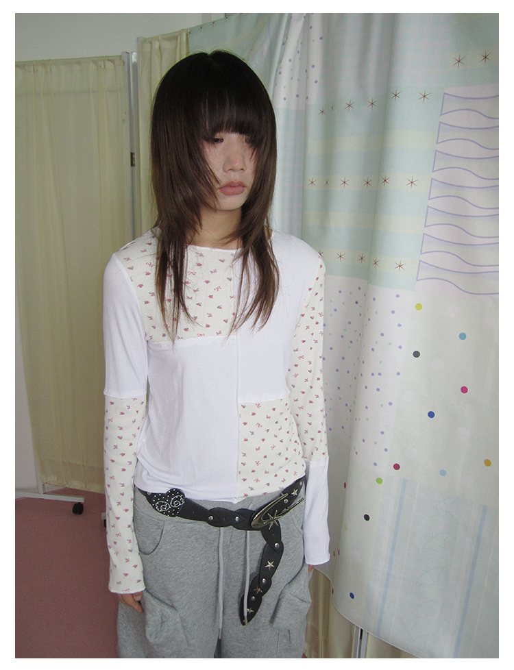 3MONTH floral patchwork loose versatile long-sleeved T-shirt