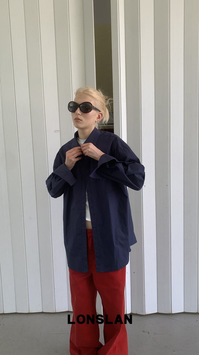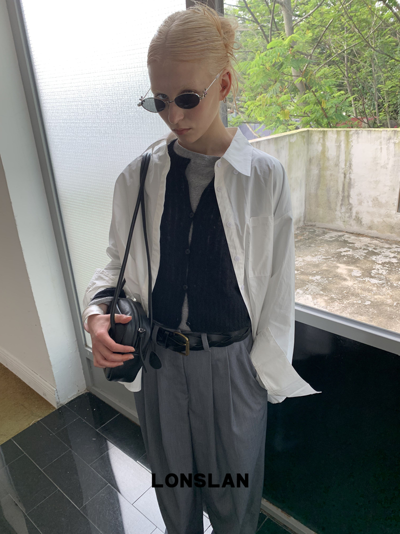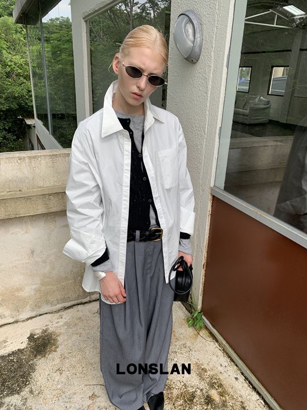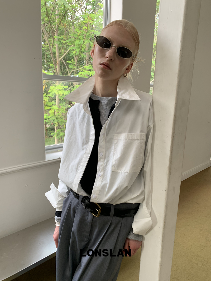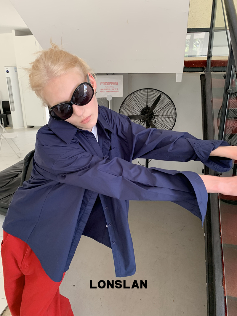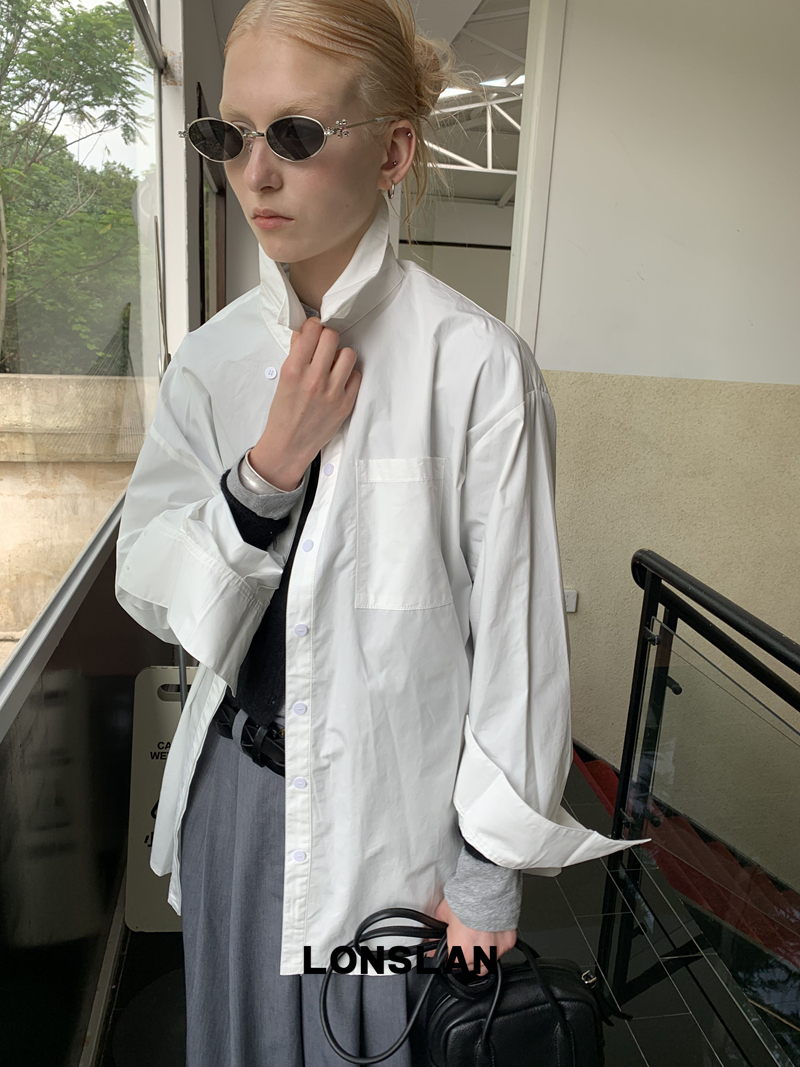 LONSLAN textured solid color simple shirt