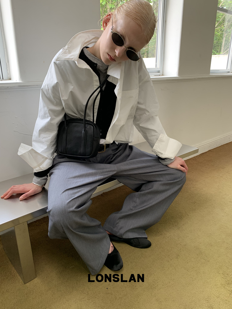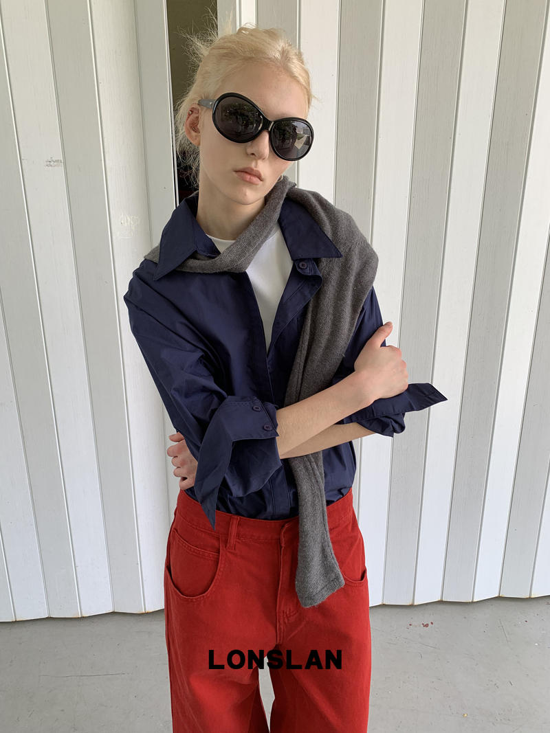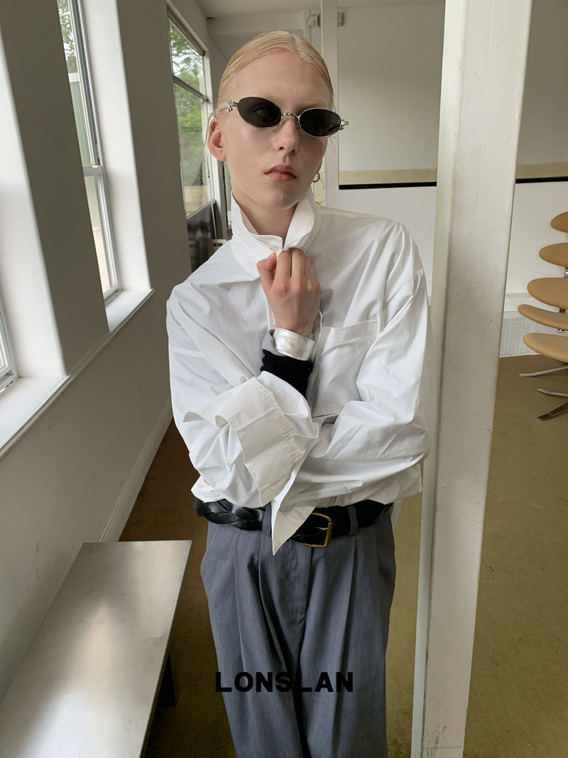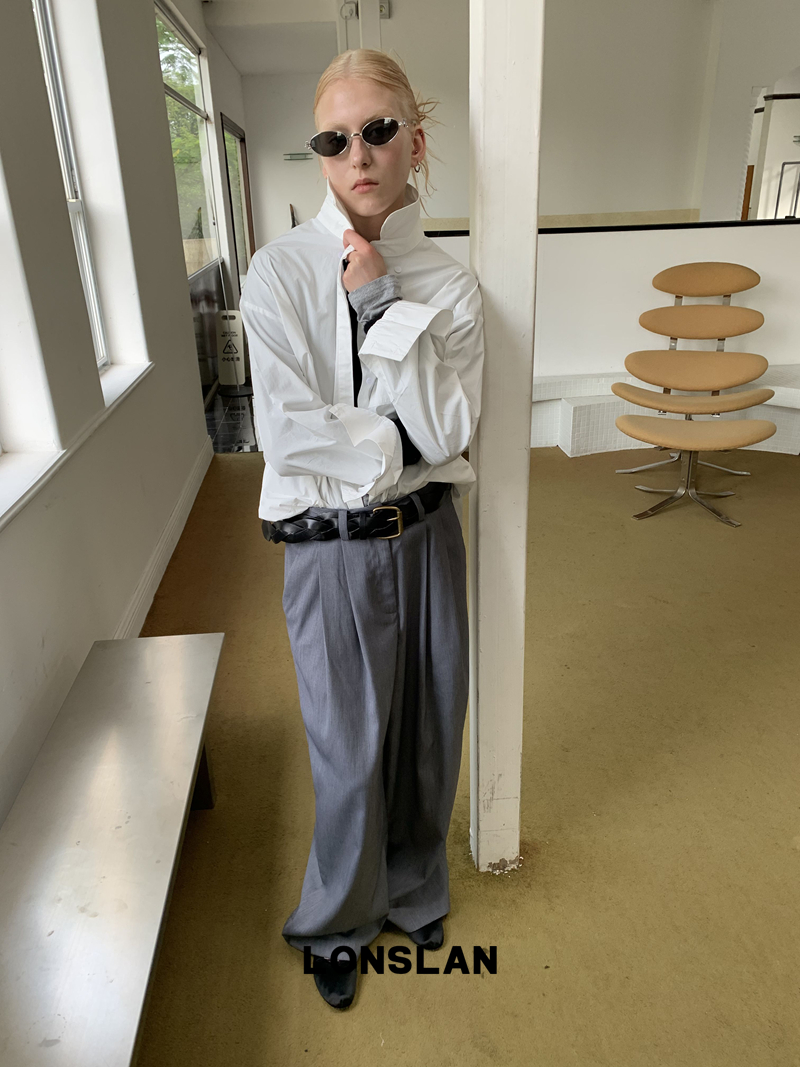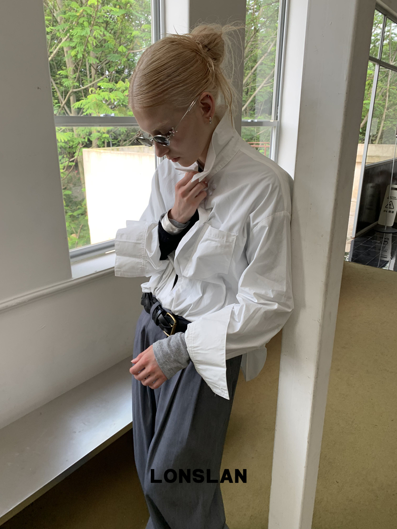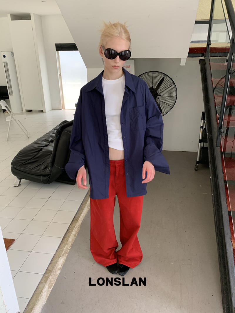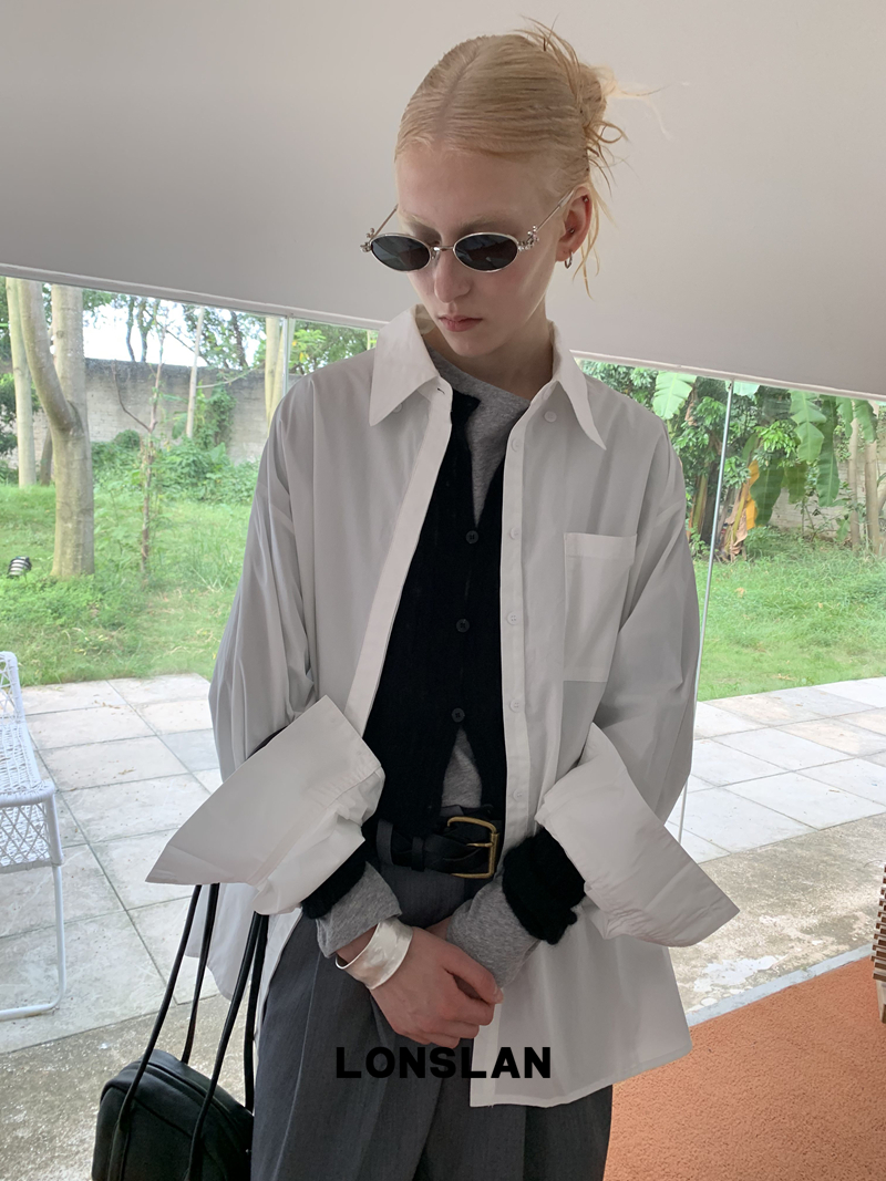 LONSLAN textured solid color simple shirt