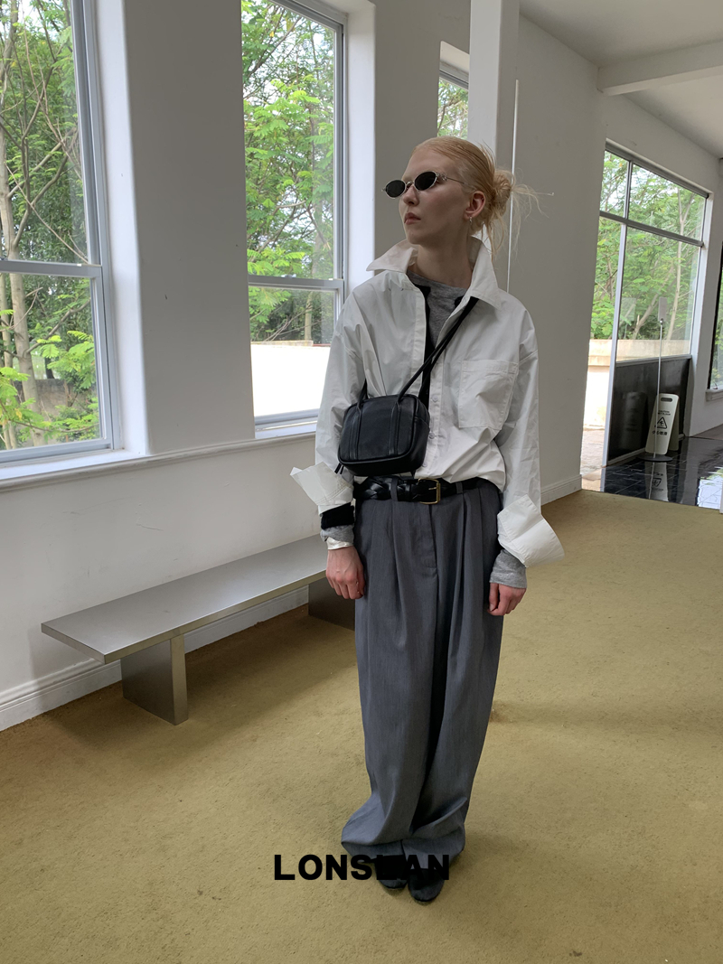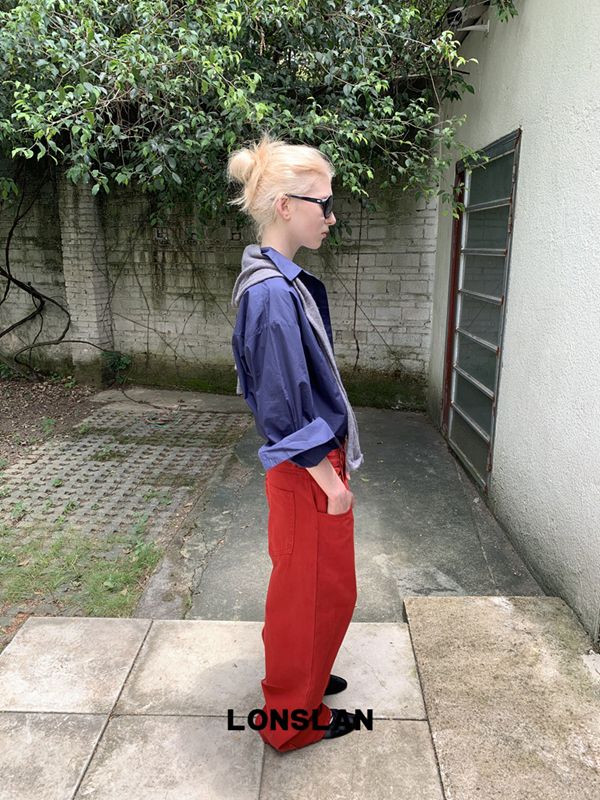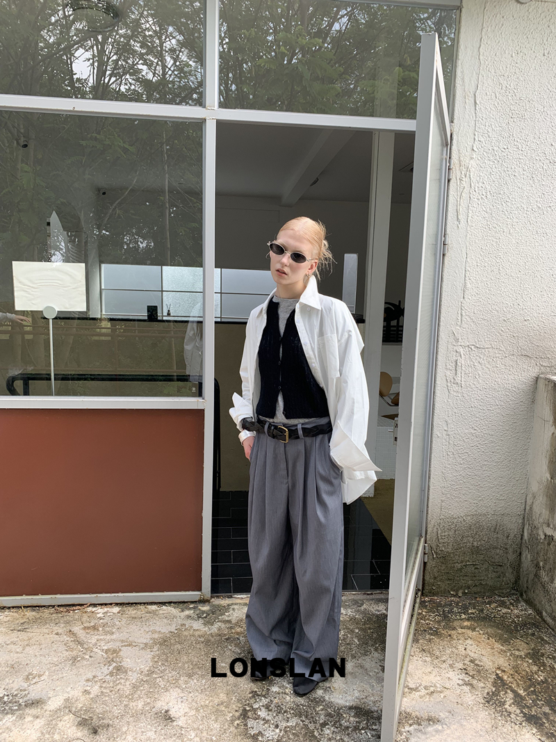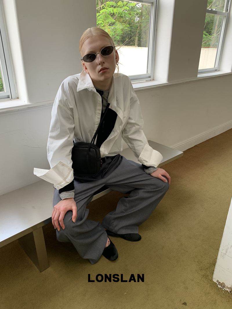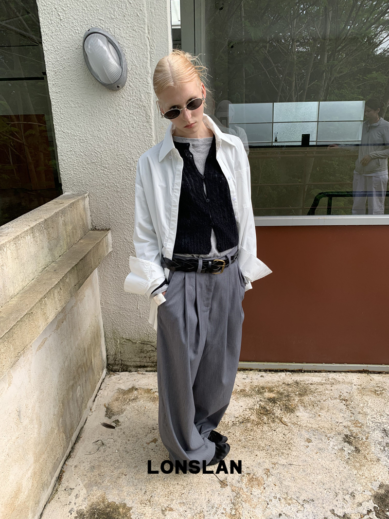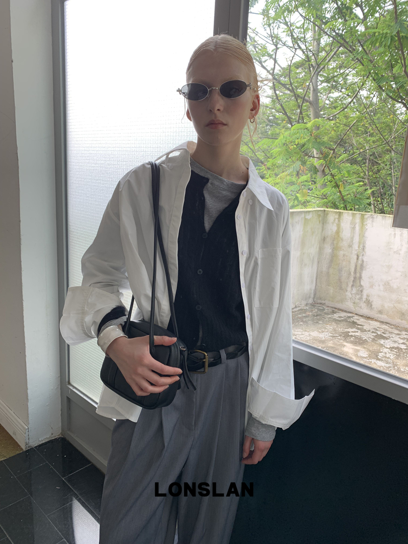 LONSLAN textured solid color simple shirt