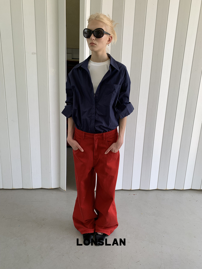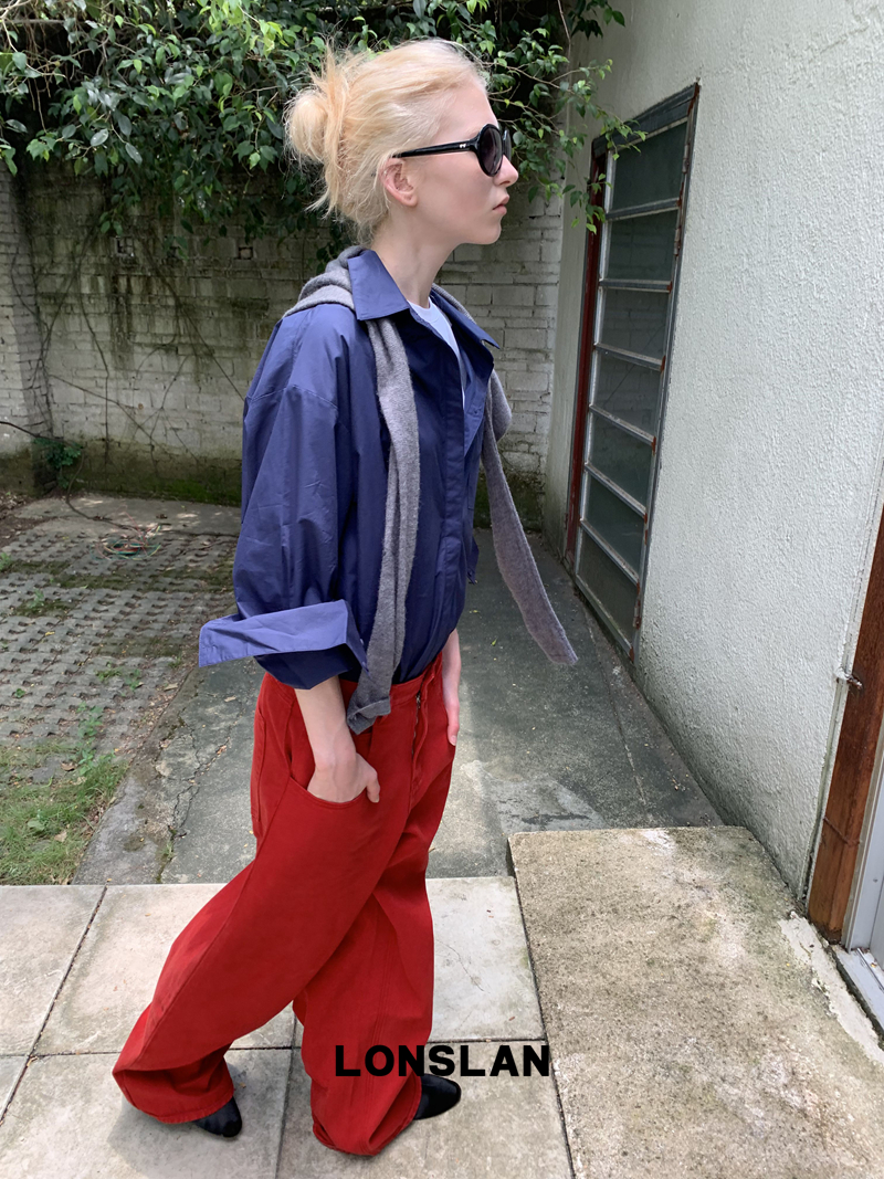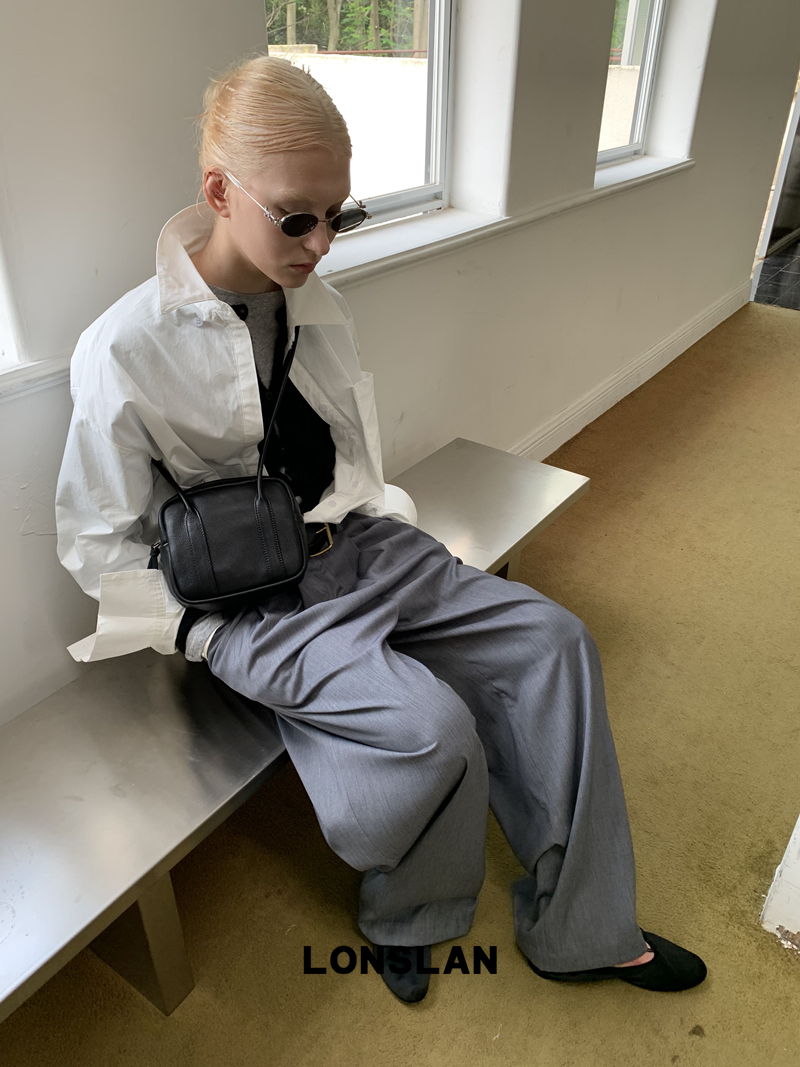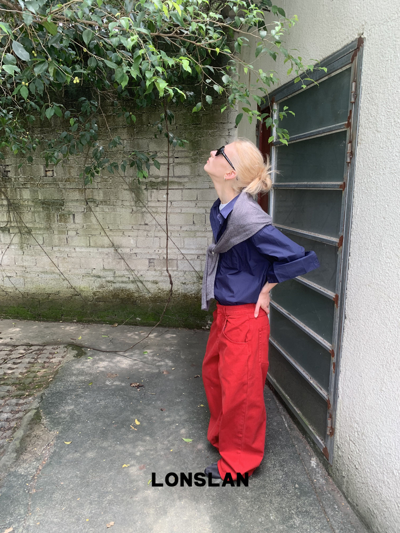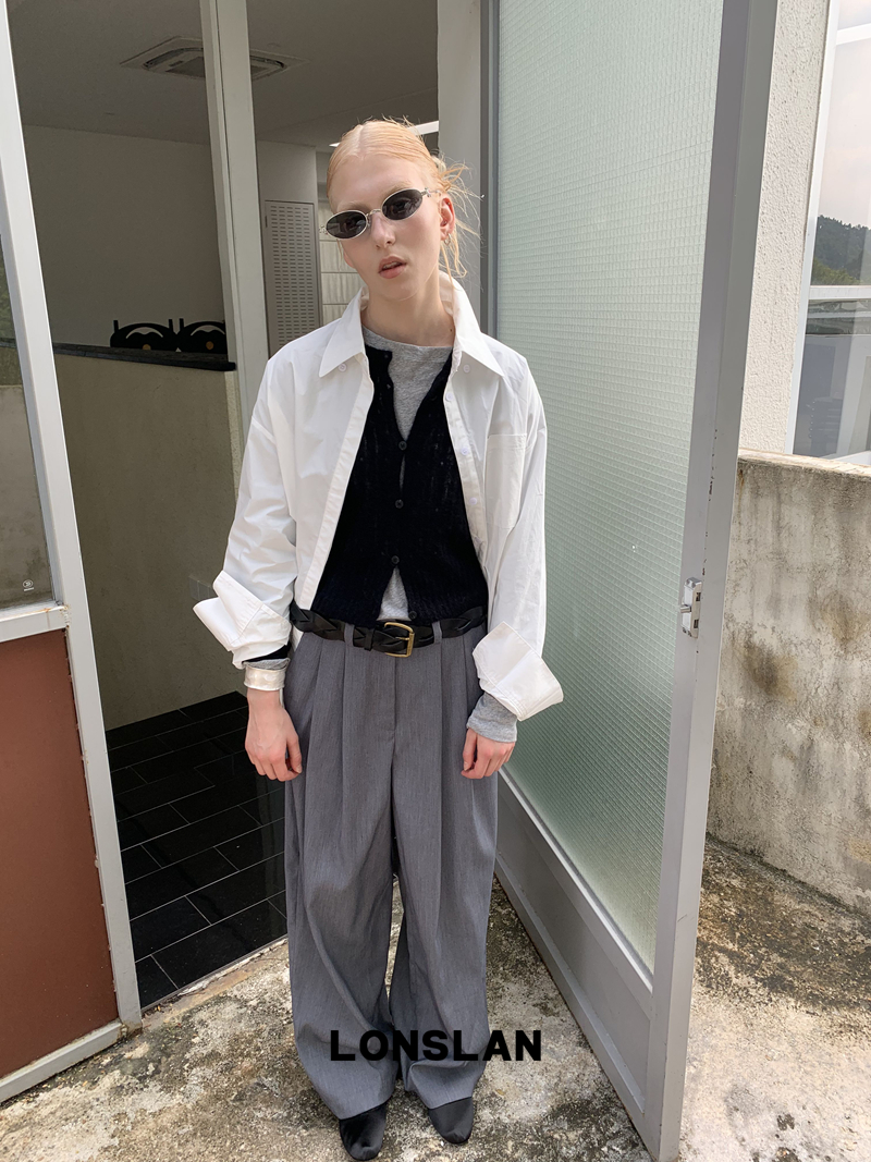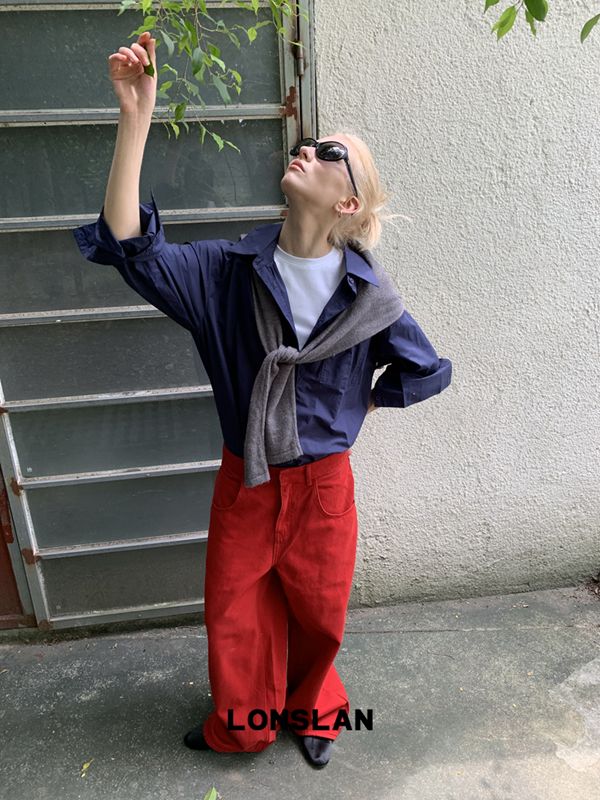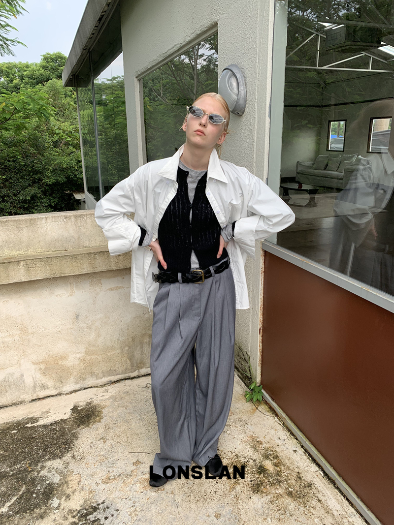 LONSLAN textured solid color simple shirt