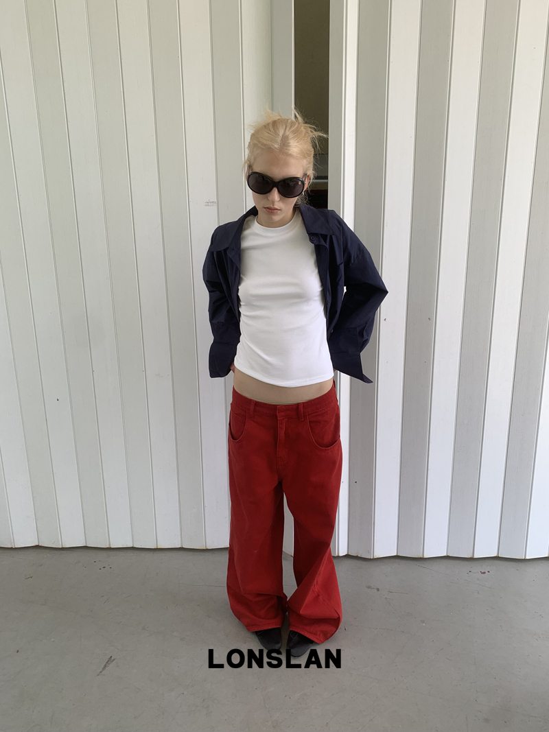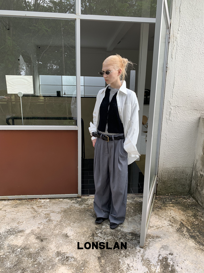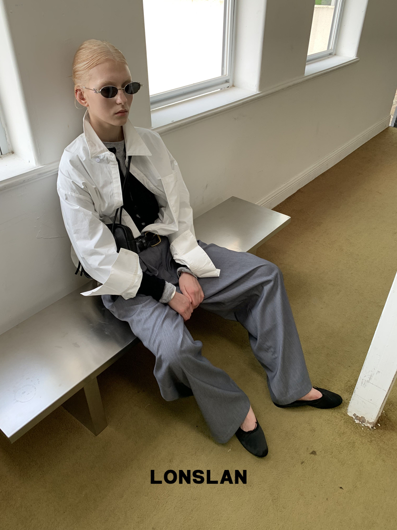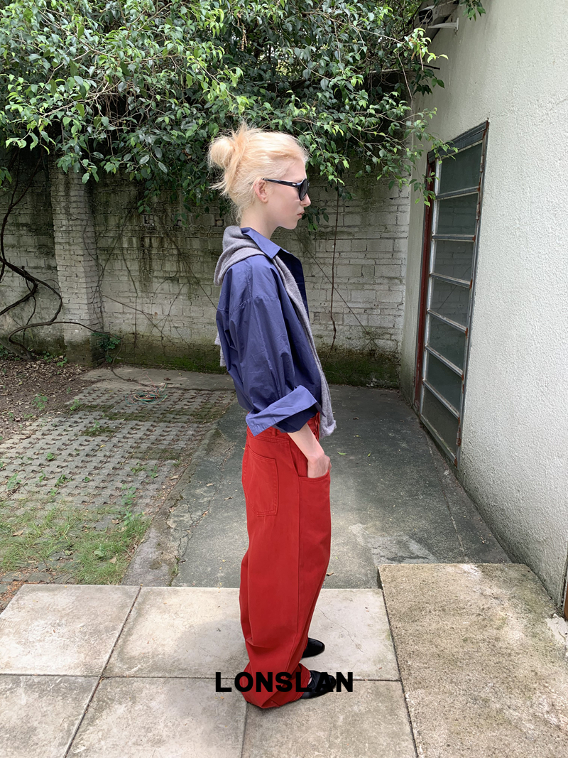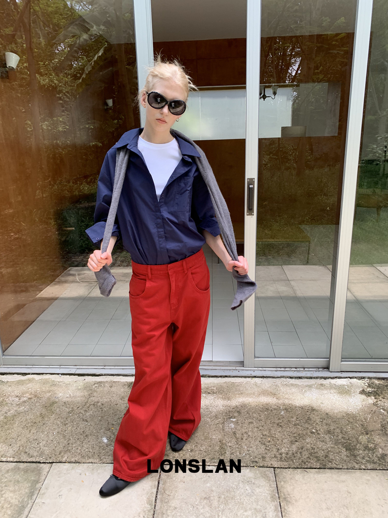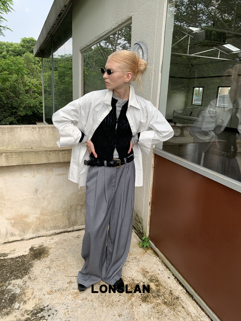 LONSLAN textured solid color simple shirt