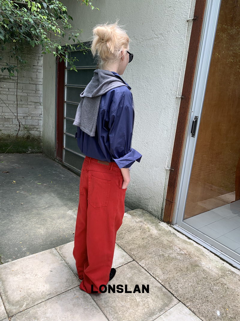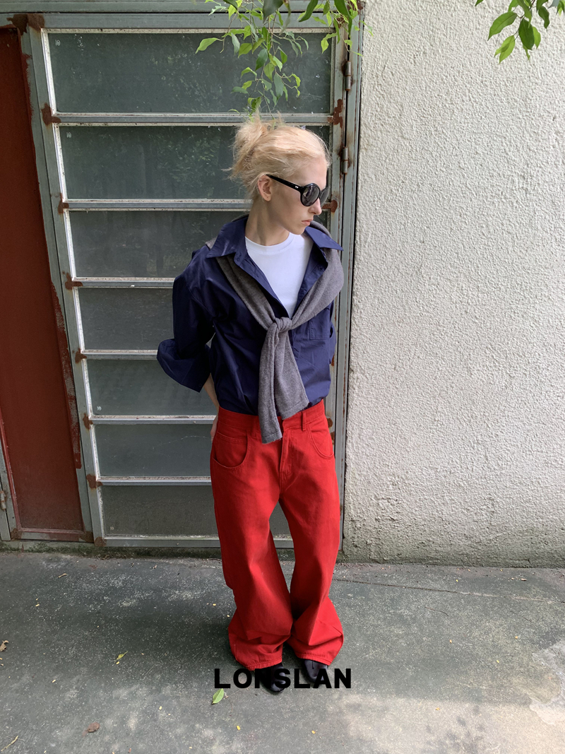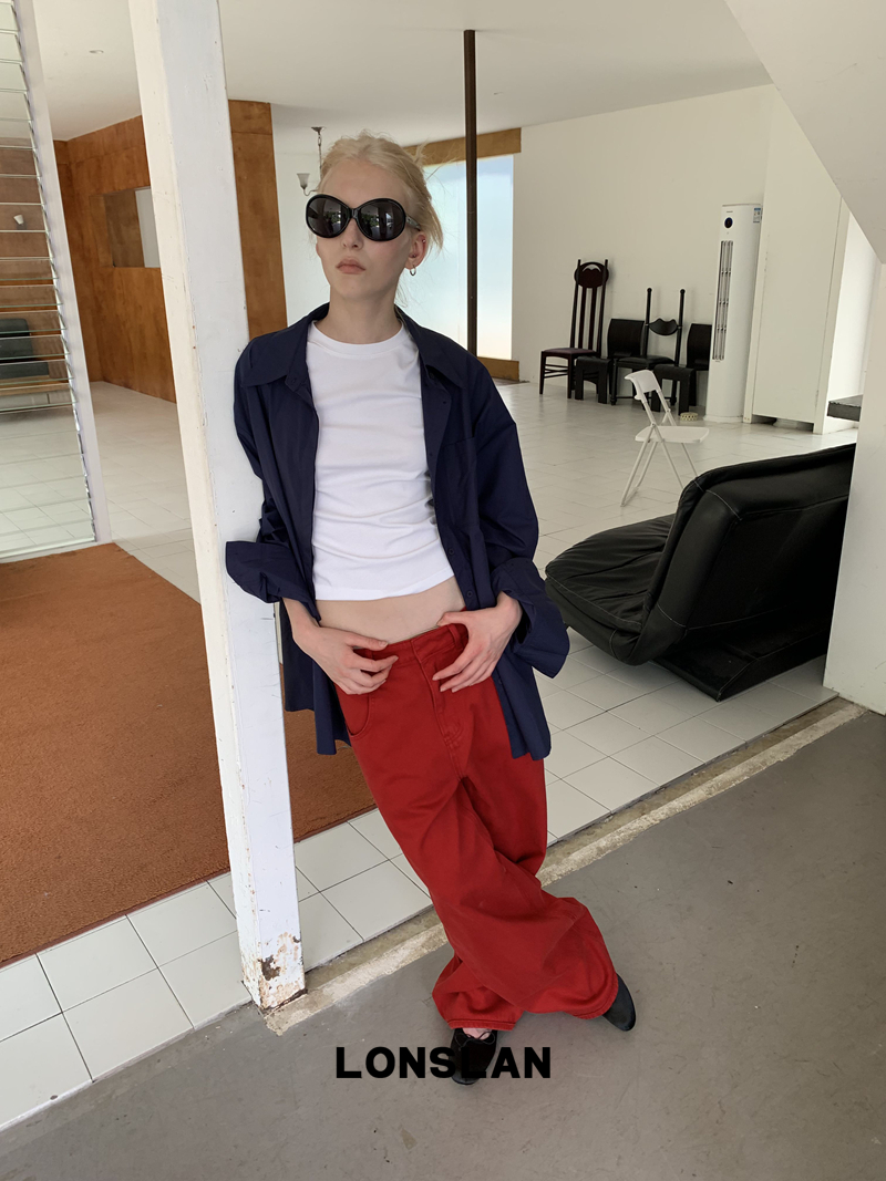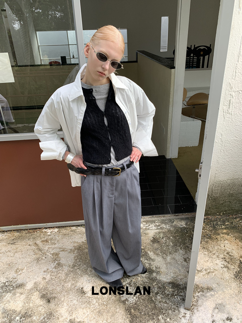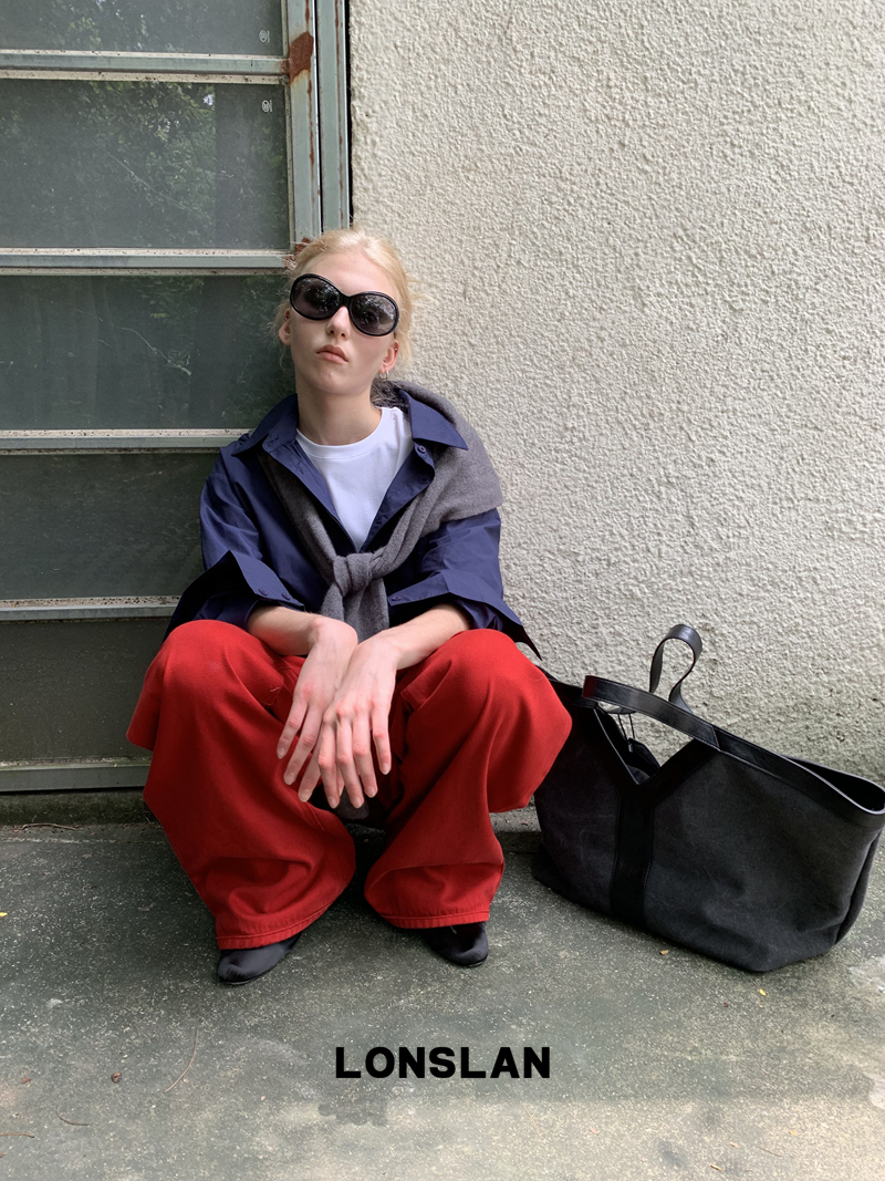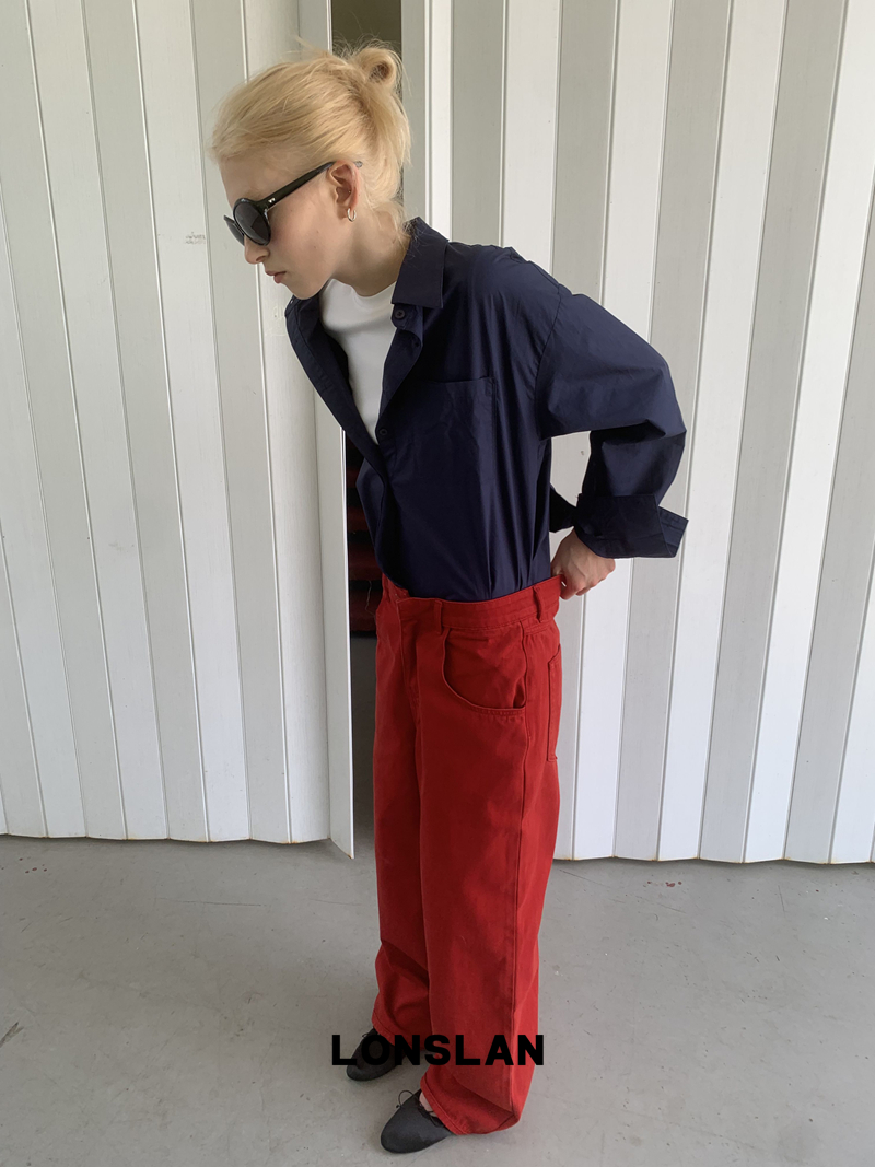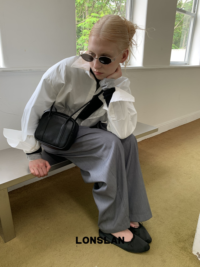 LONSLAN textured solid color simple shirt