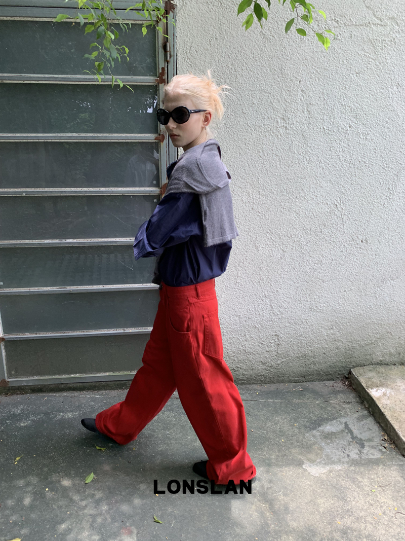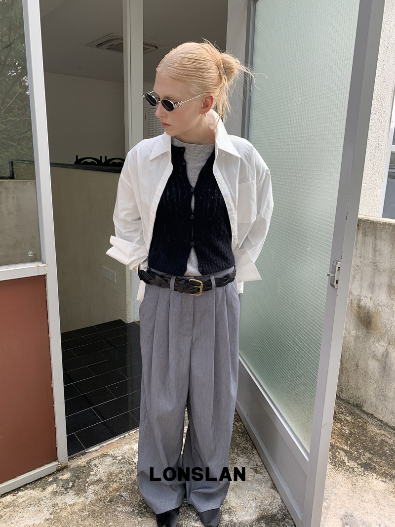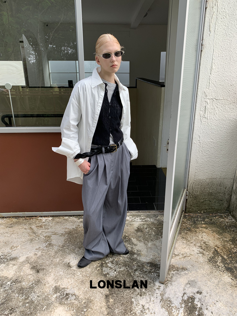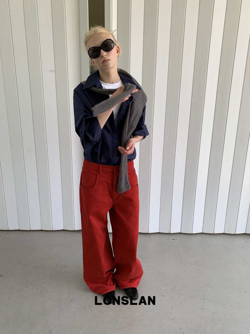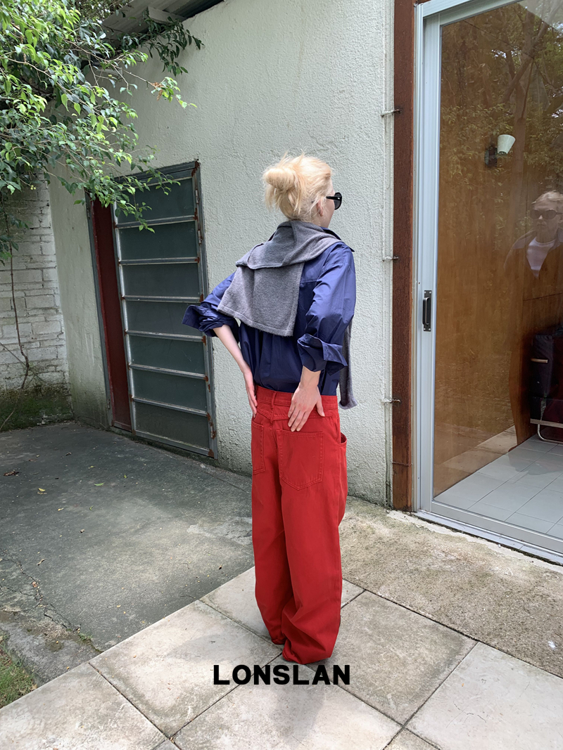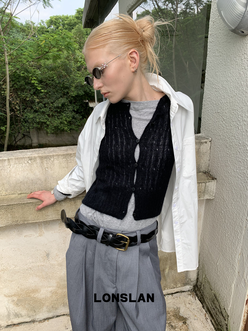 LONSLAN textured solid color simple shirt