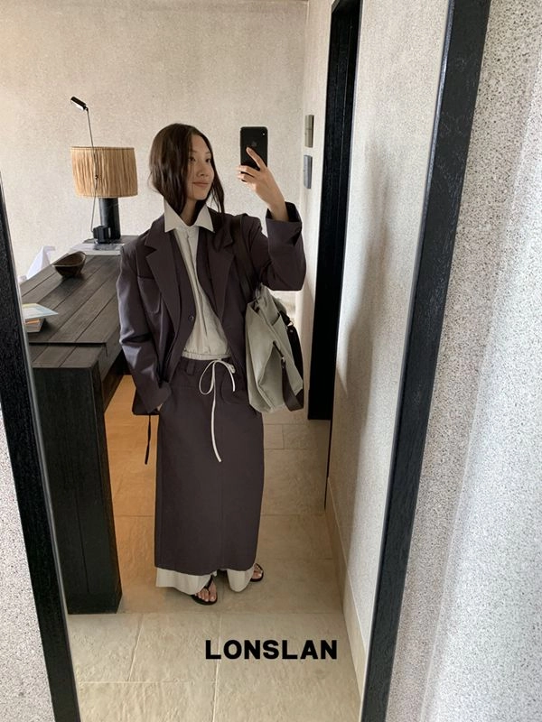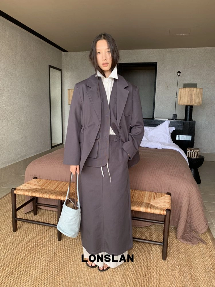 LONSLAN Drawstring Suit Jacket + Pocket Vest + Skirt Three-piece Set