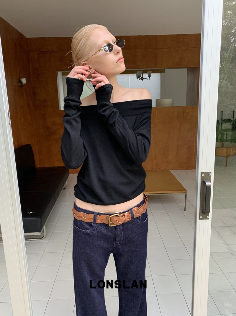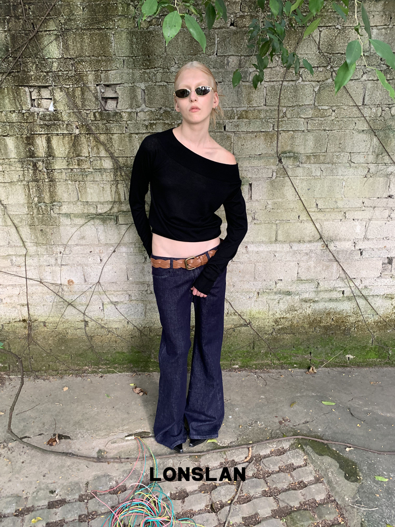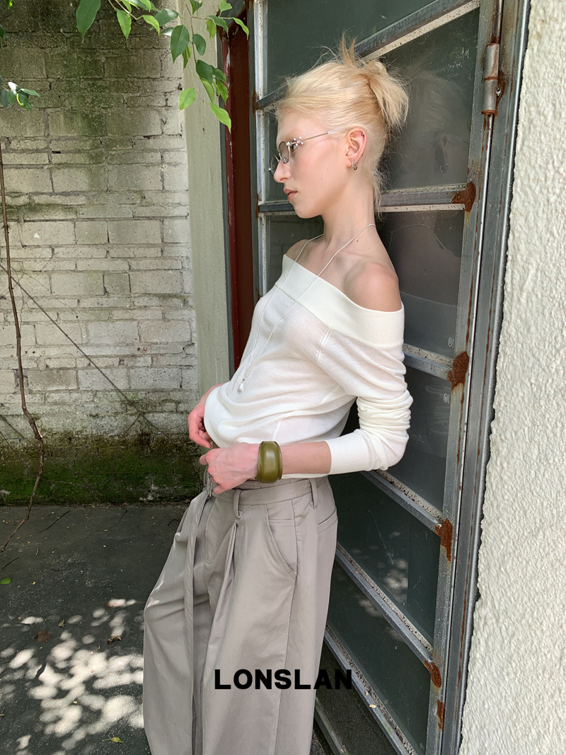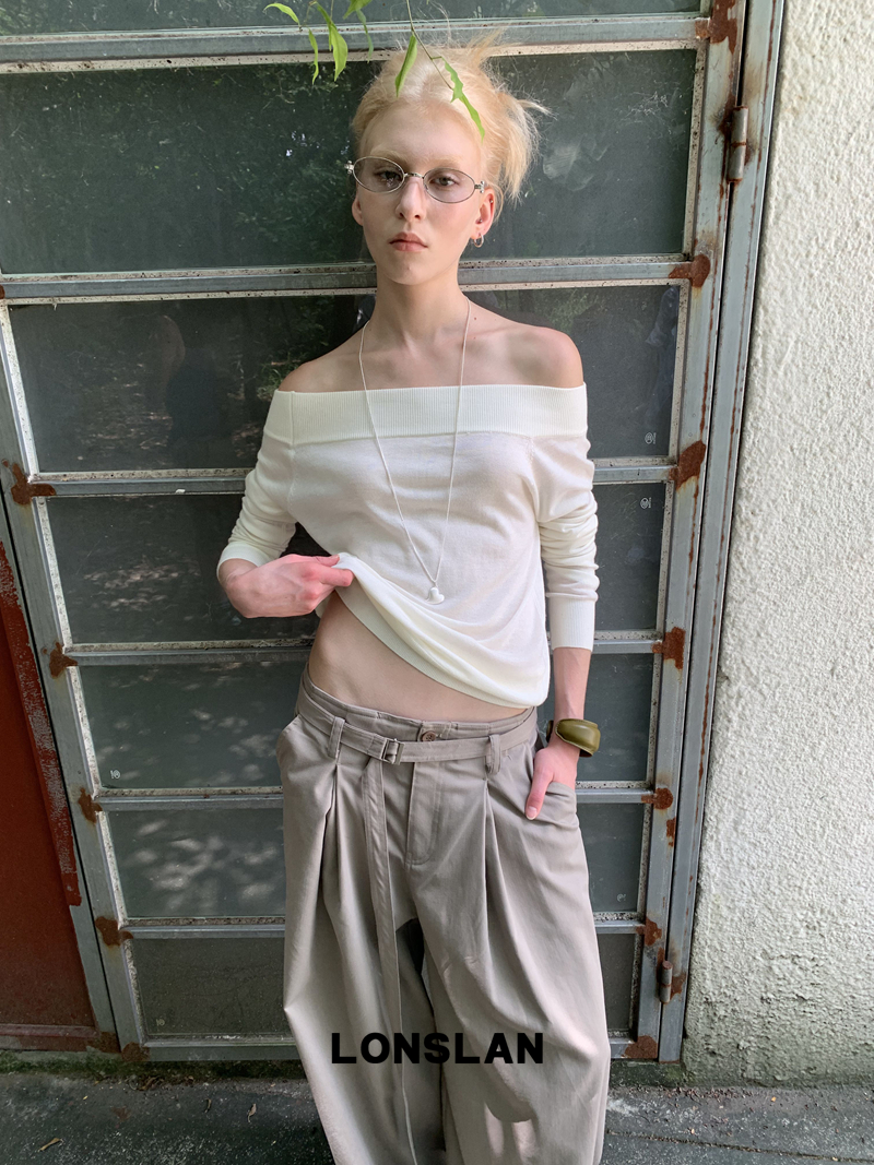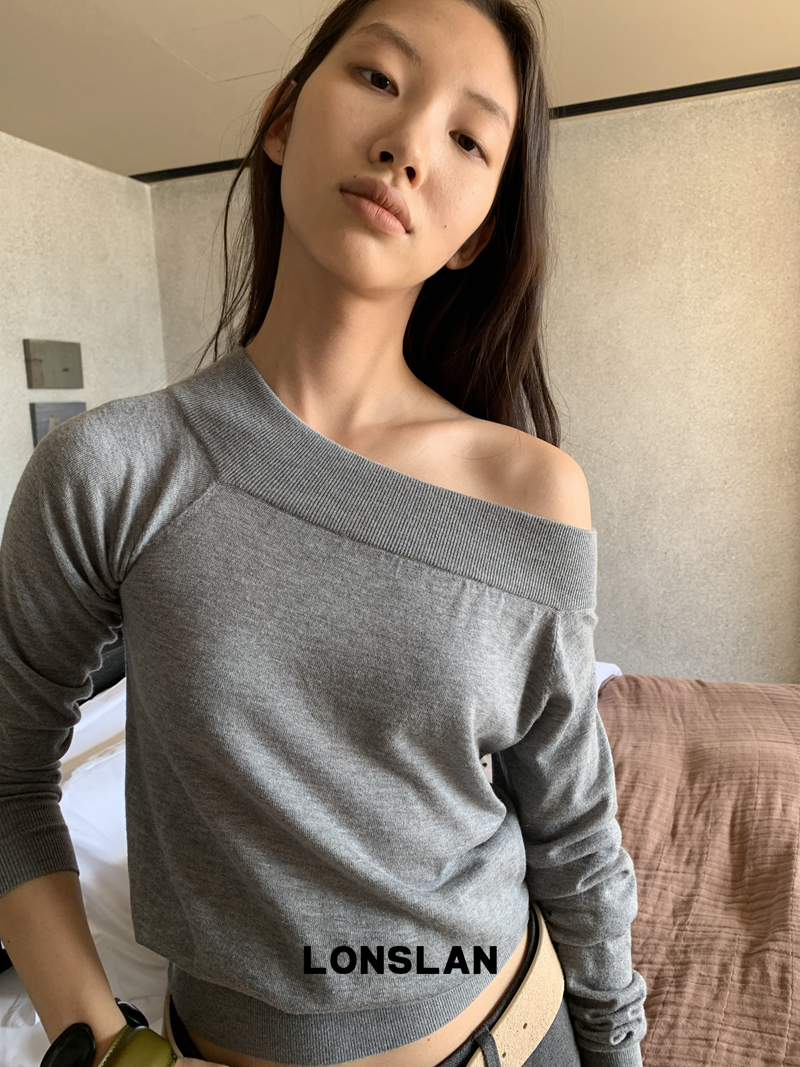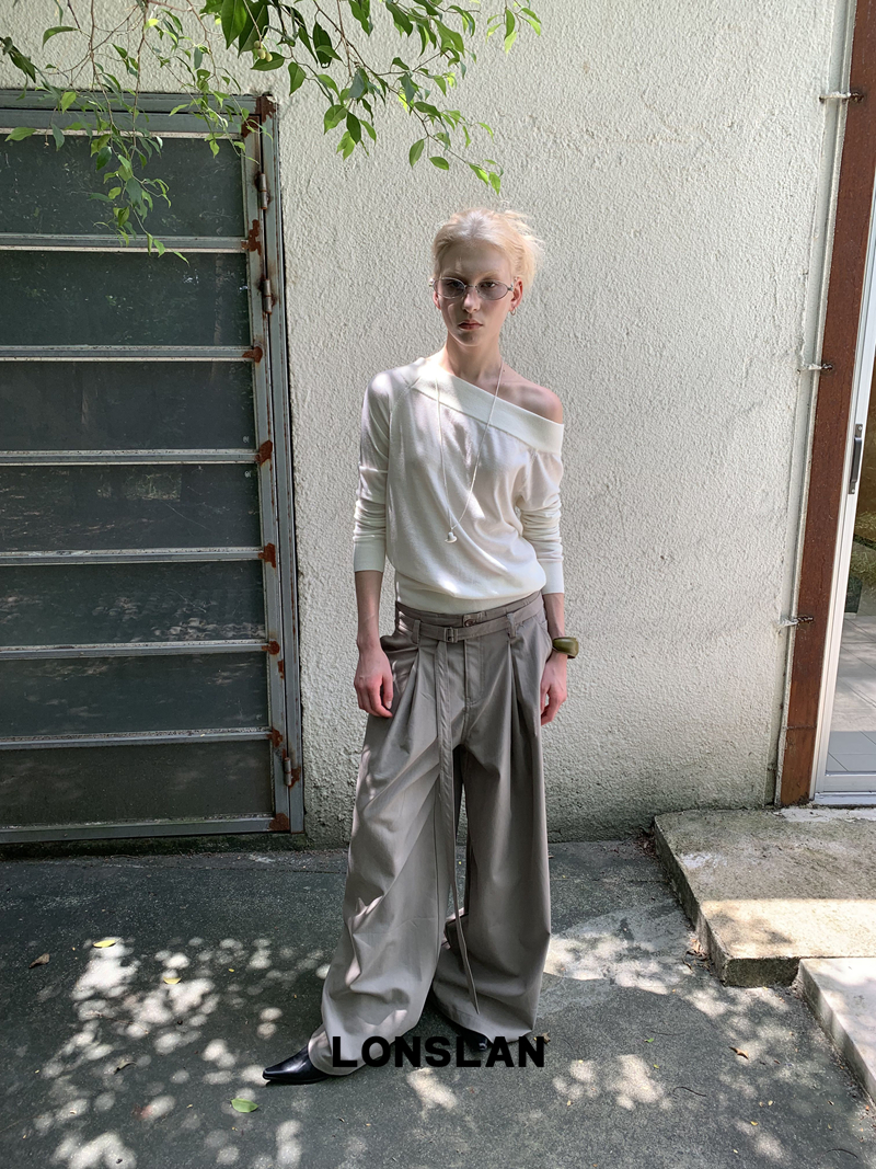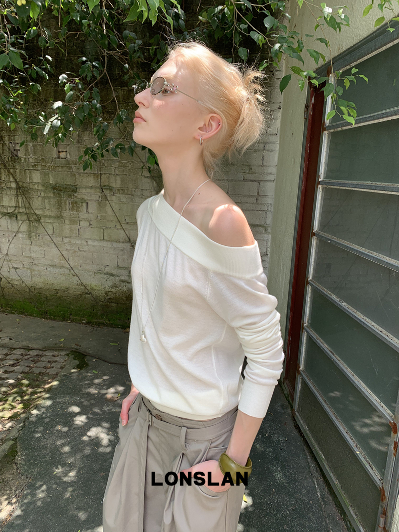 LONSLAN one-shoulder oblique shoulder knitted sweater