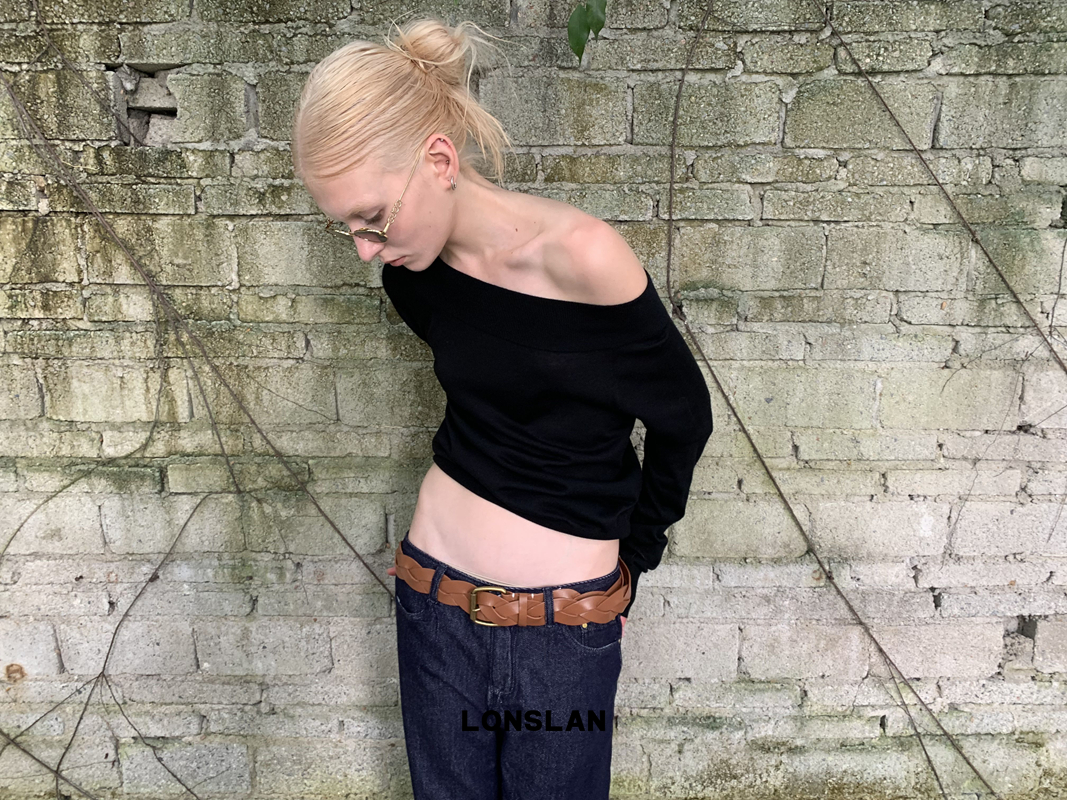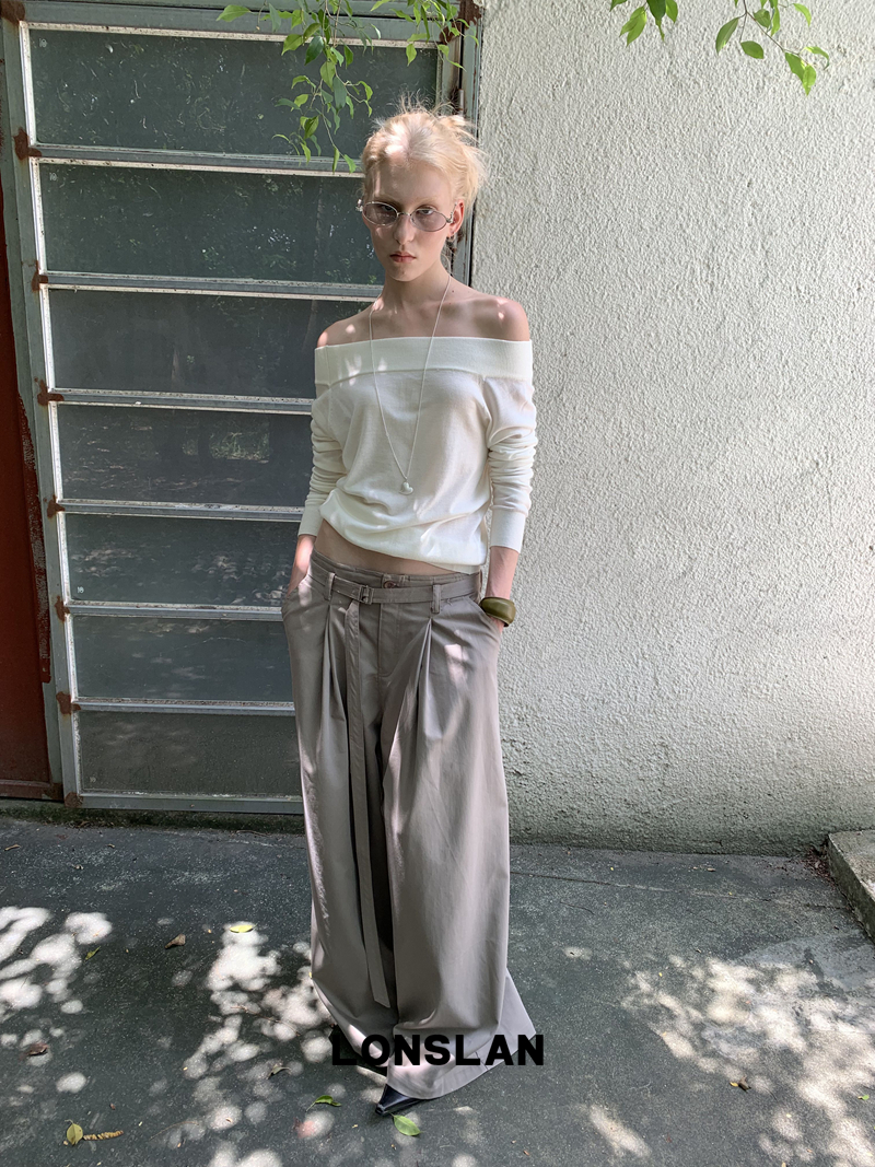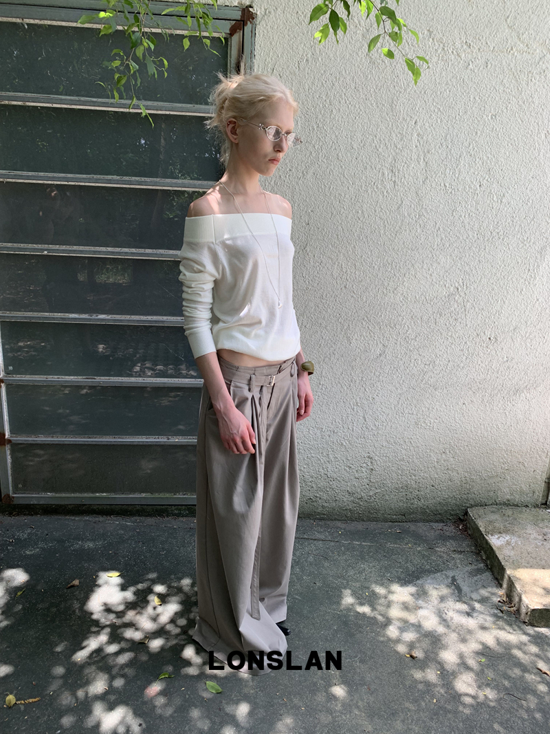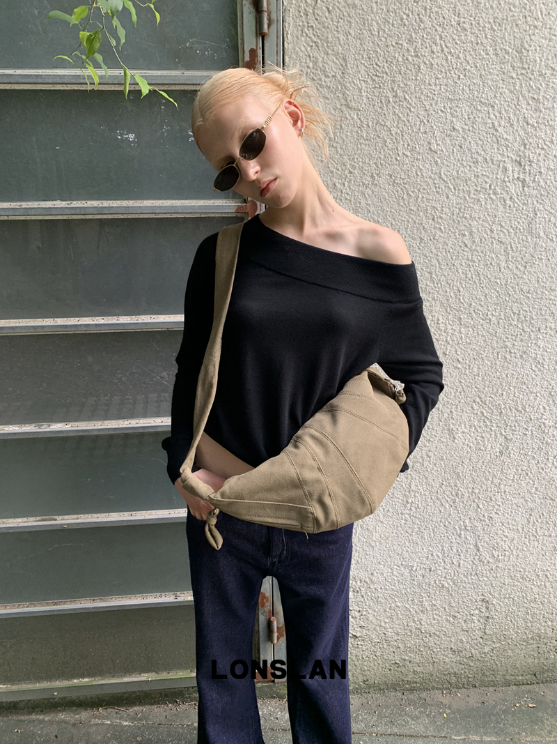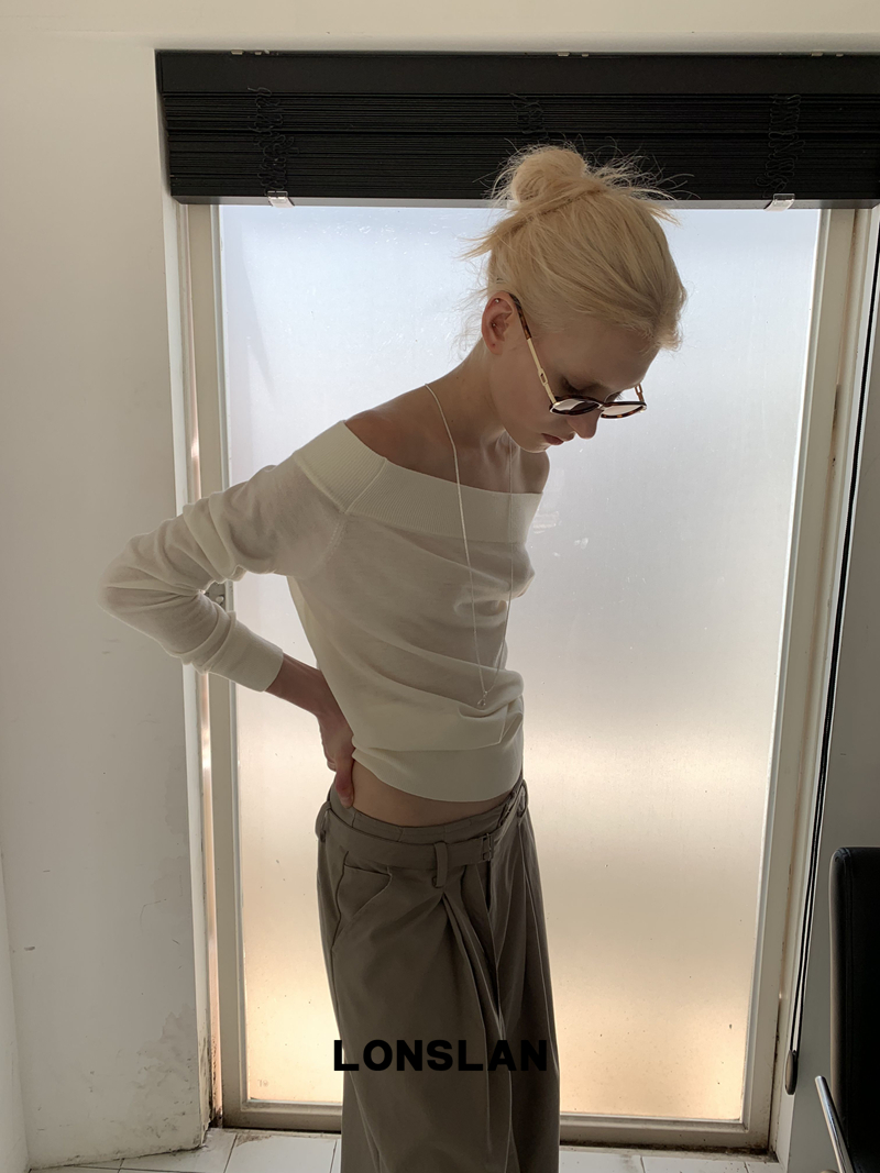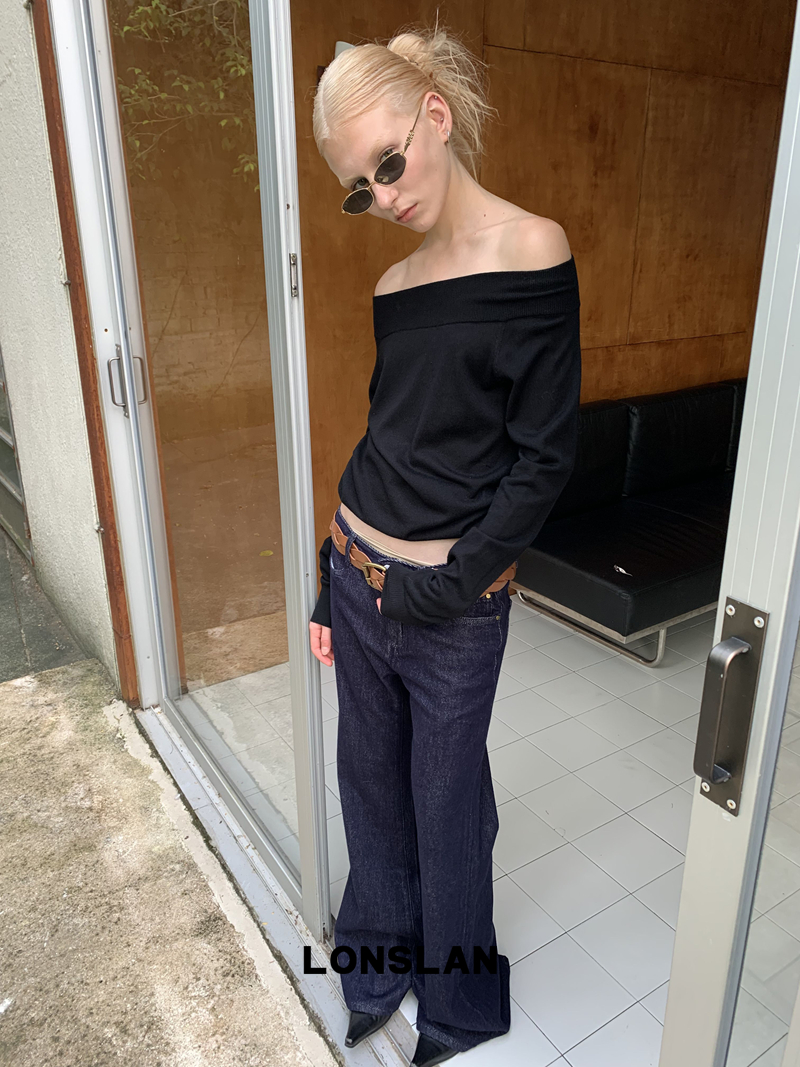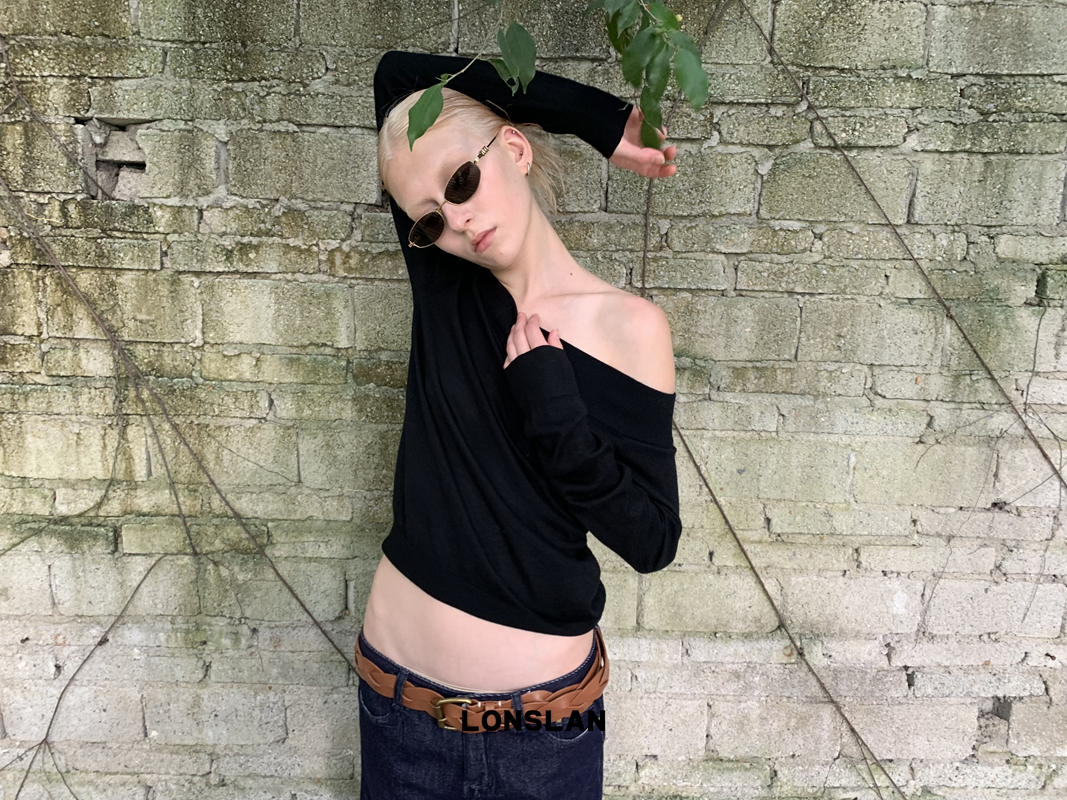 LONSLAN one-shoulder oblique shoulder knitted sweater