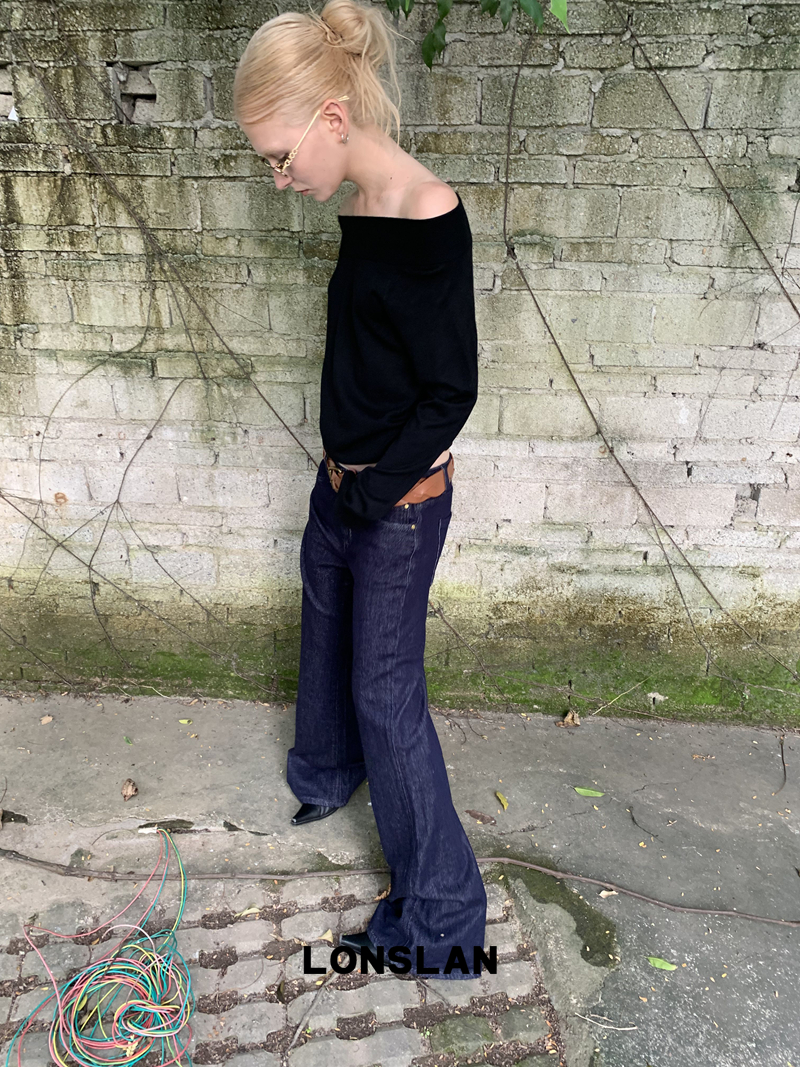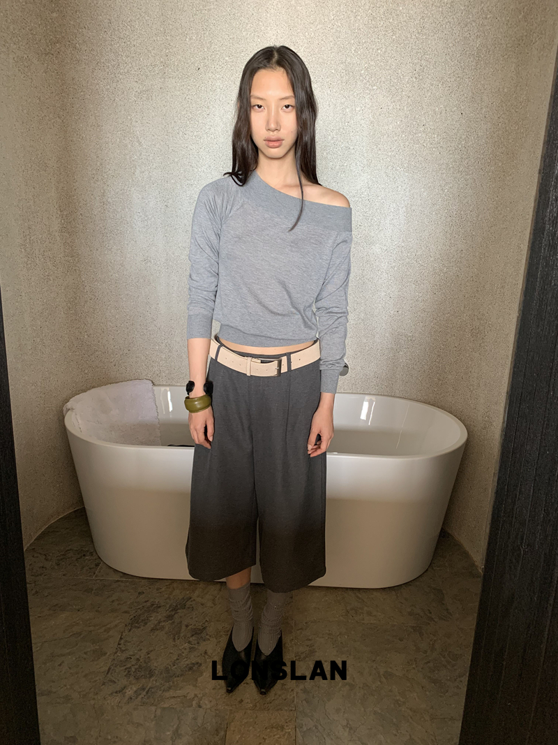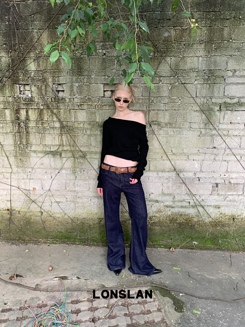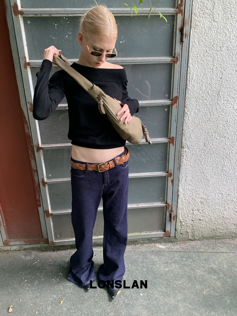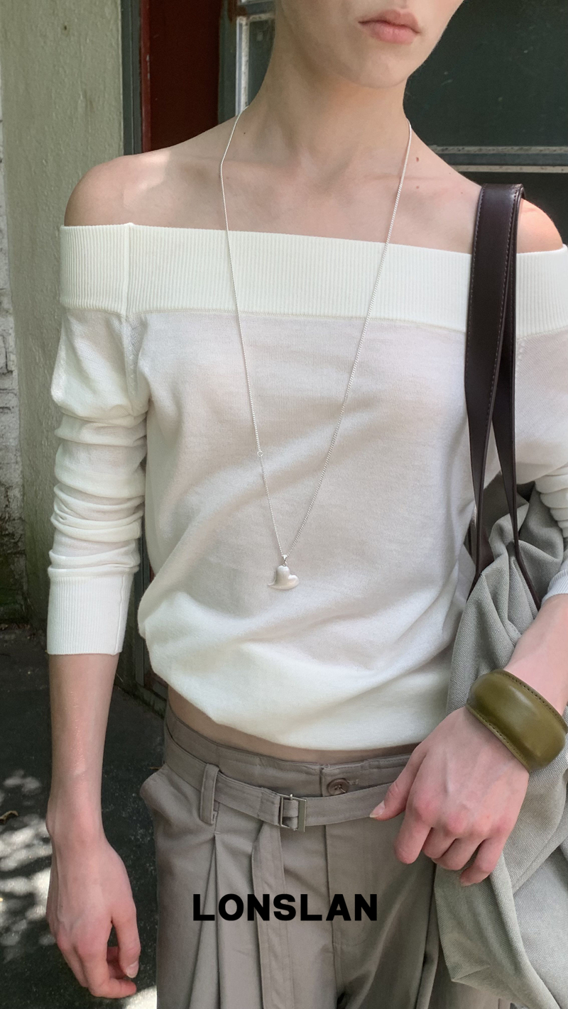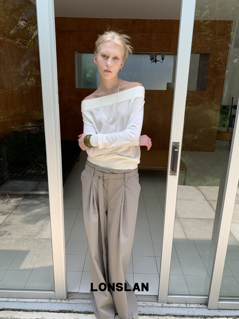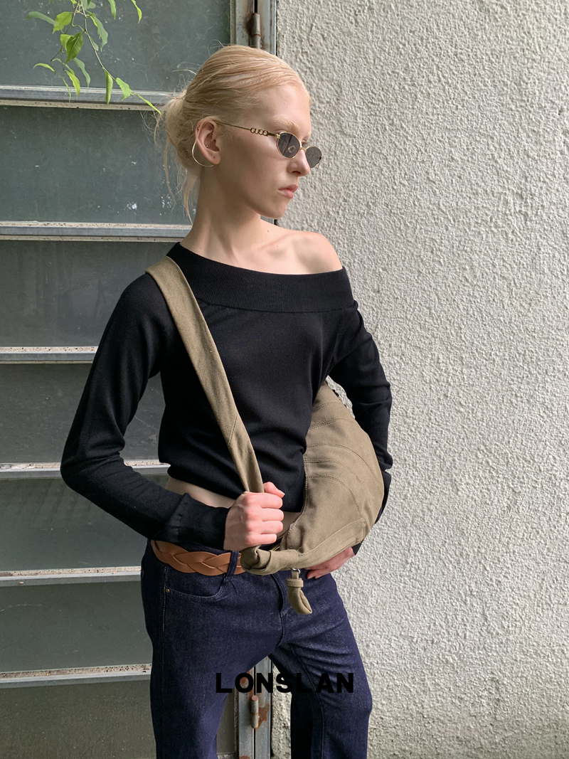LONSLAN one-shoulder oblique shoulder knitted sweater