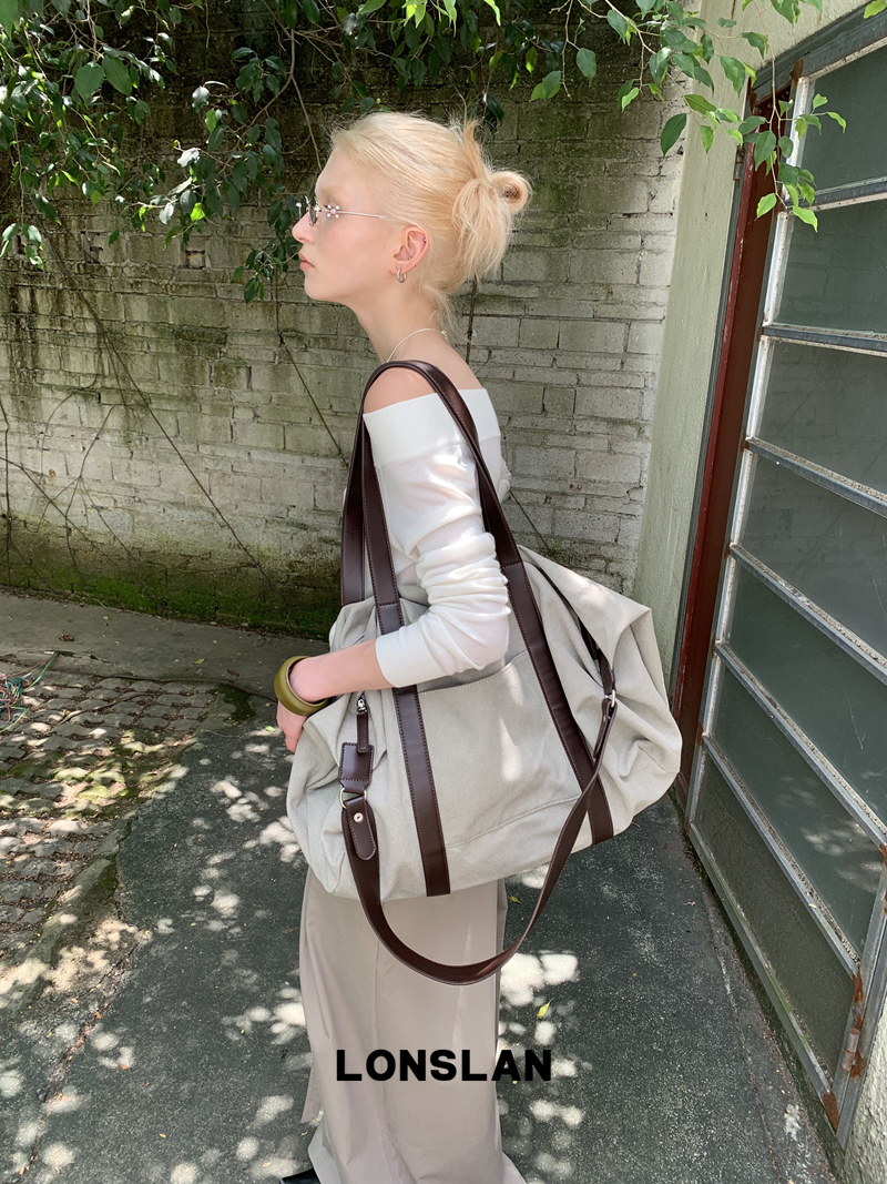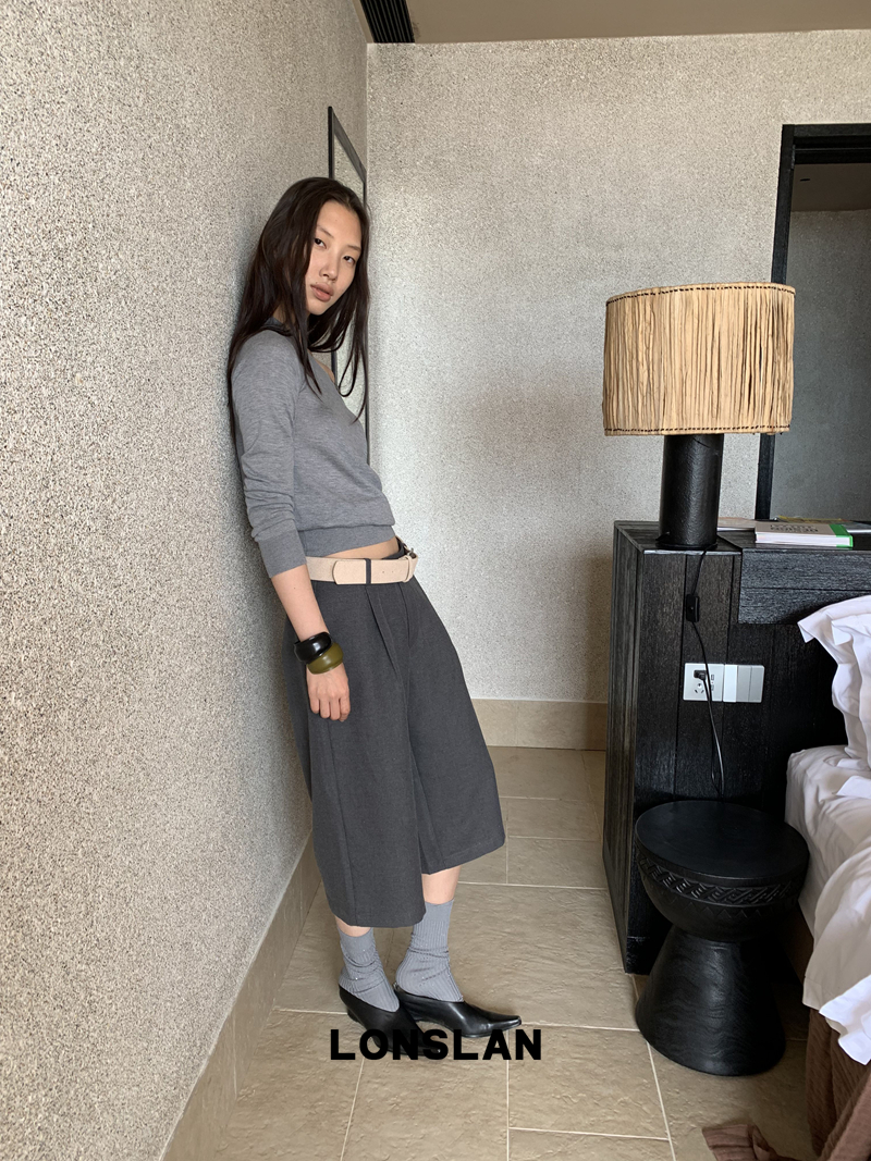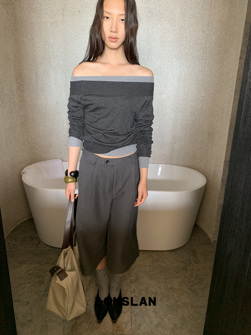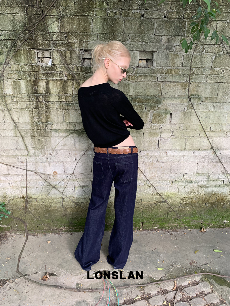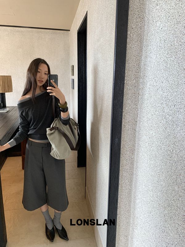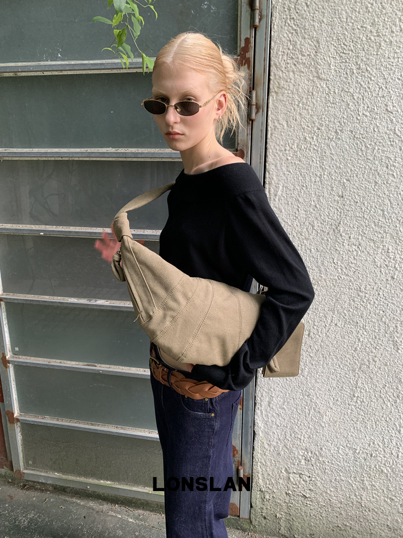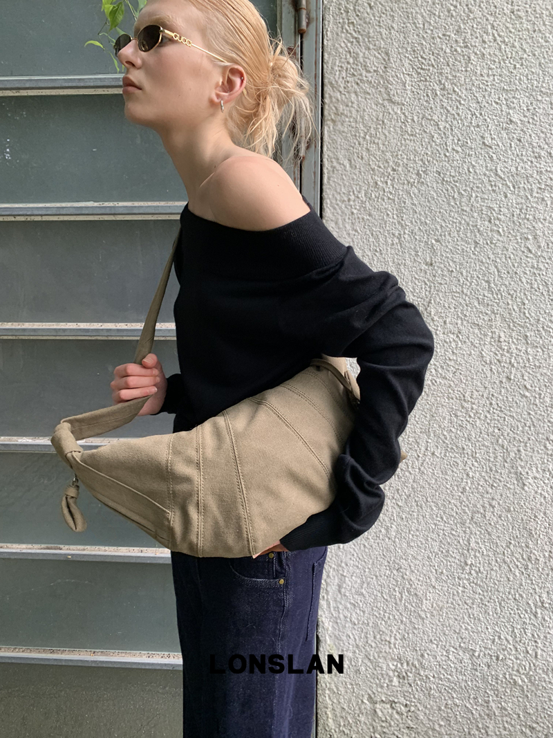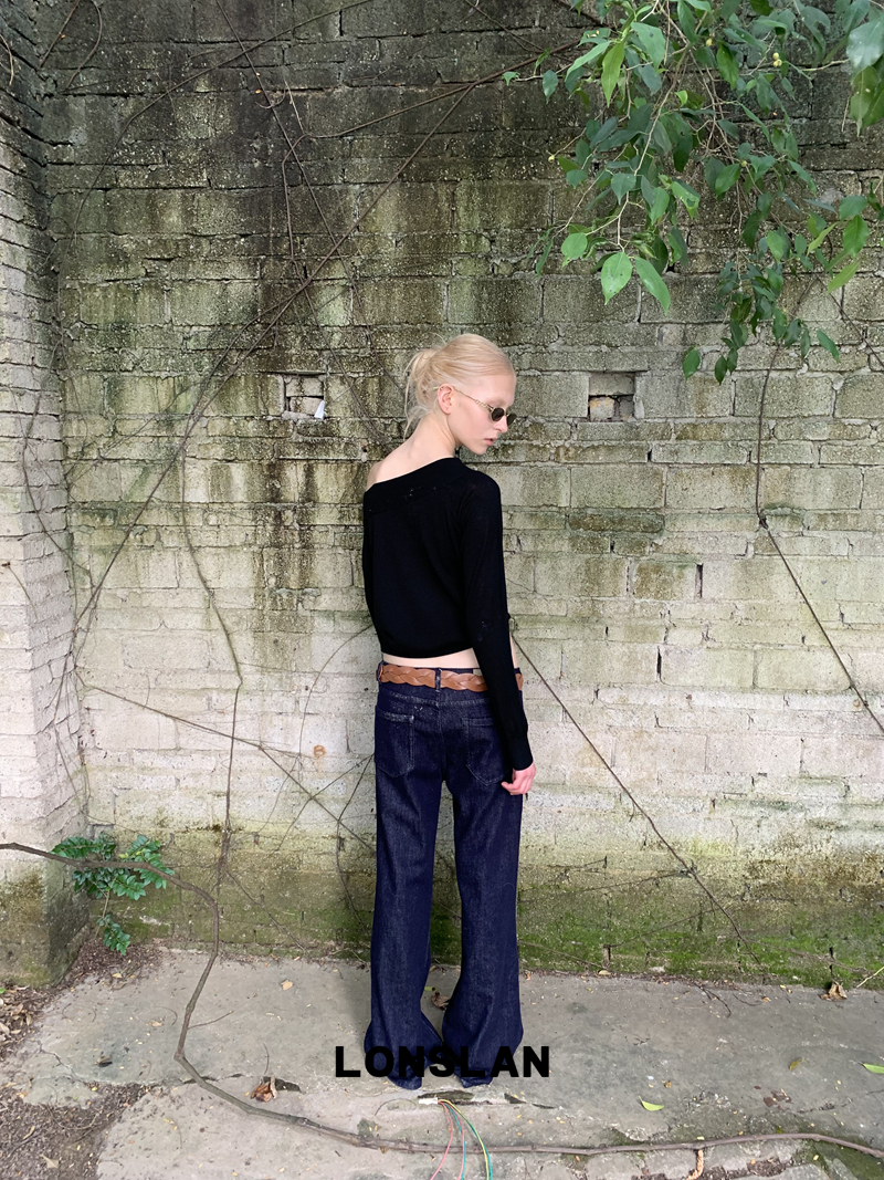 LONSLAN one-shoulder oblique shoulder knitted sweater