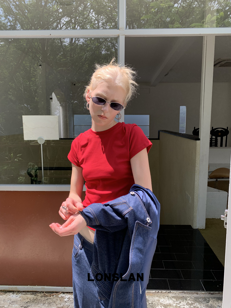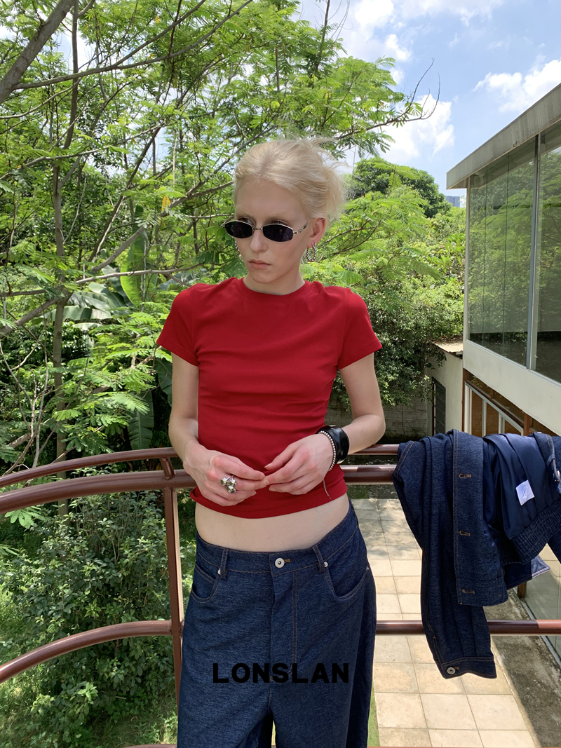 LONSLAN Stretch Slim Short-Sleeved Inner Top
