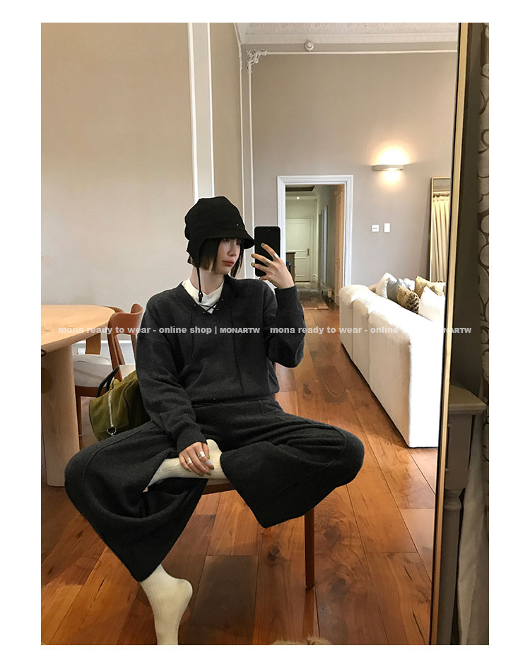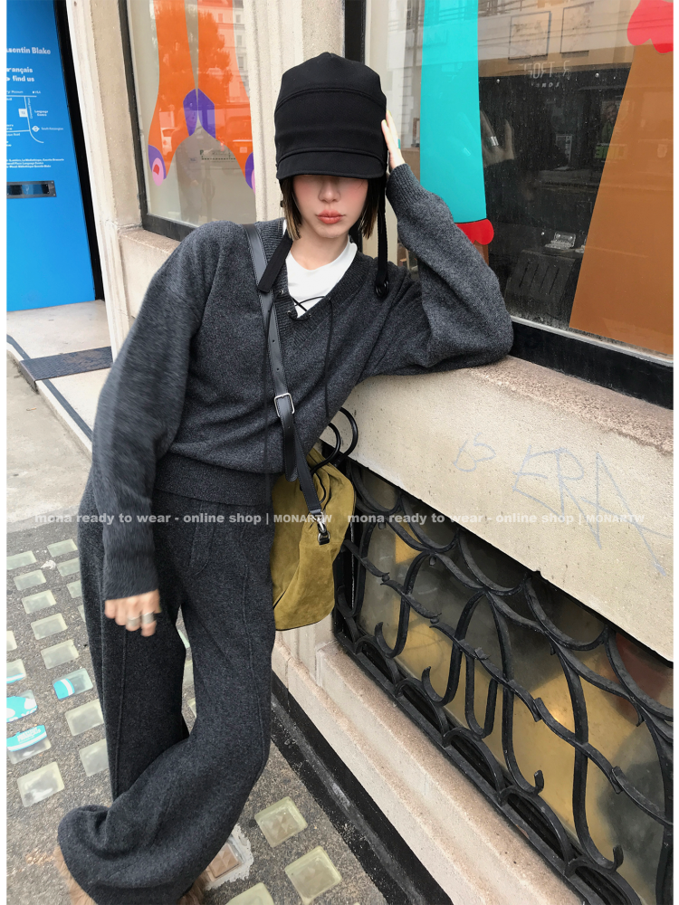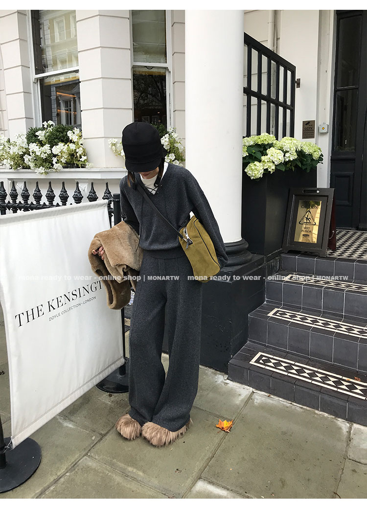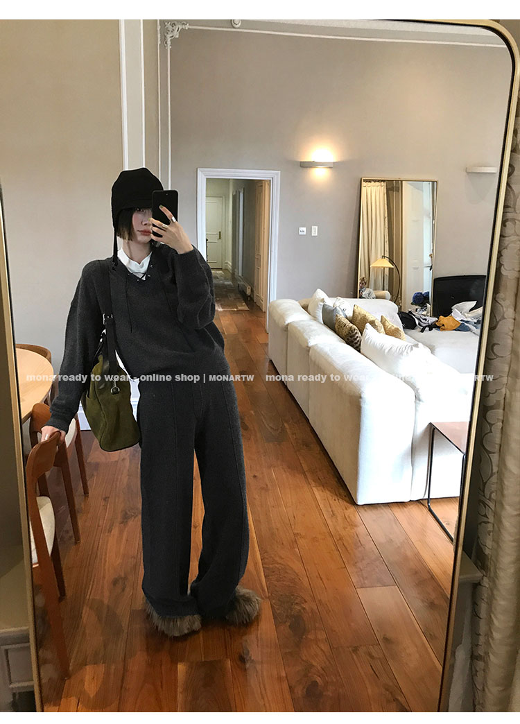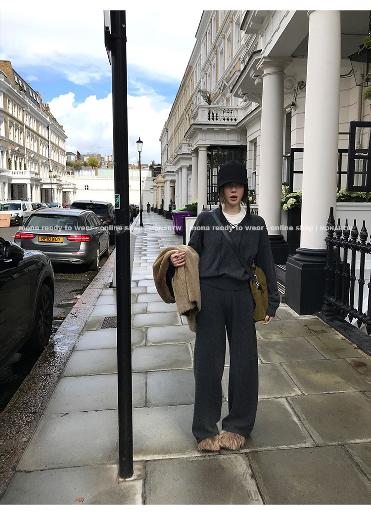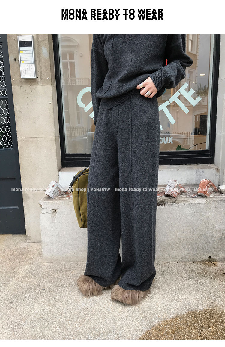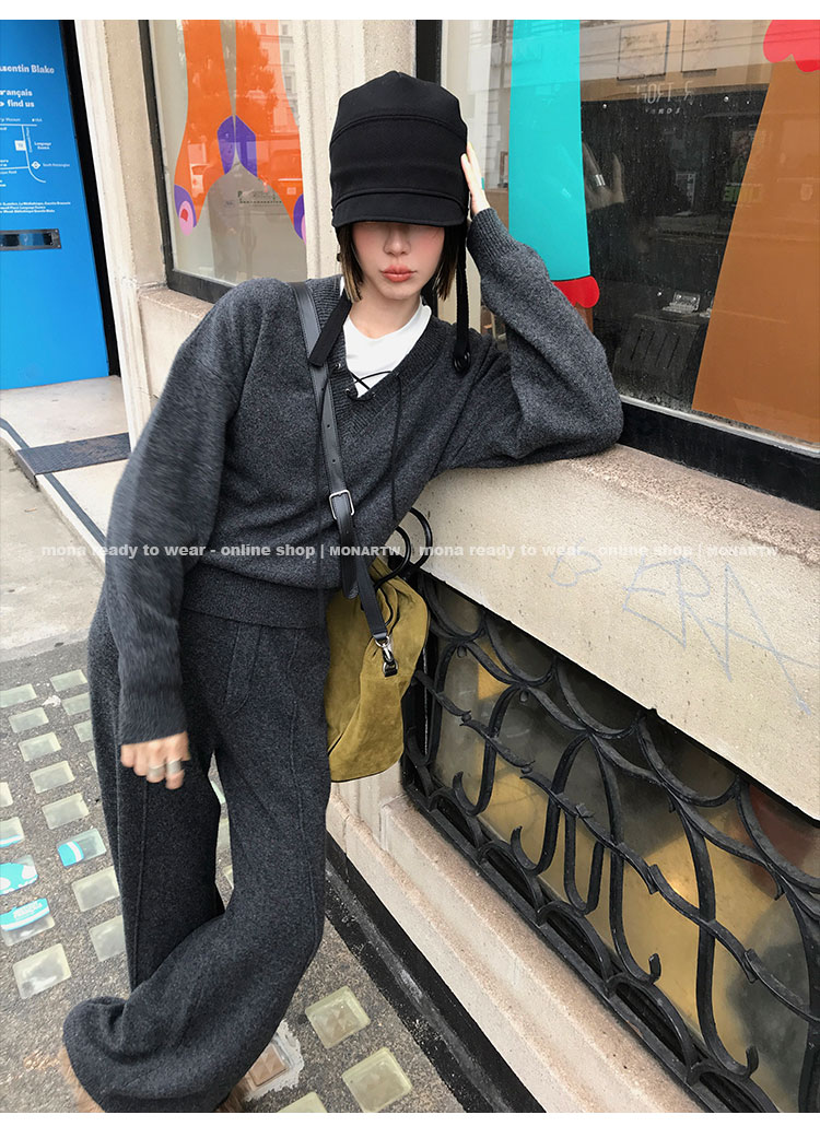 MONARTW wool lazy sweater top high waist pants set