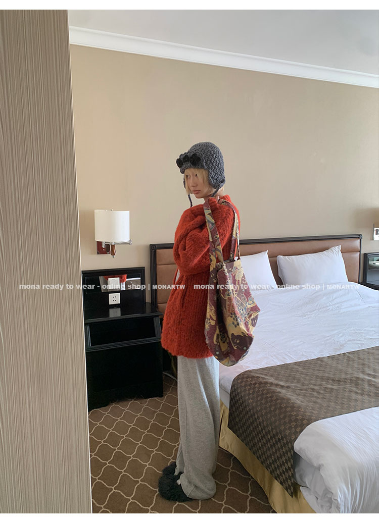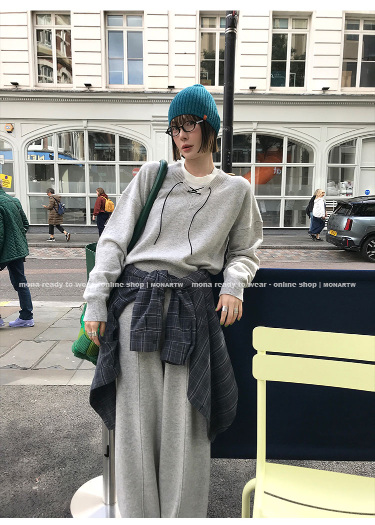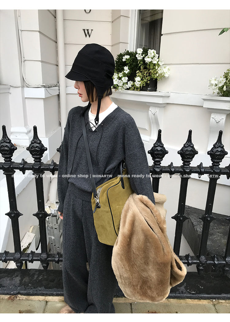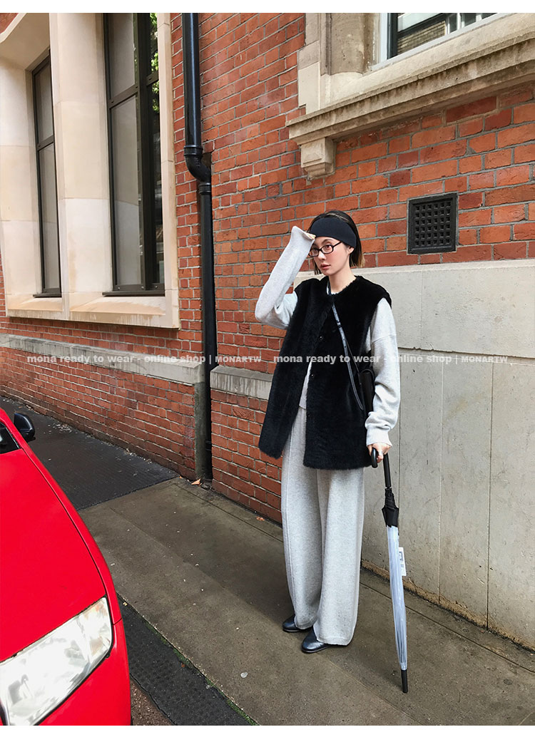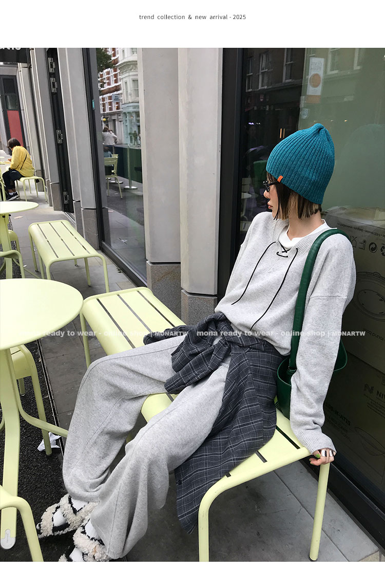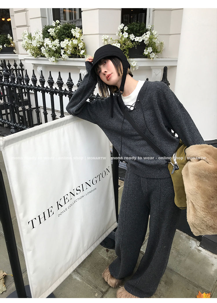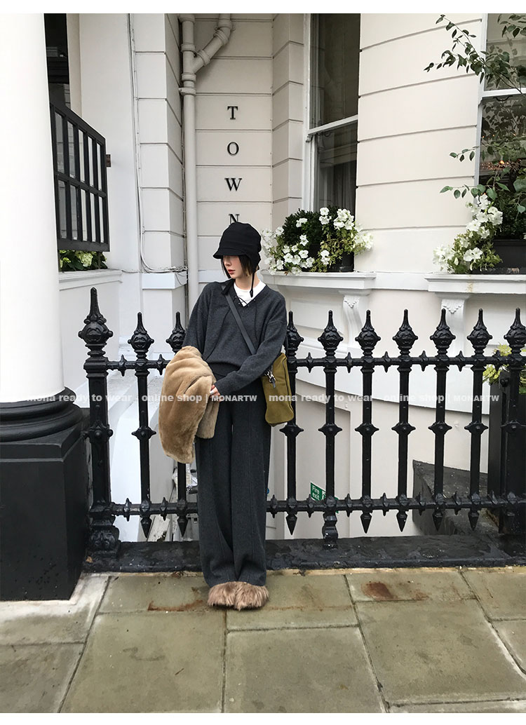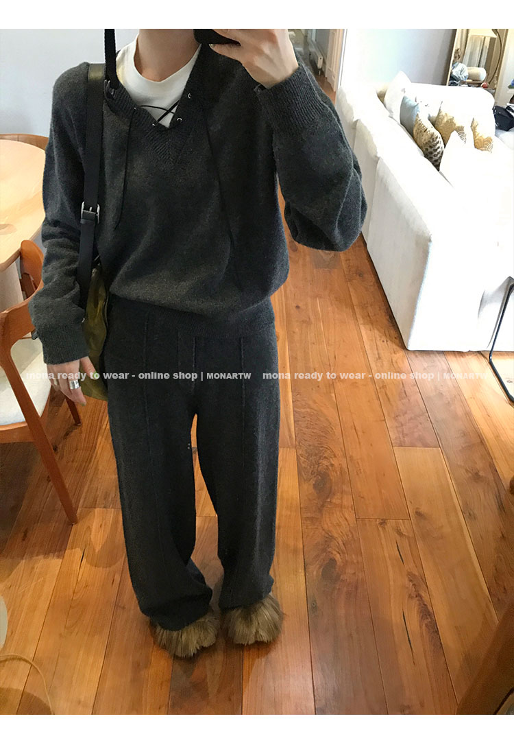 MONARTW wool lazy sweater top high waist pants set