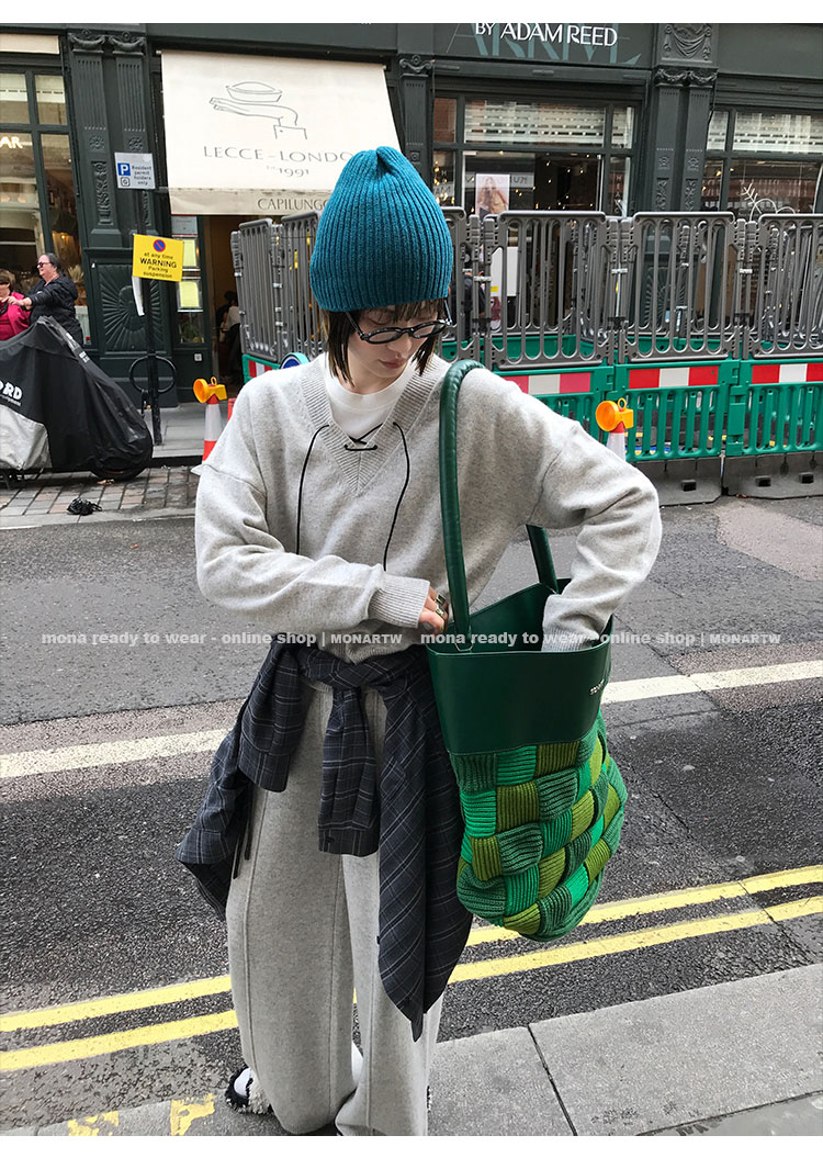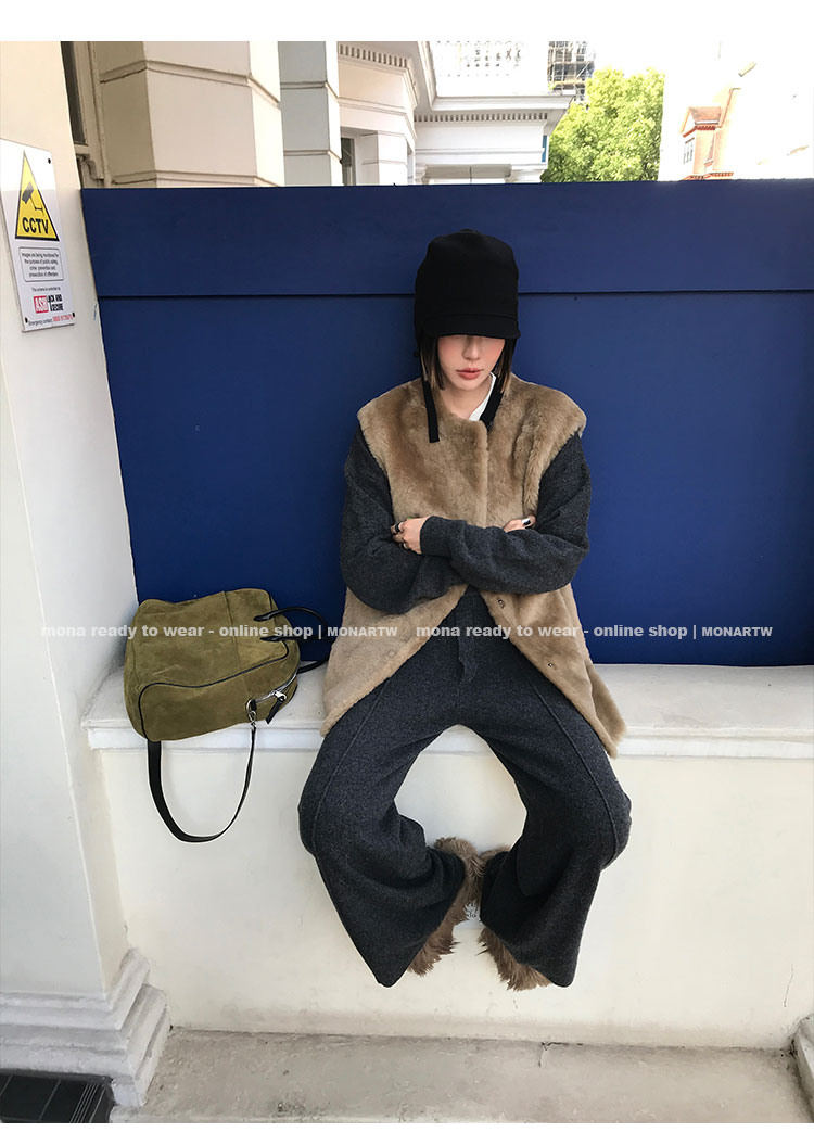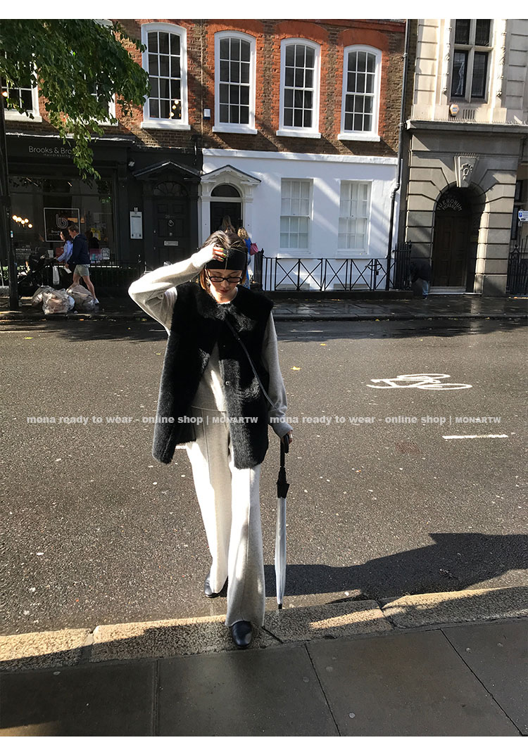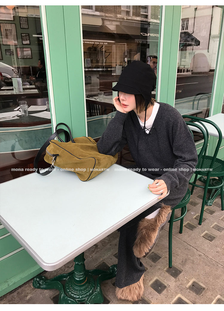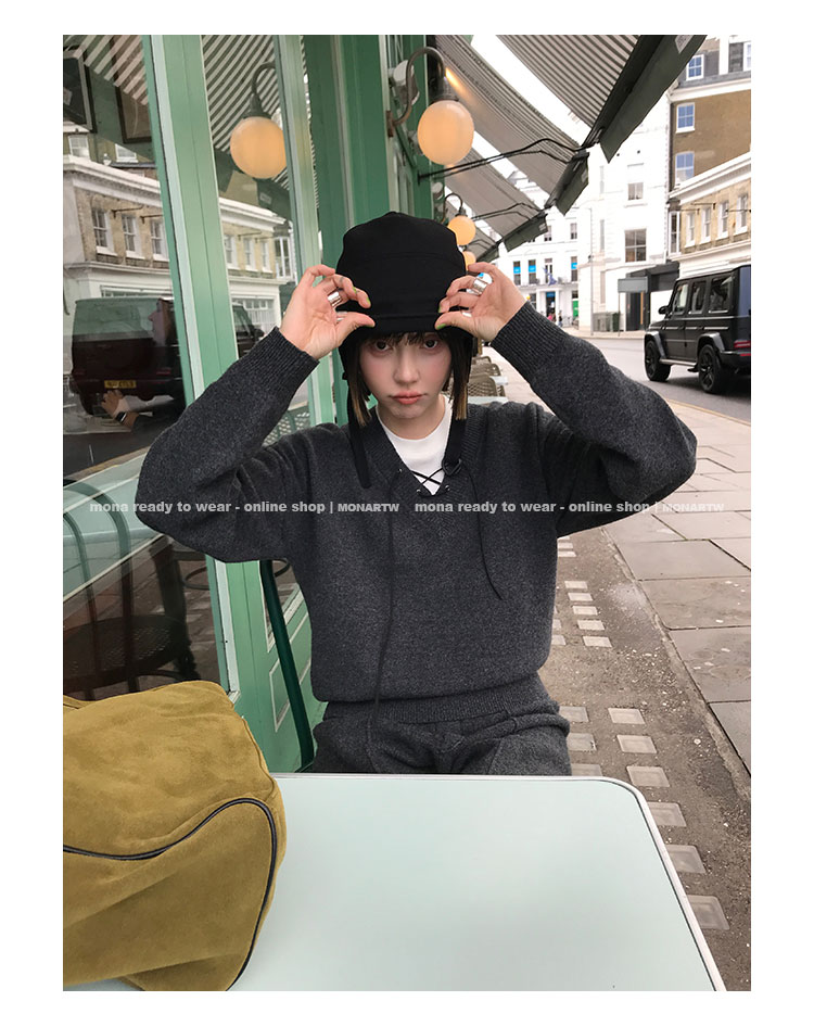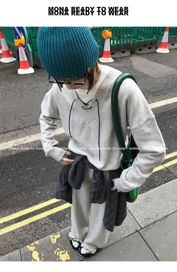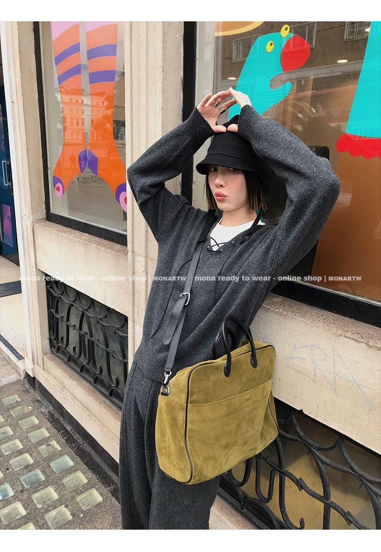 MONARTW wool lazy sweater top high waist pants set
