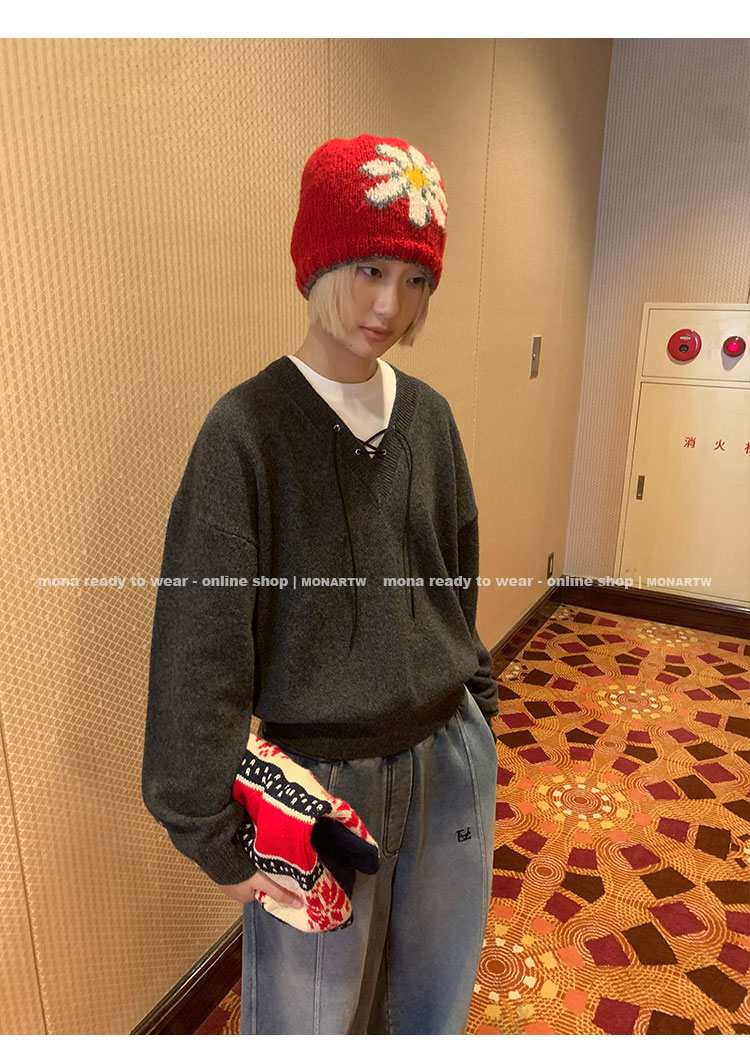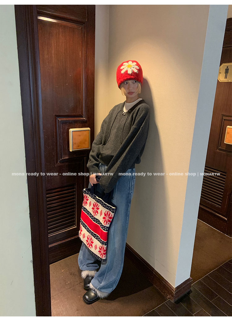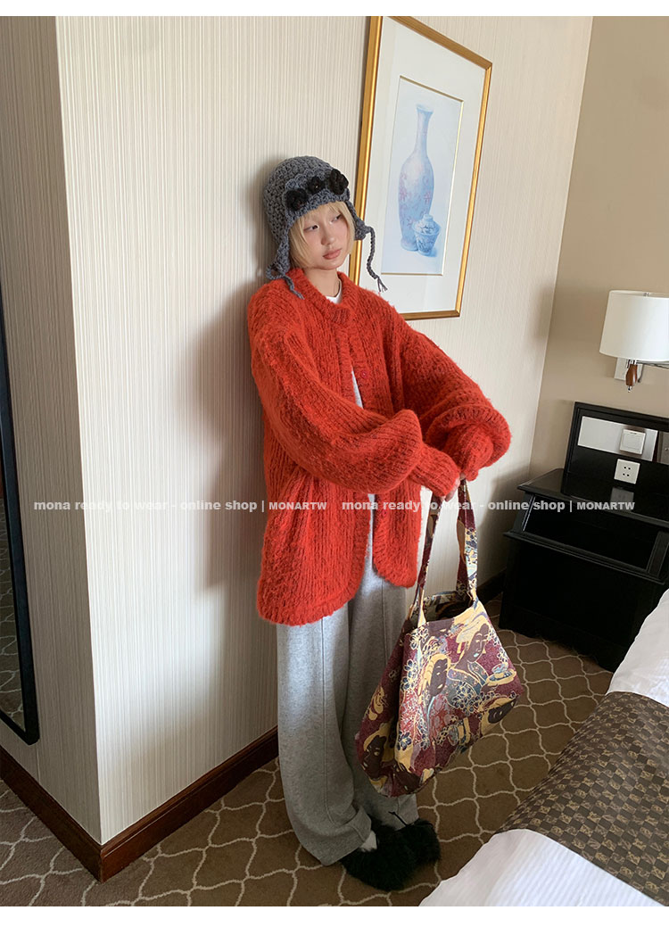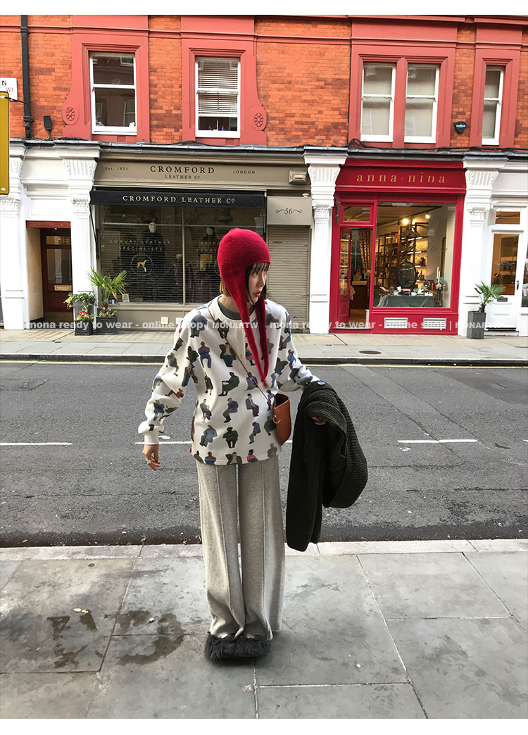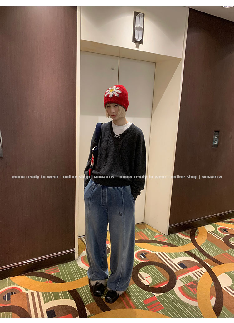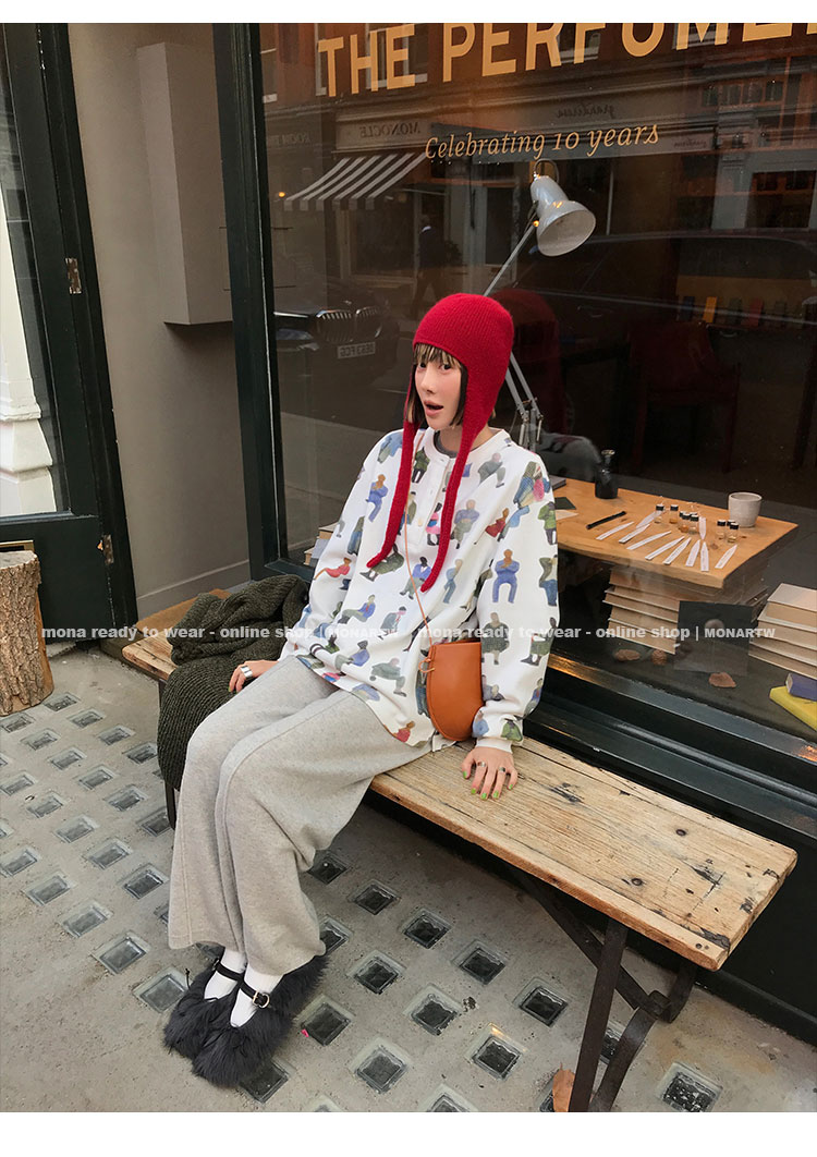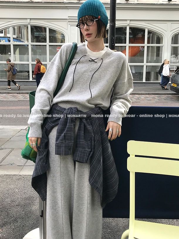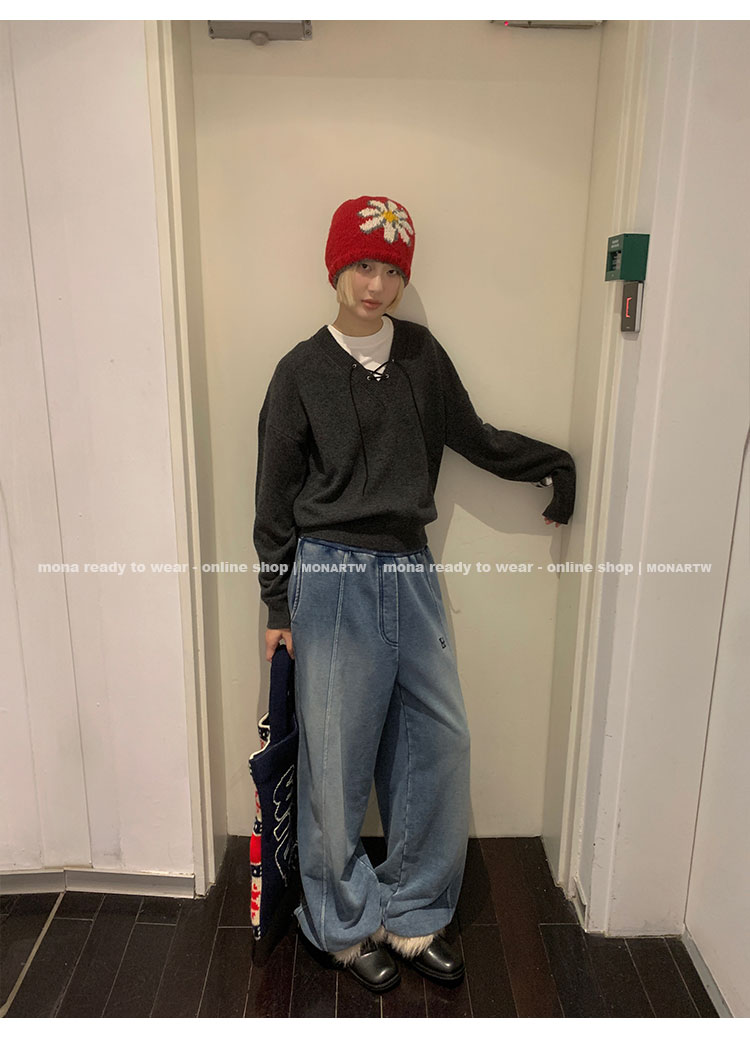 MONARTW wool lazy sweater top high waist pants set
