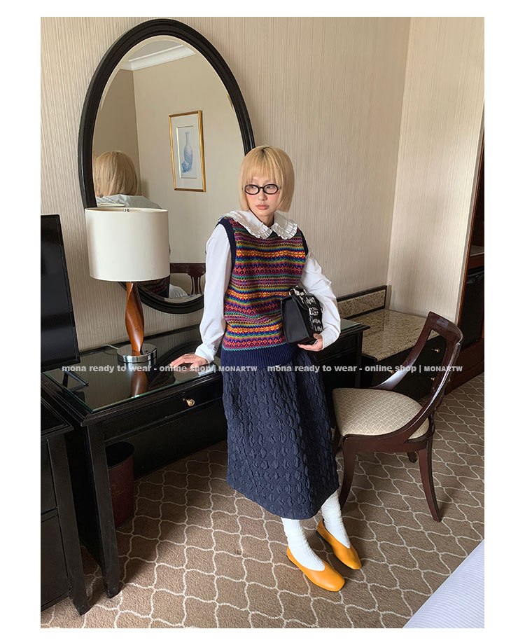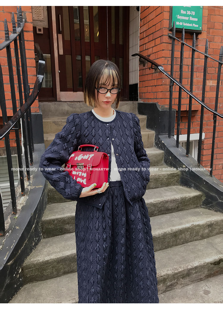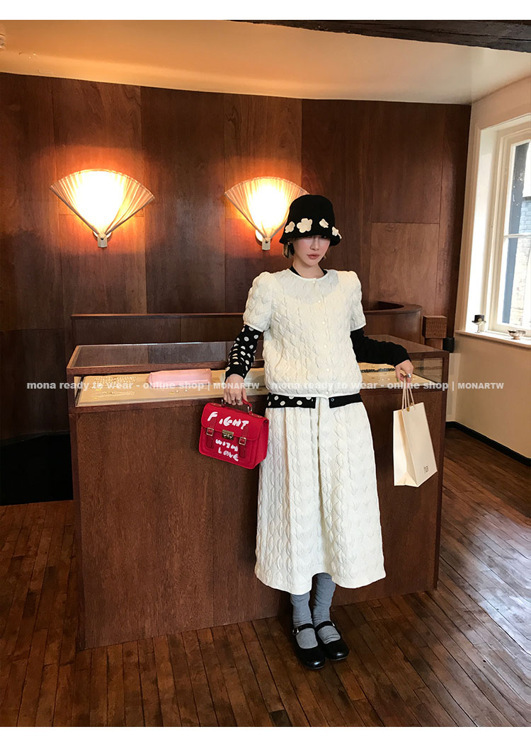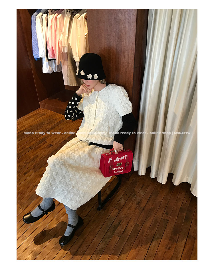 MONARTW Oxford diamond quilted top and mid-waist maxi skirt