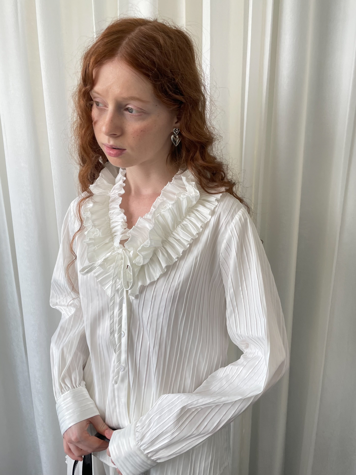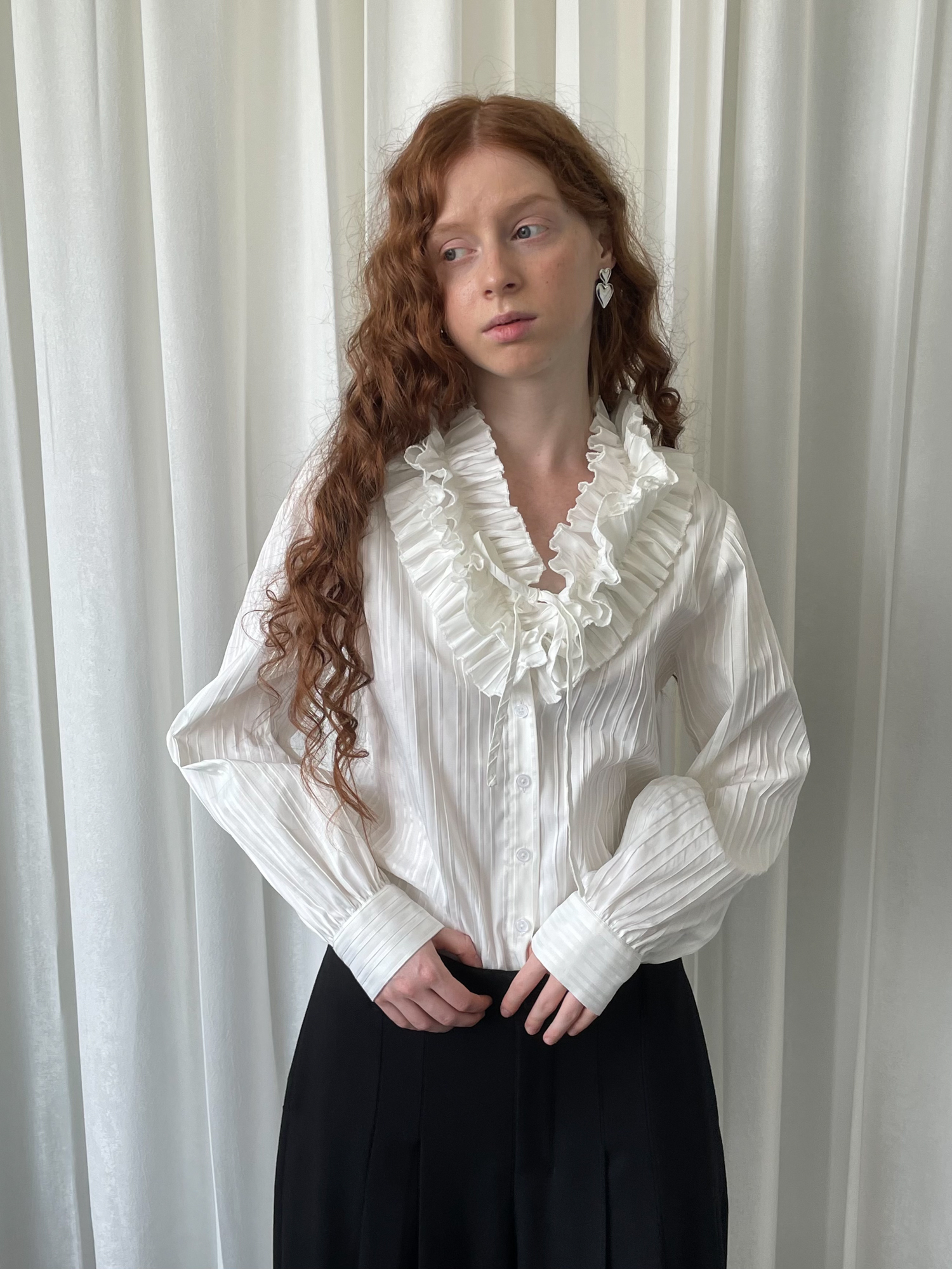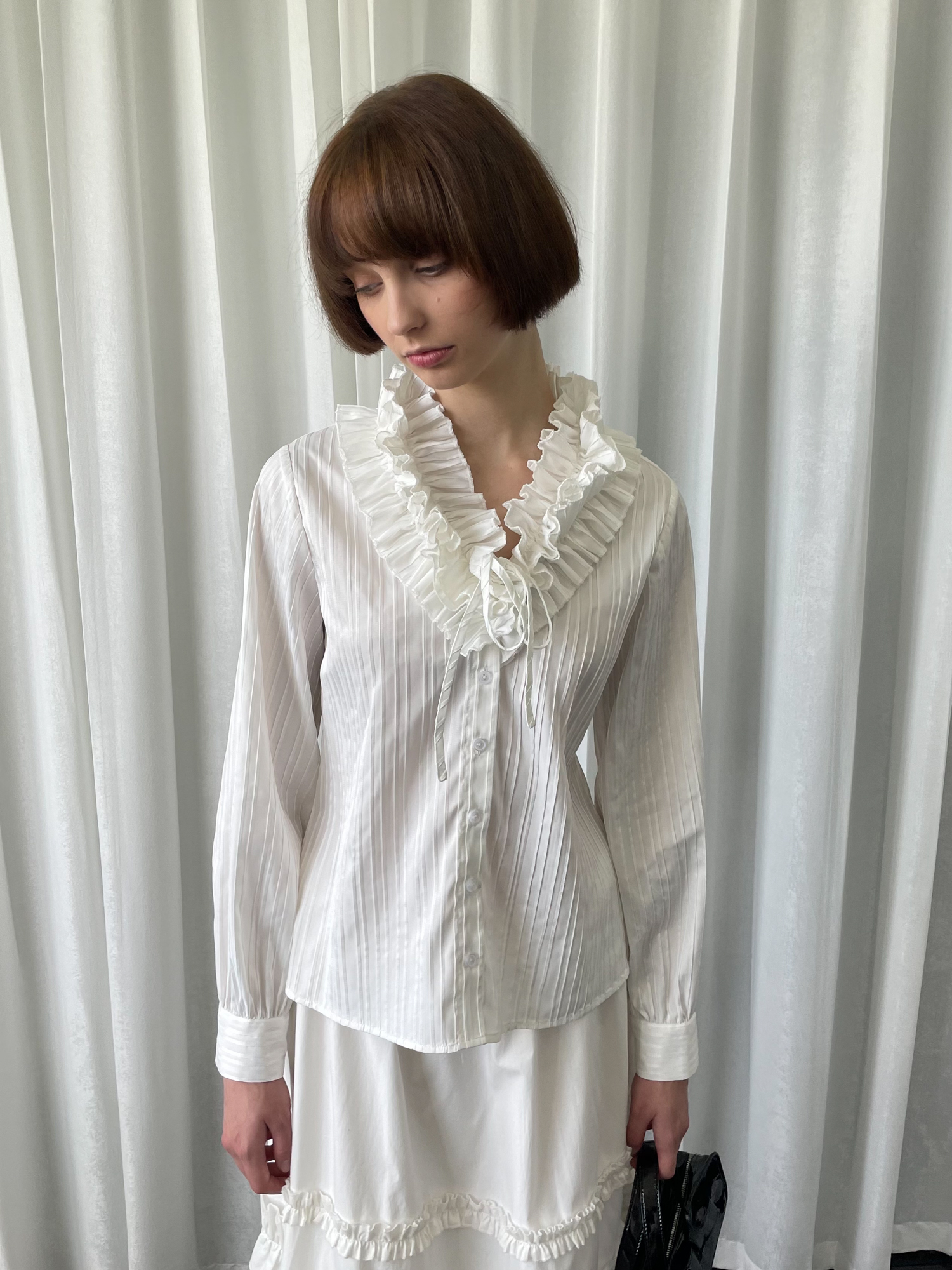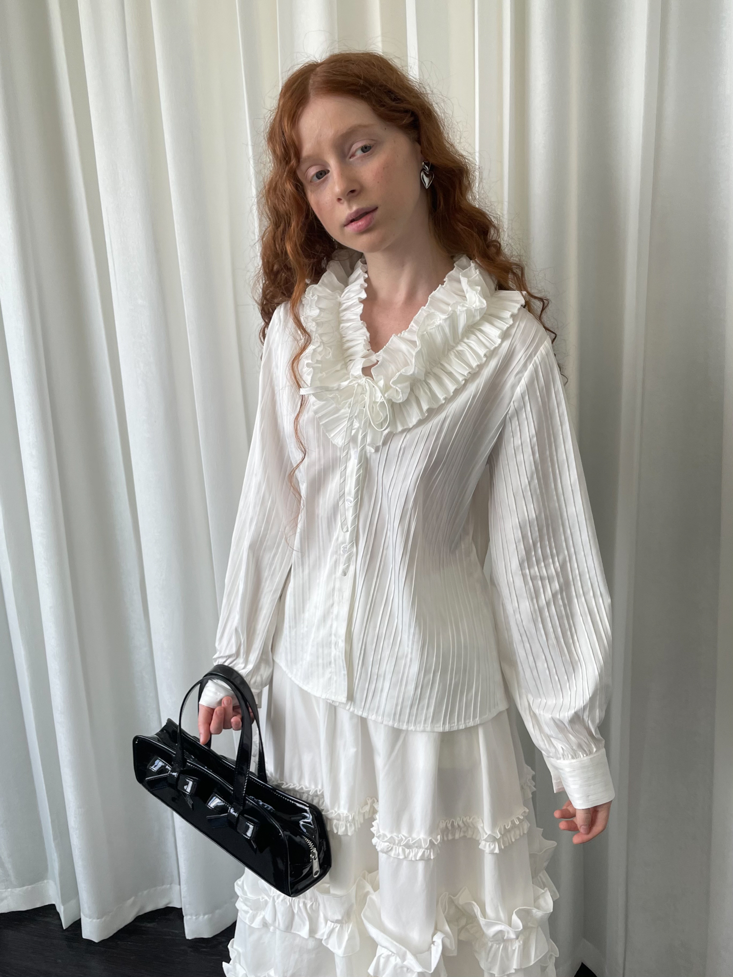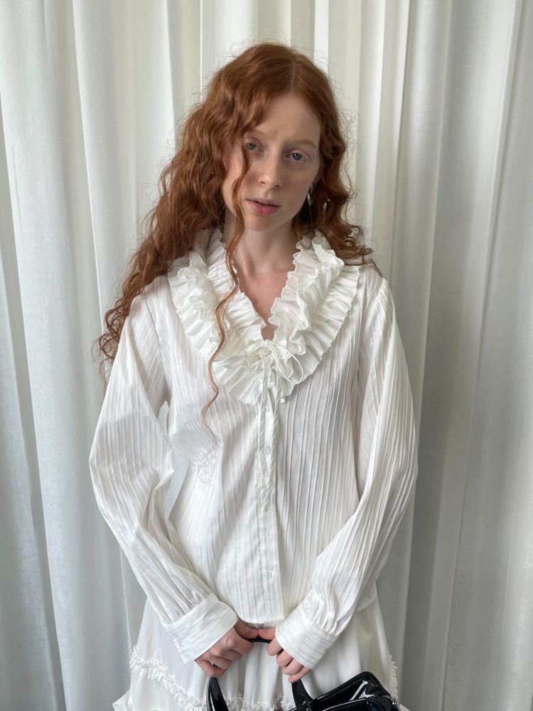 LOOSE large lace collar tie long-sleeved shirt
