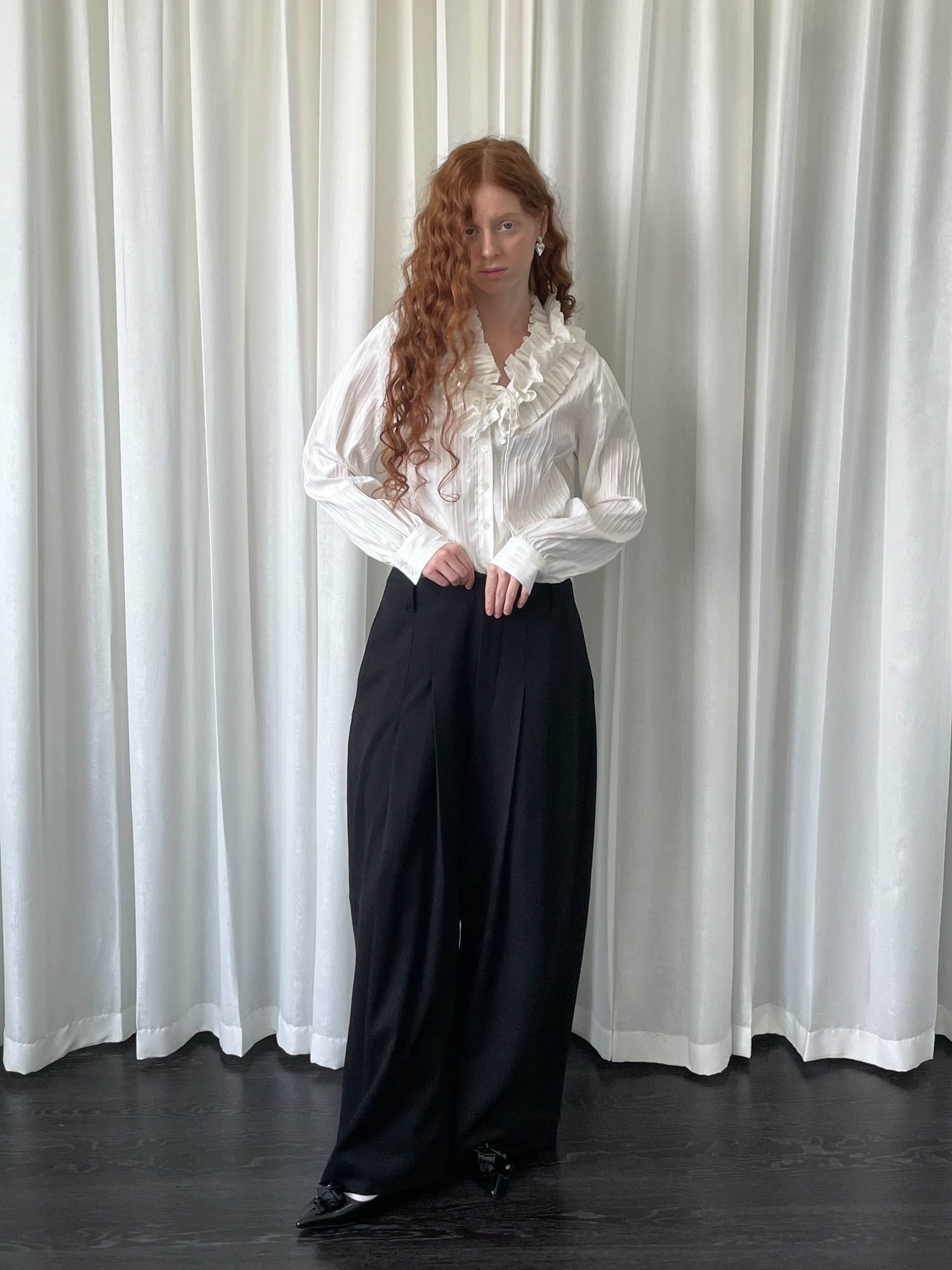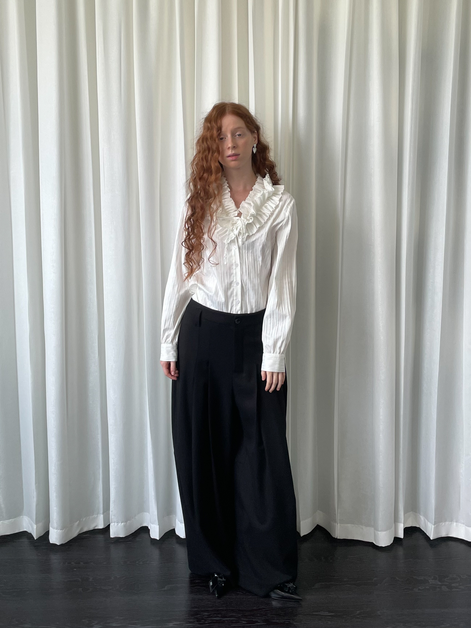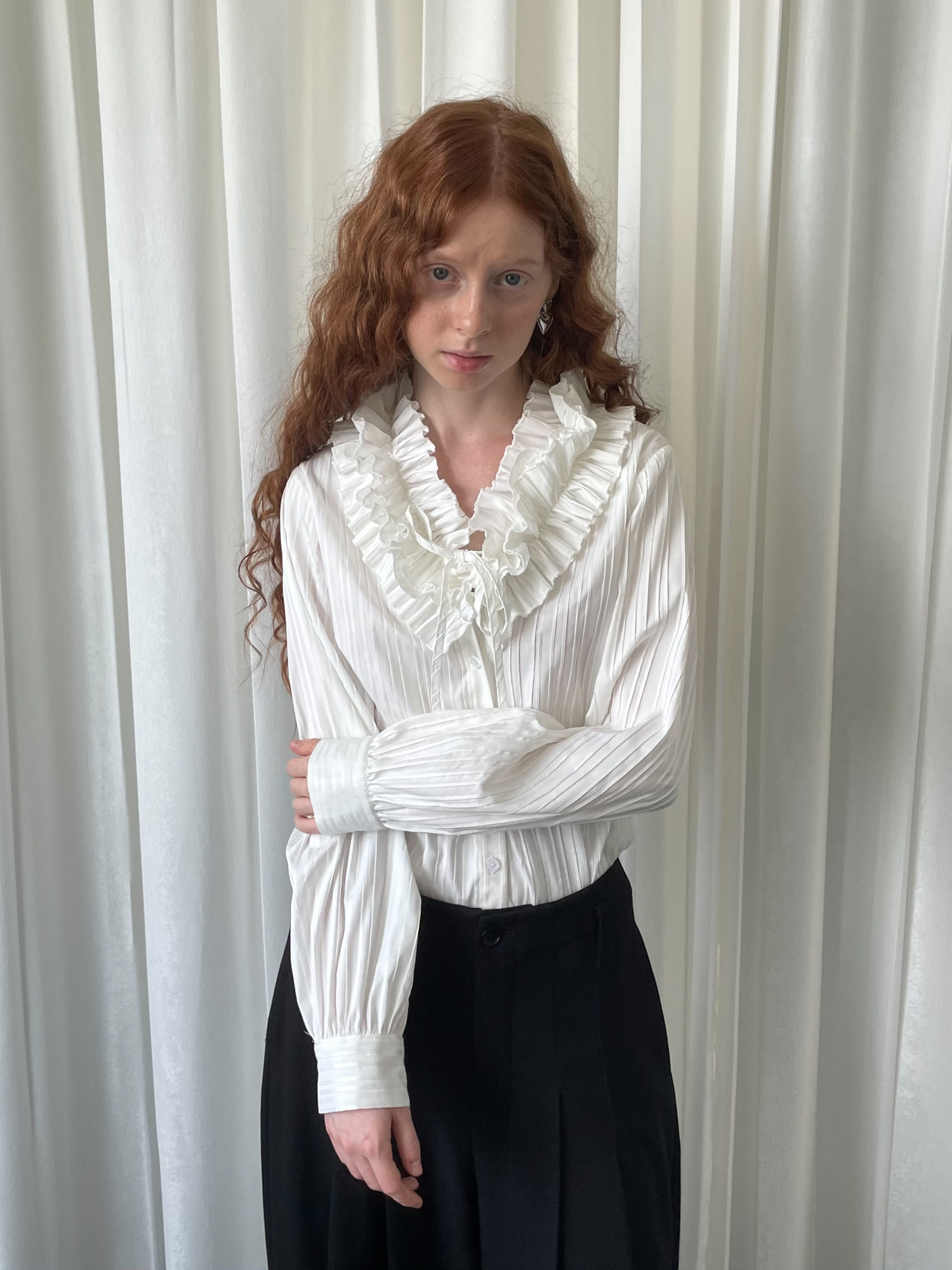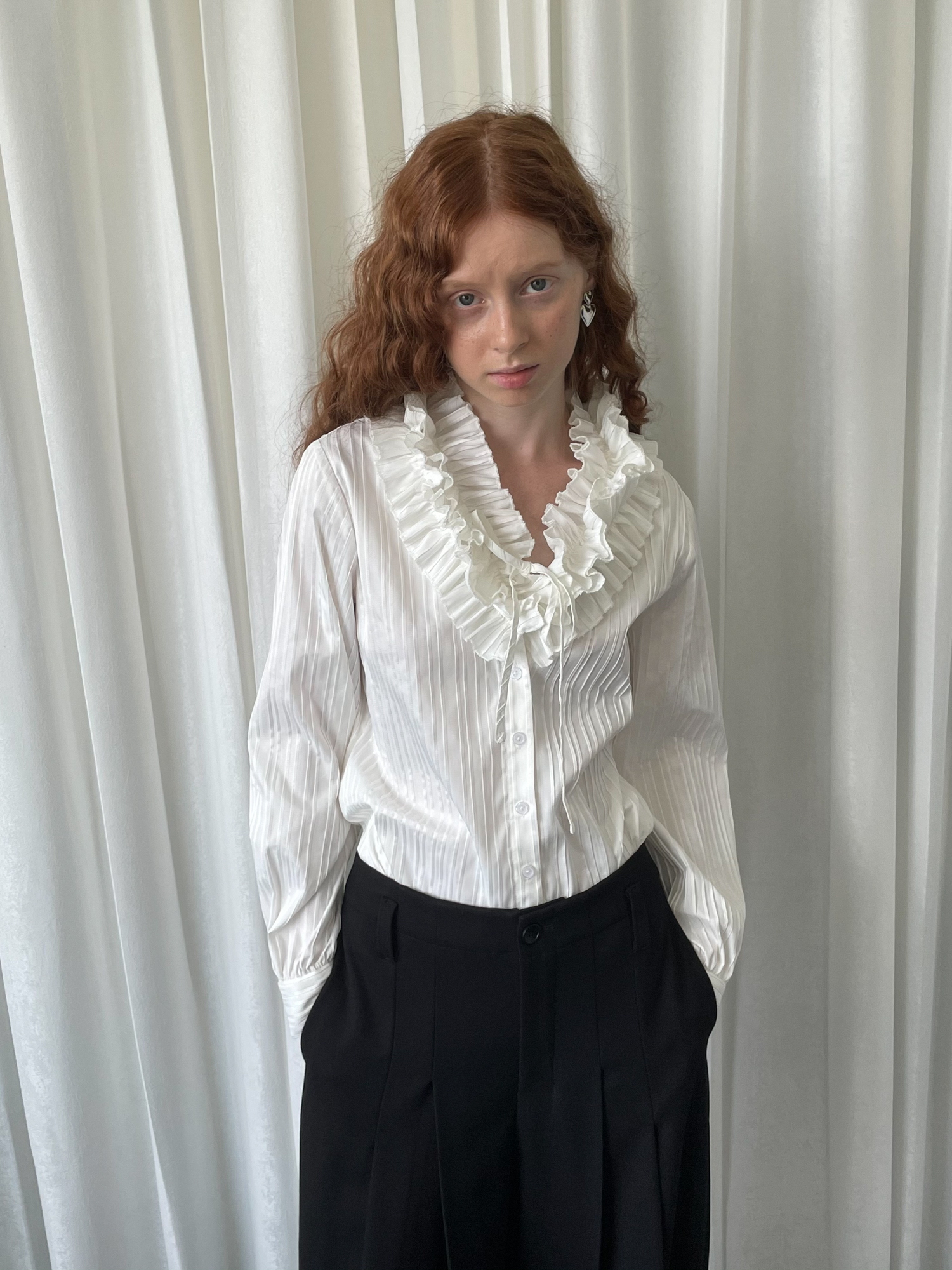 LOOSE large lace collar tie long-sleeved shirt