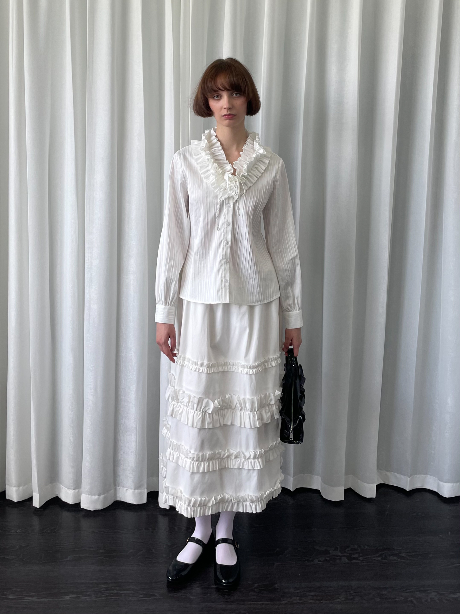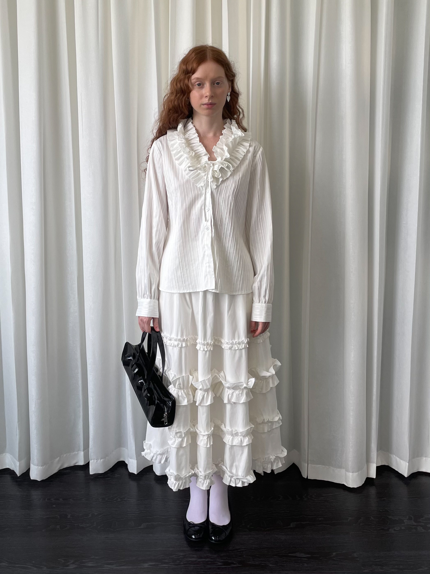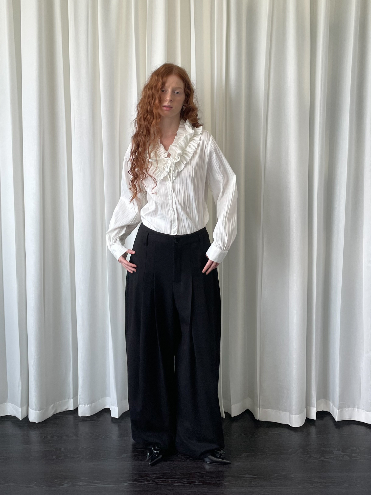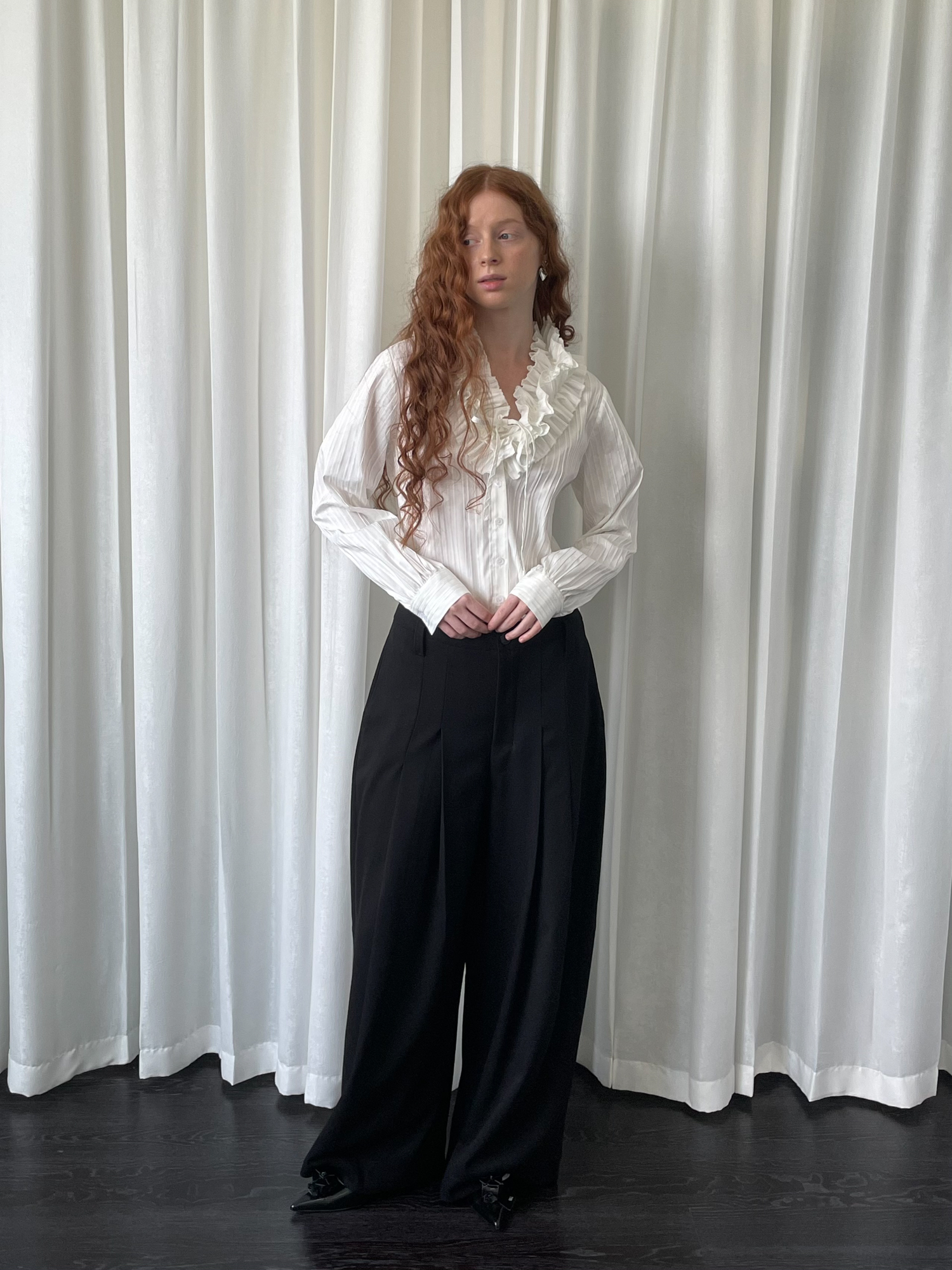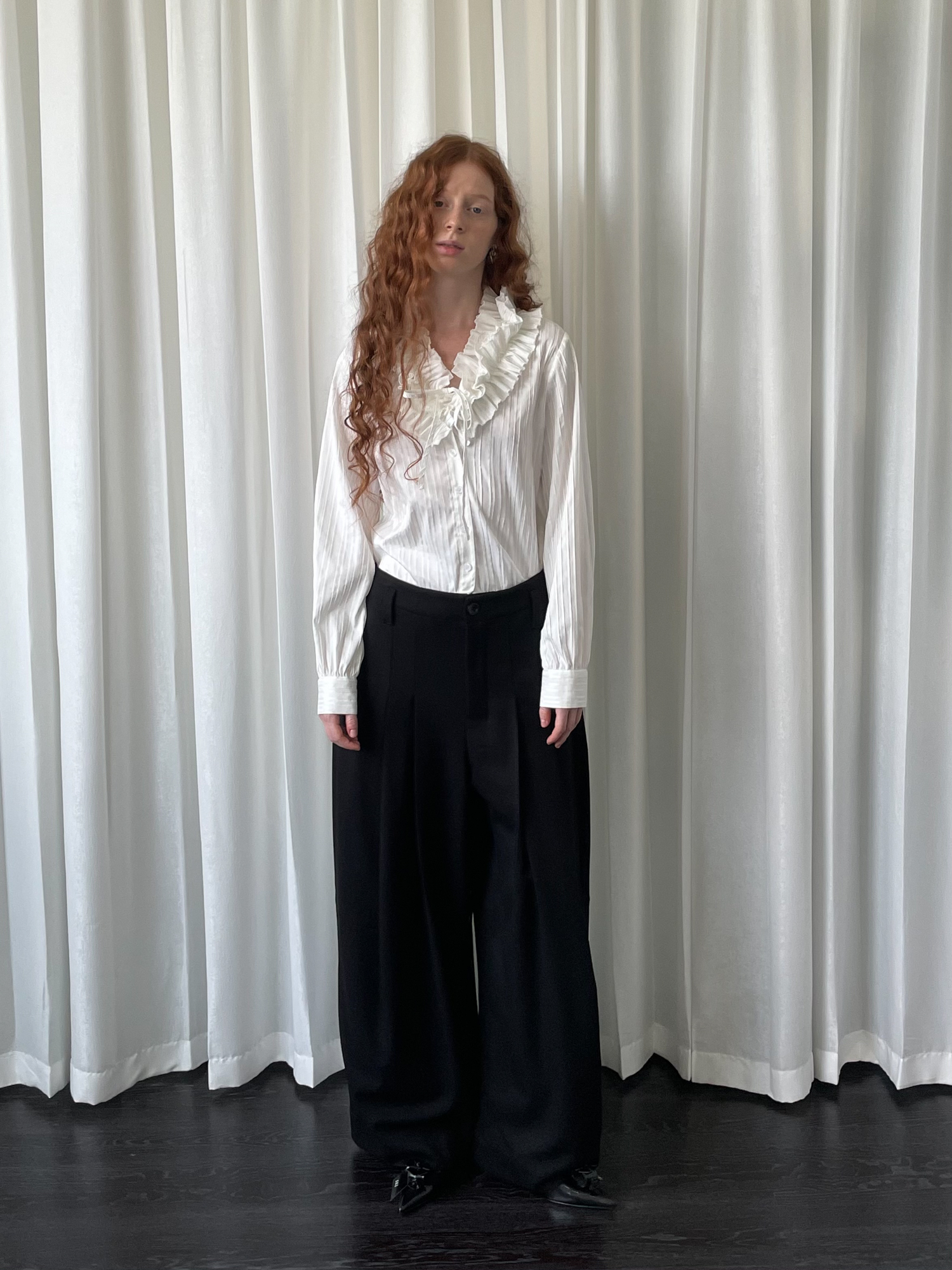 LOOSE large lace collar tie long-sleeved shirt