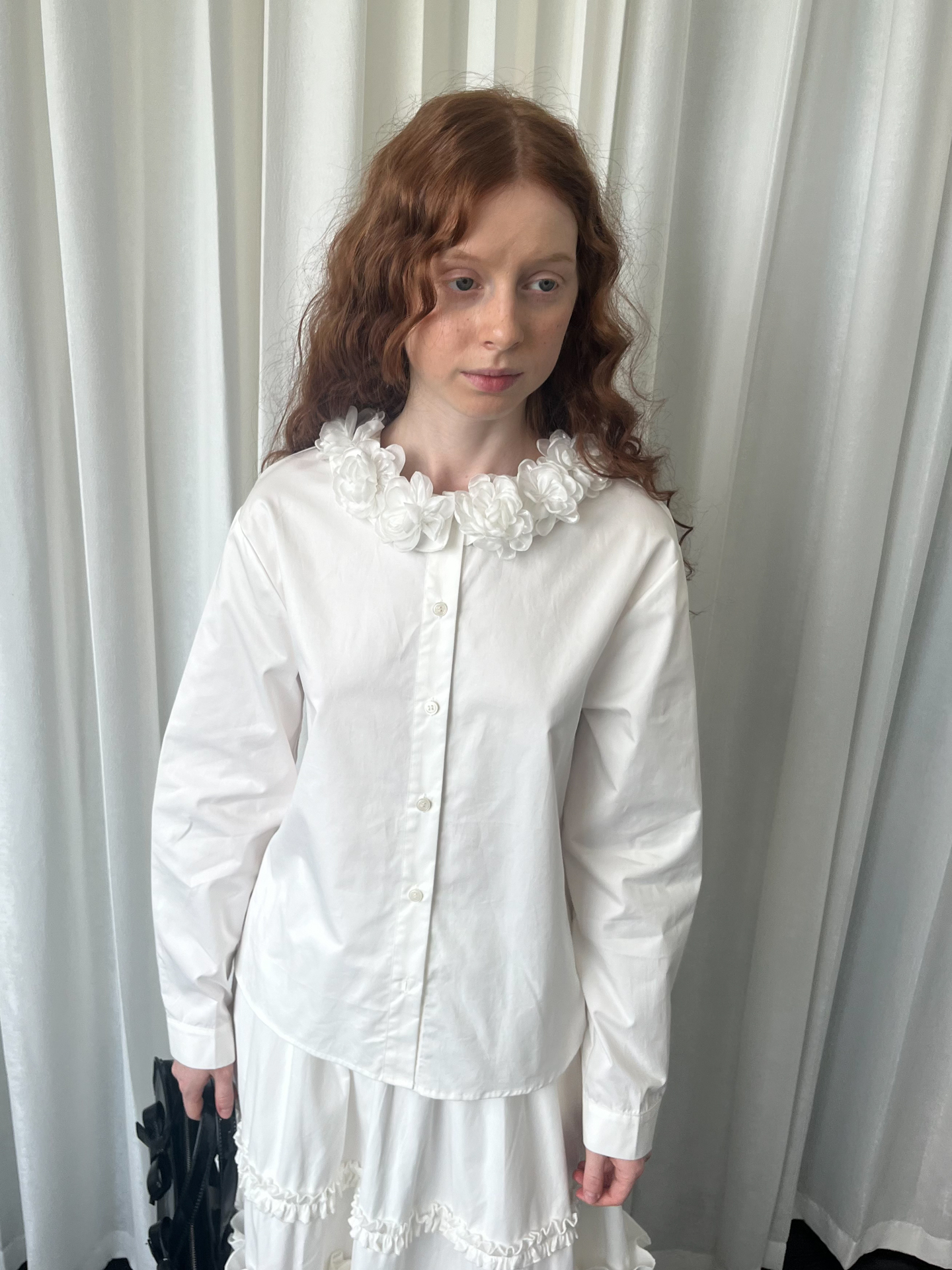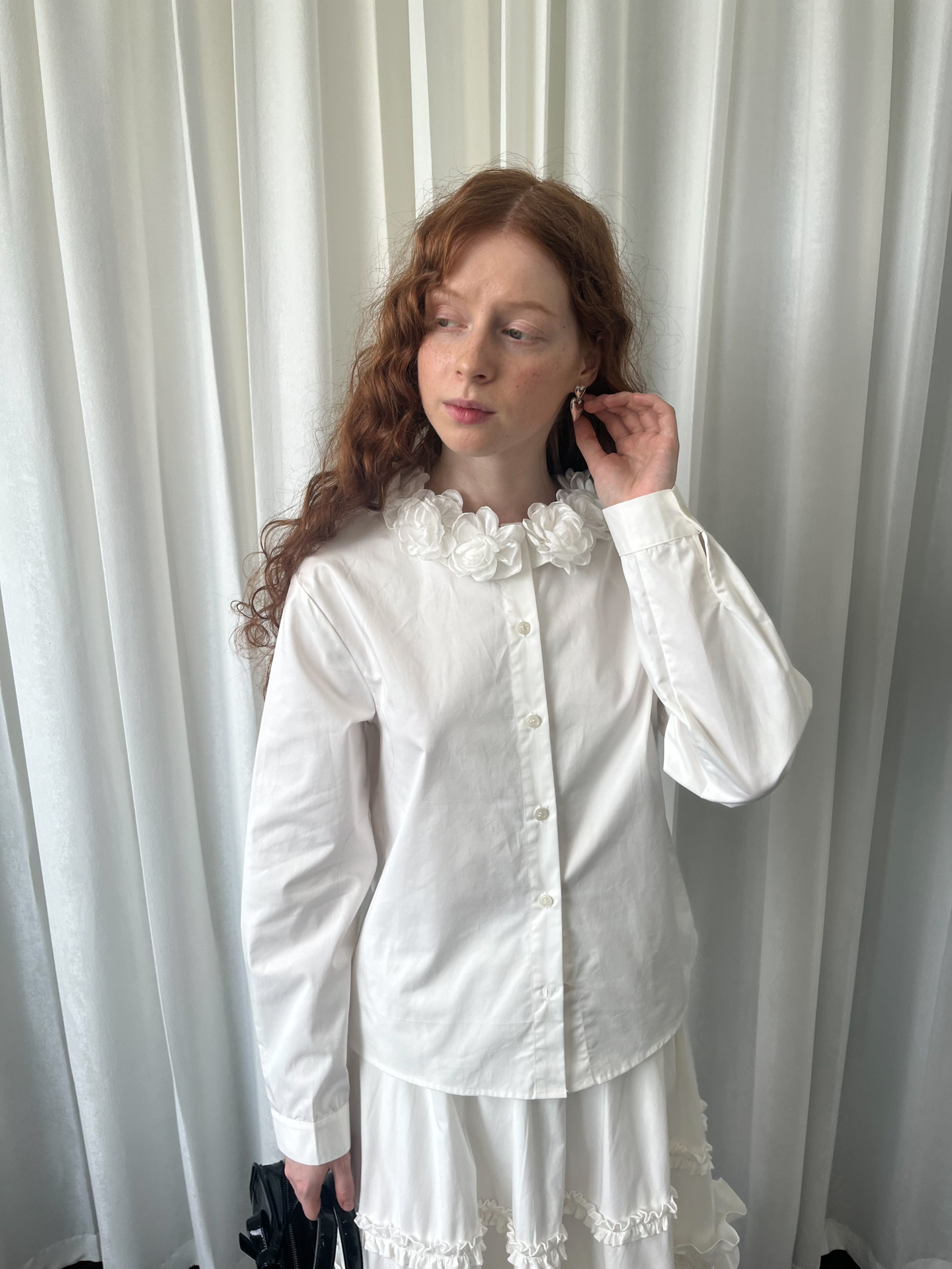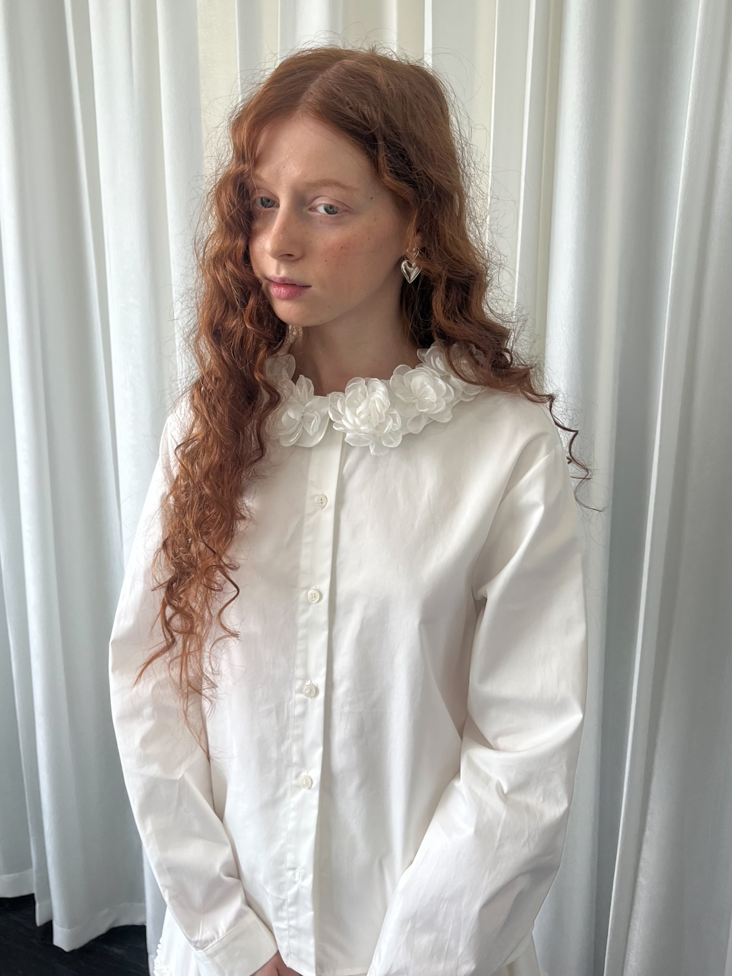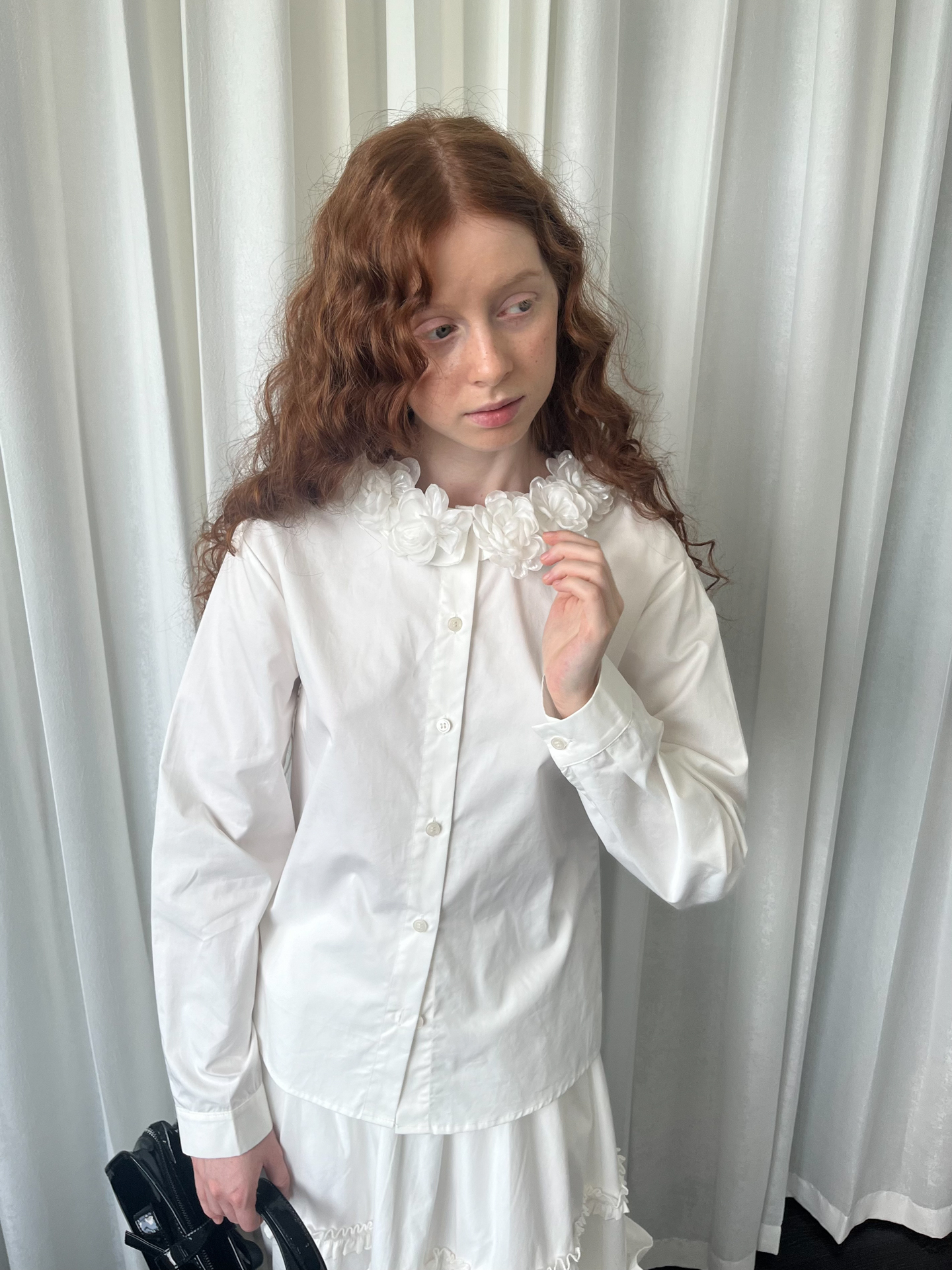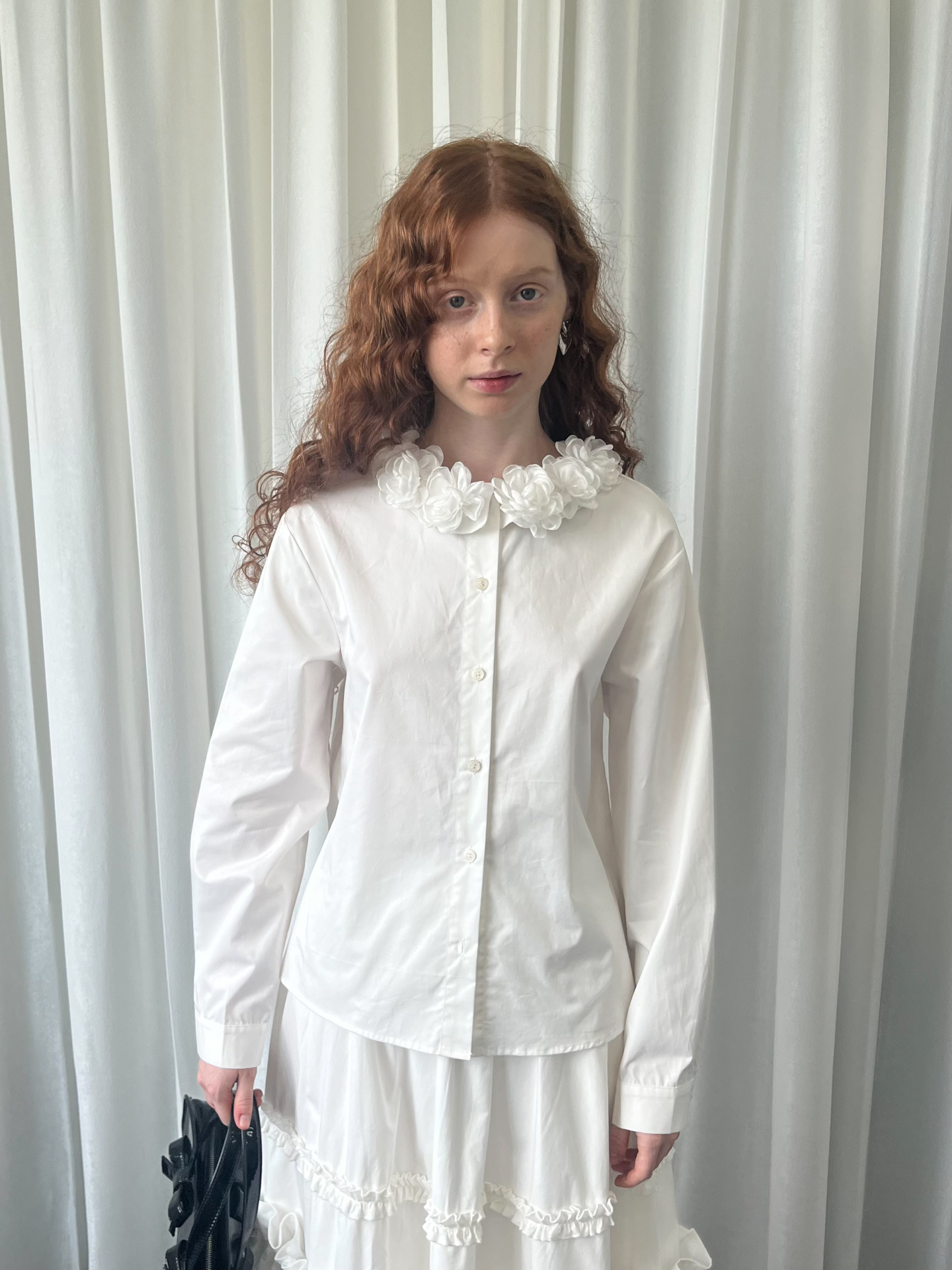 LOOSE three-dimensional flower decorative collar white long-sleeved shirtNEW