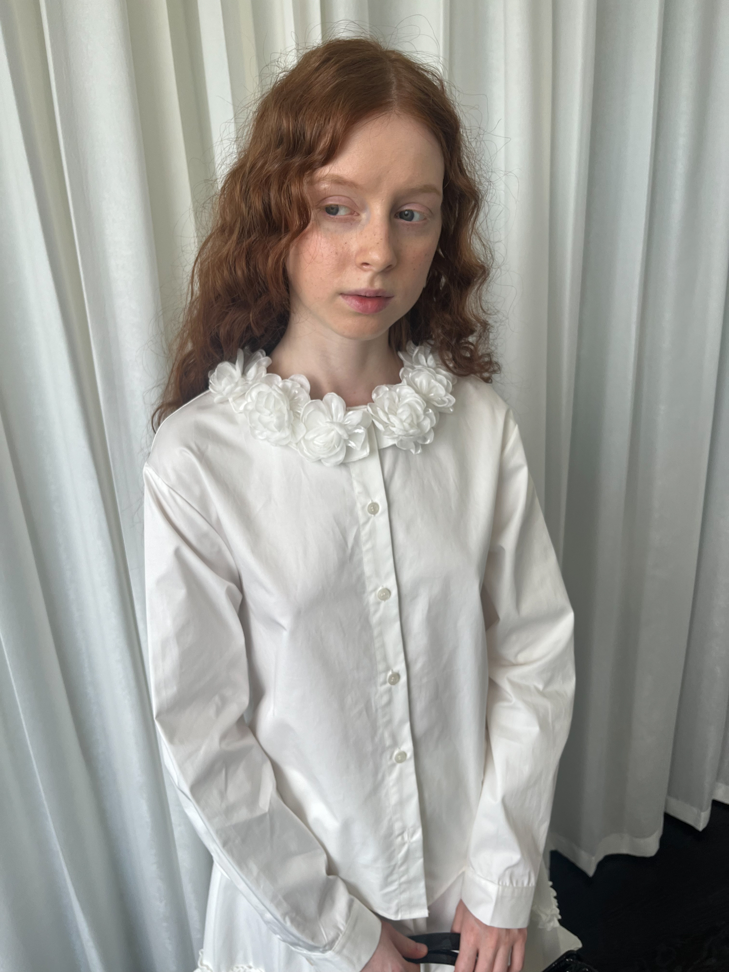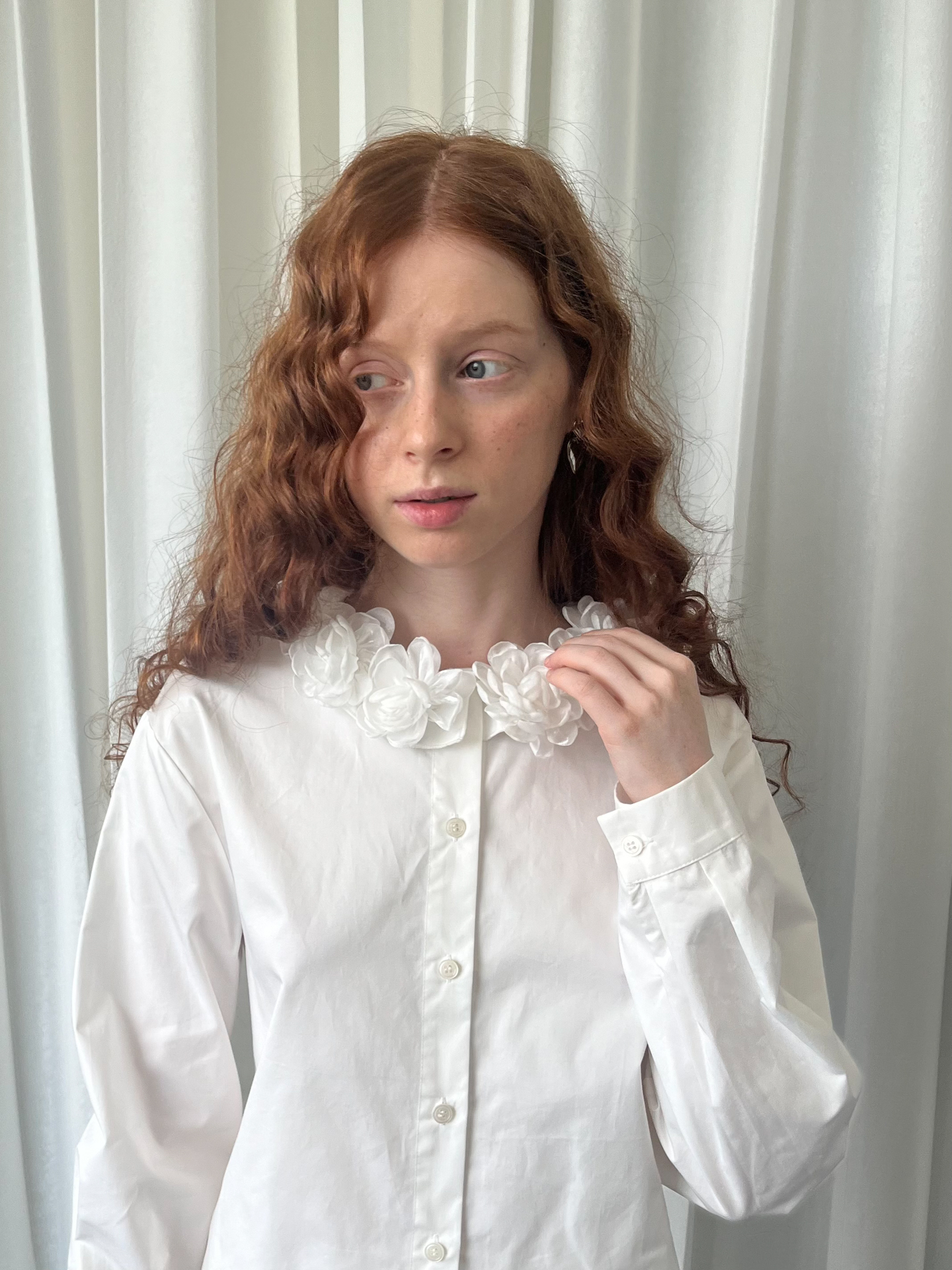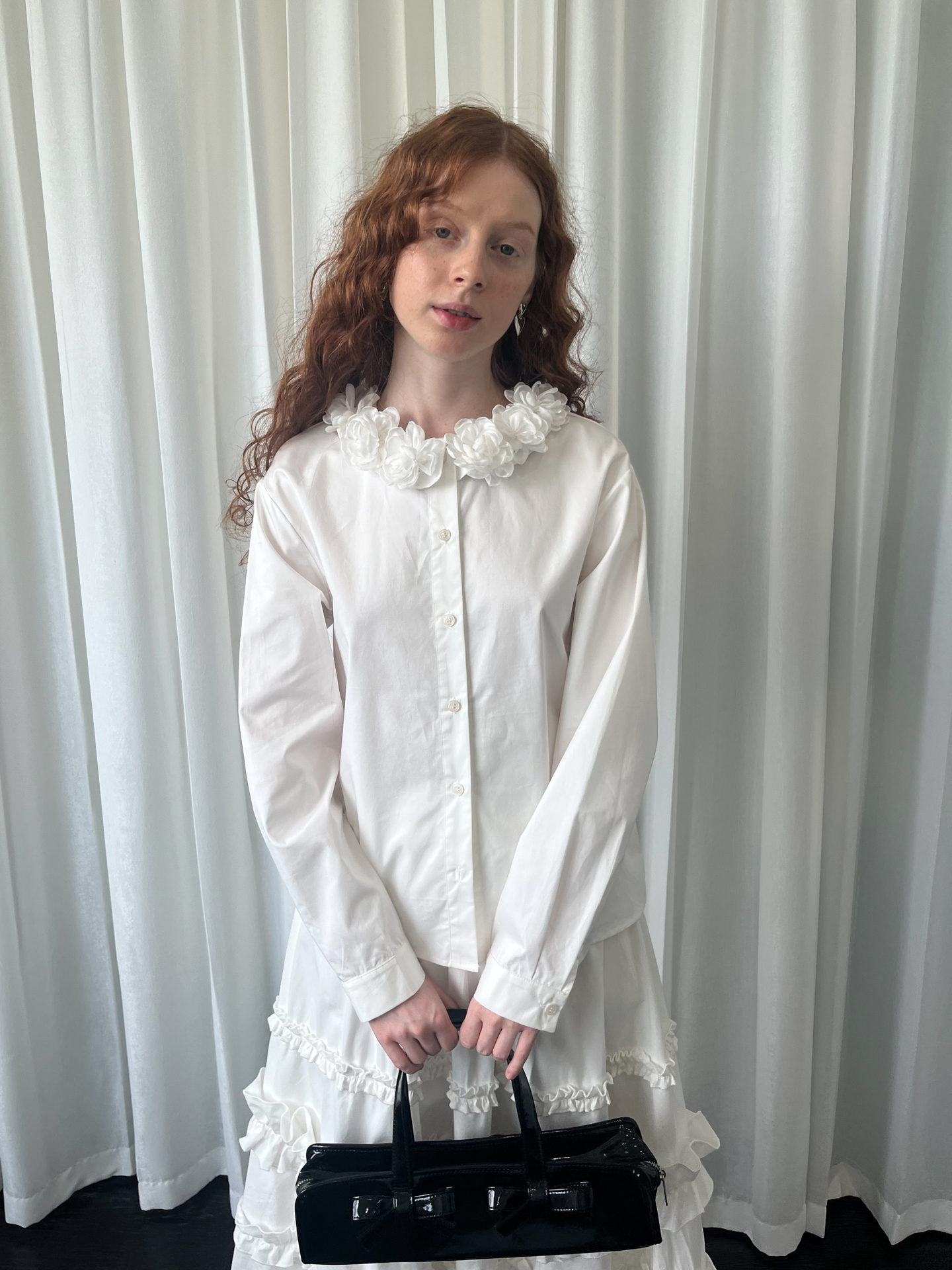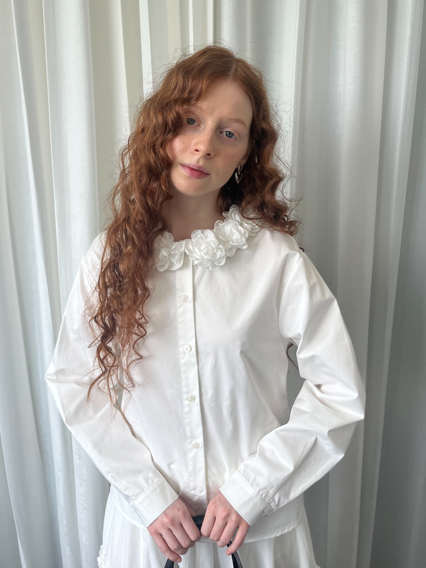 LOOSE three-dimensional flower decorative collar white long-sleeved shirtNEW