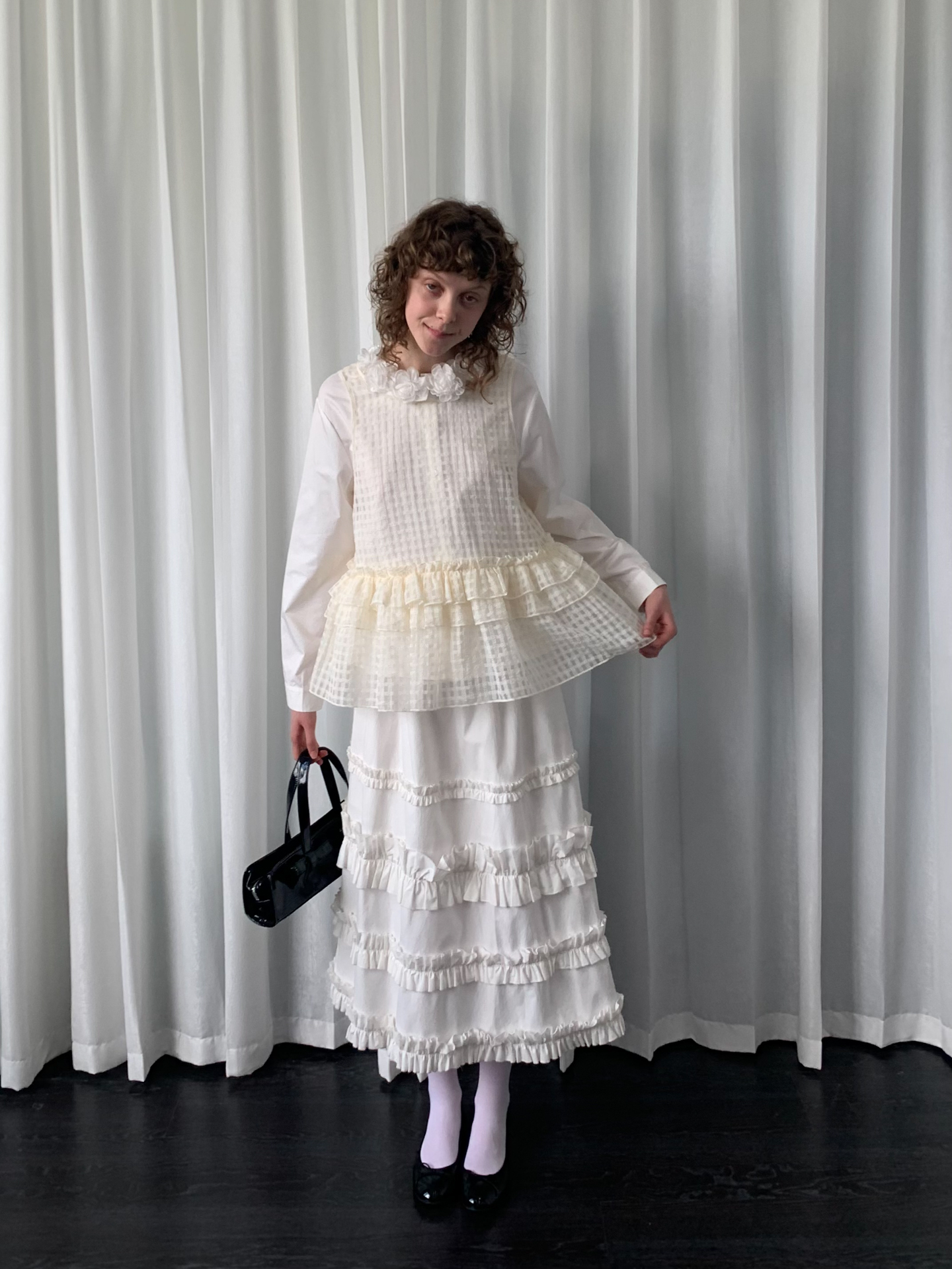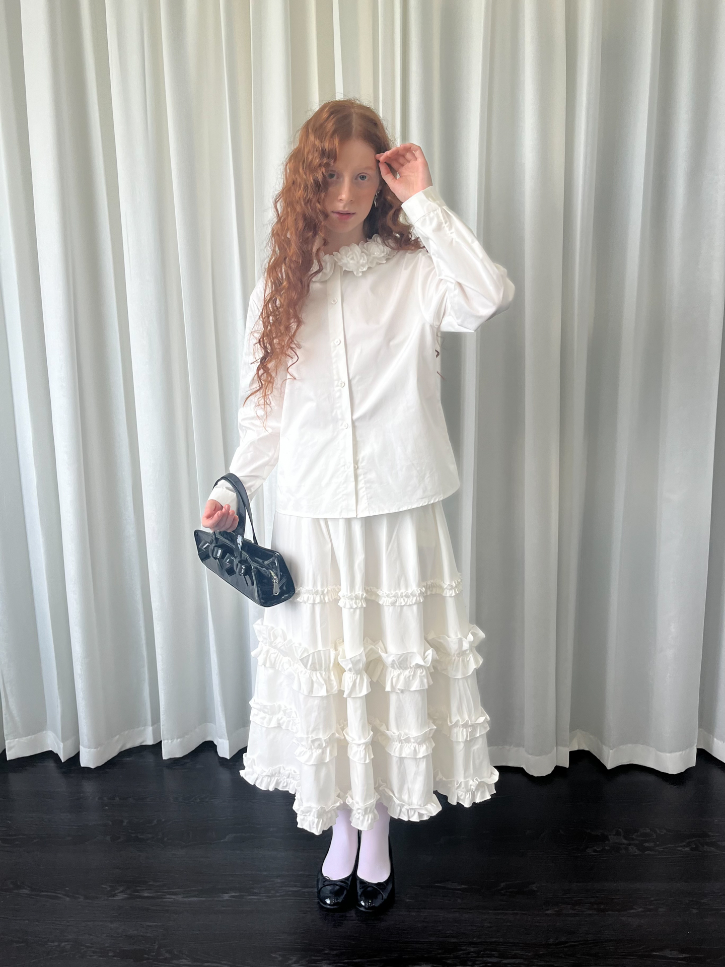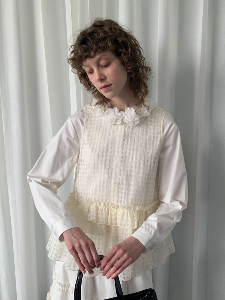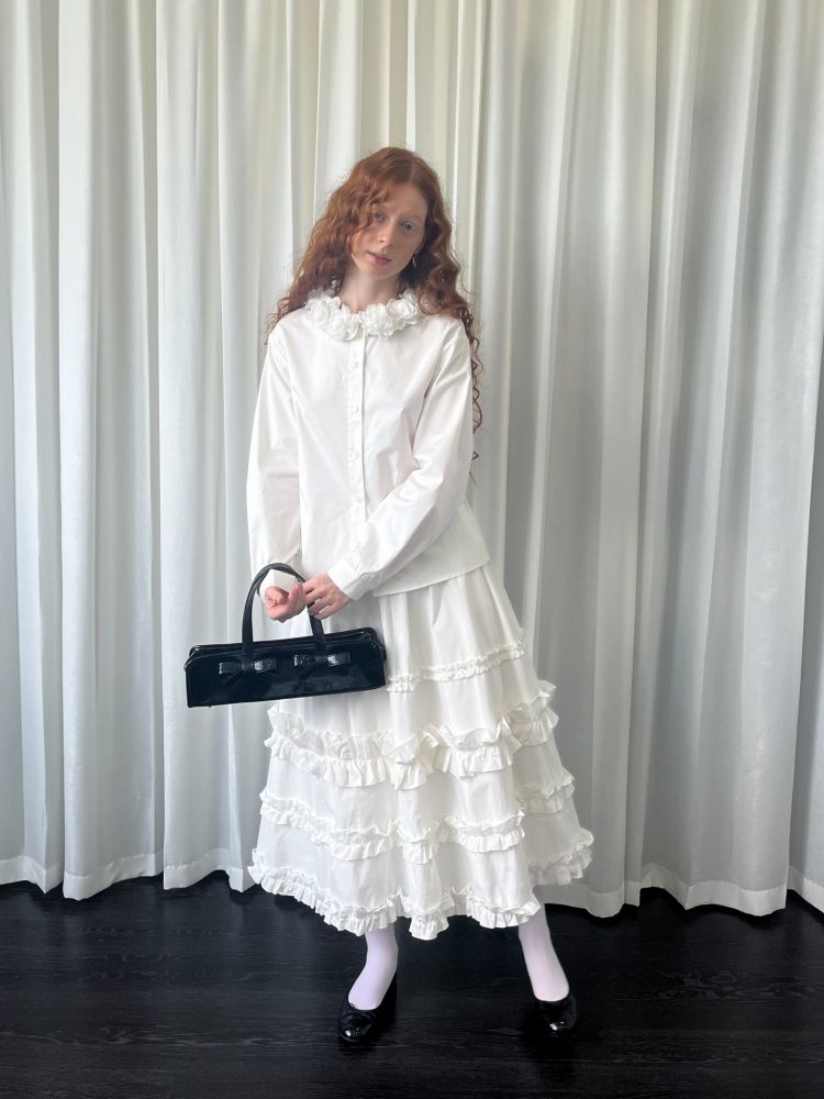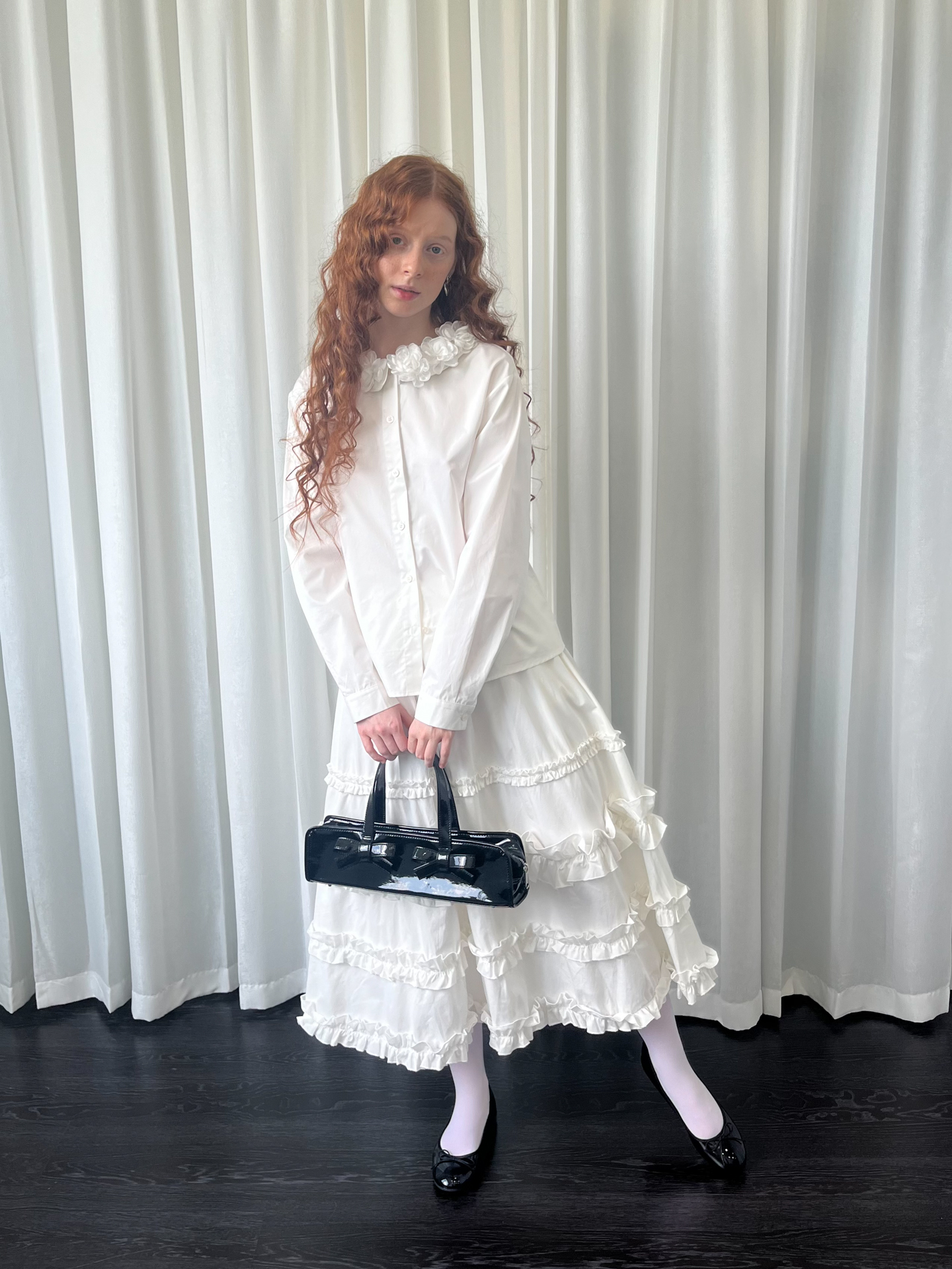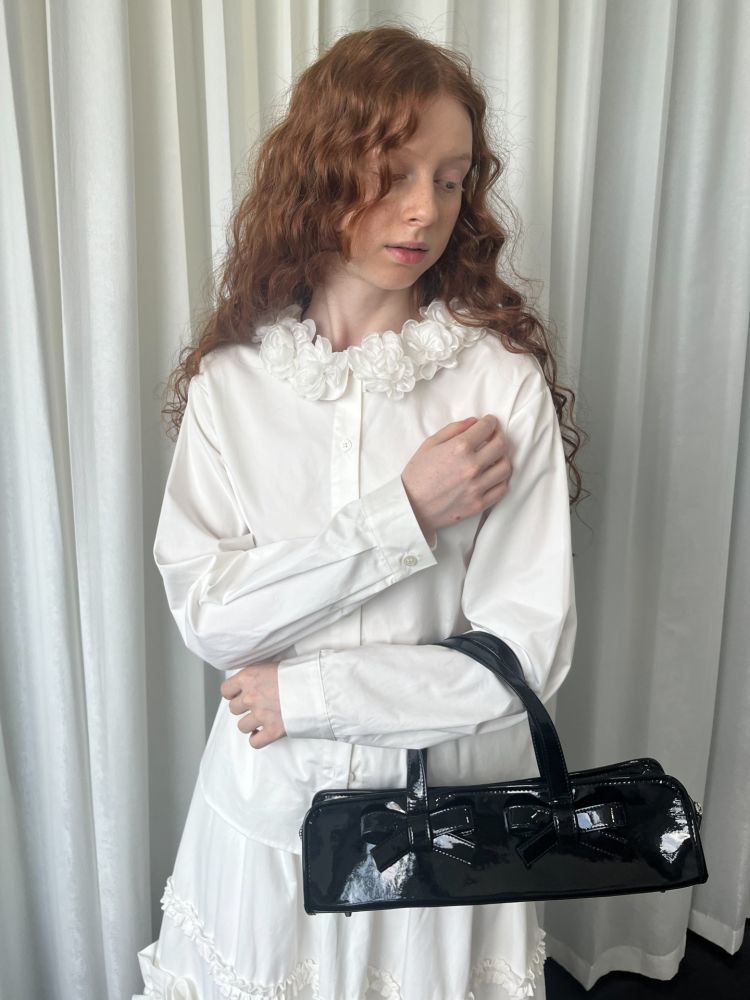 LOOSE three-dimensional flower decorative collar white long-sleeved shirtNEW