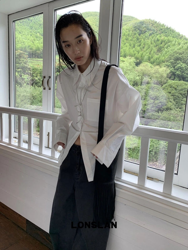 LONSLAN Round Metal Frame Long Chain Silver Necklace