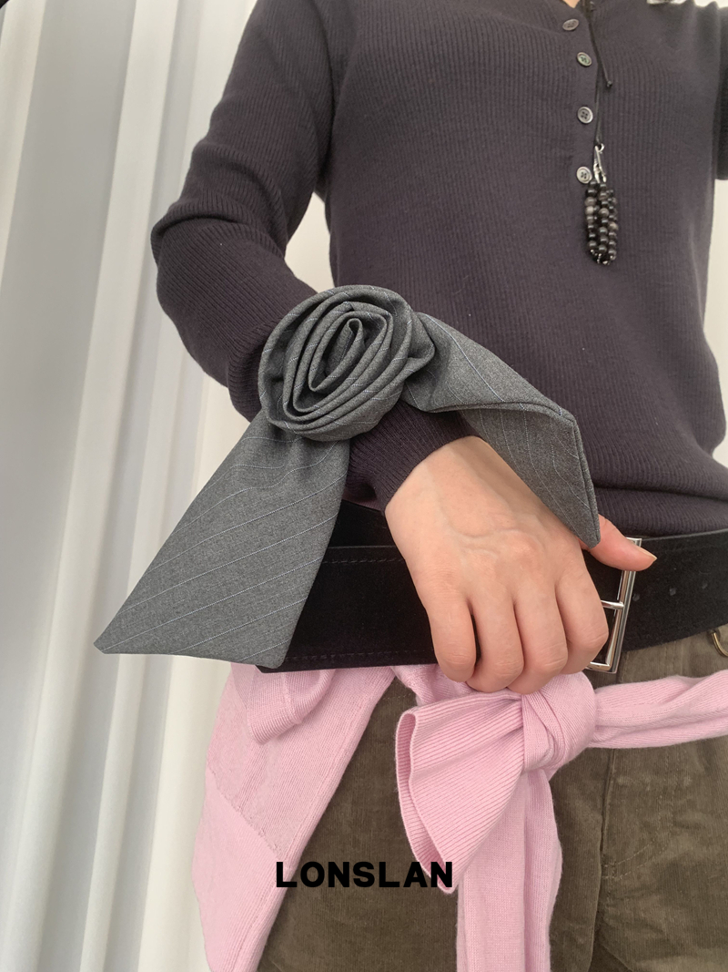 LONSLAN Retro Flower Gray Striped Ribbon Hair Accessories