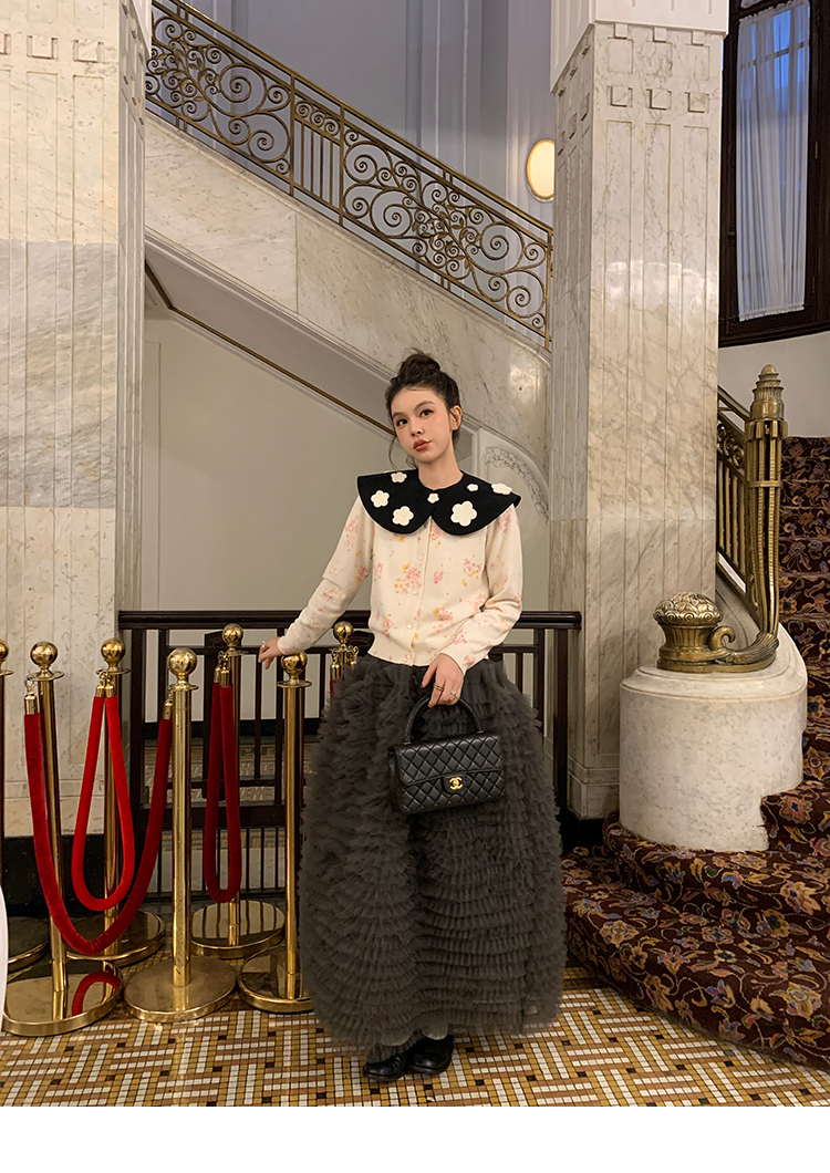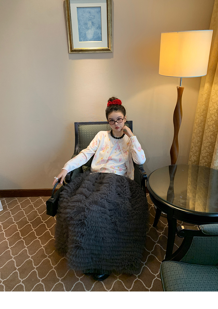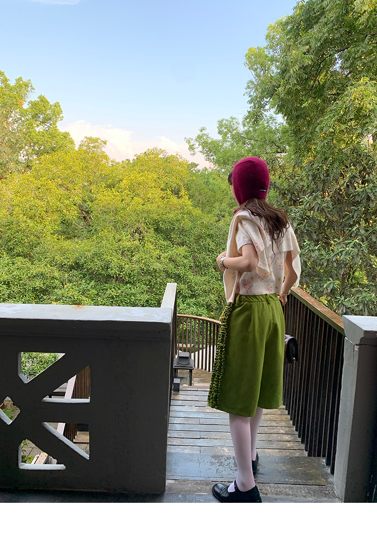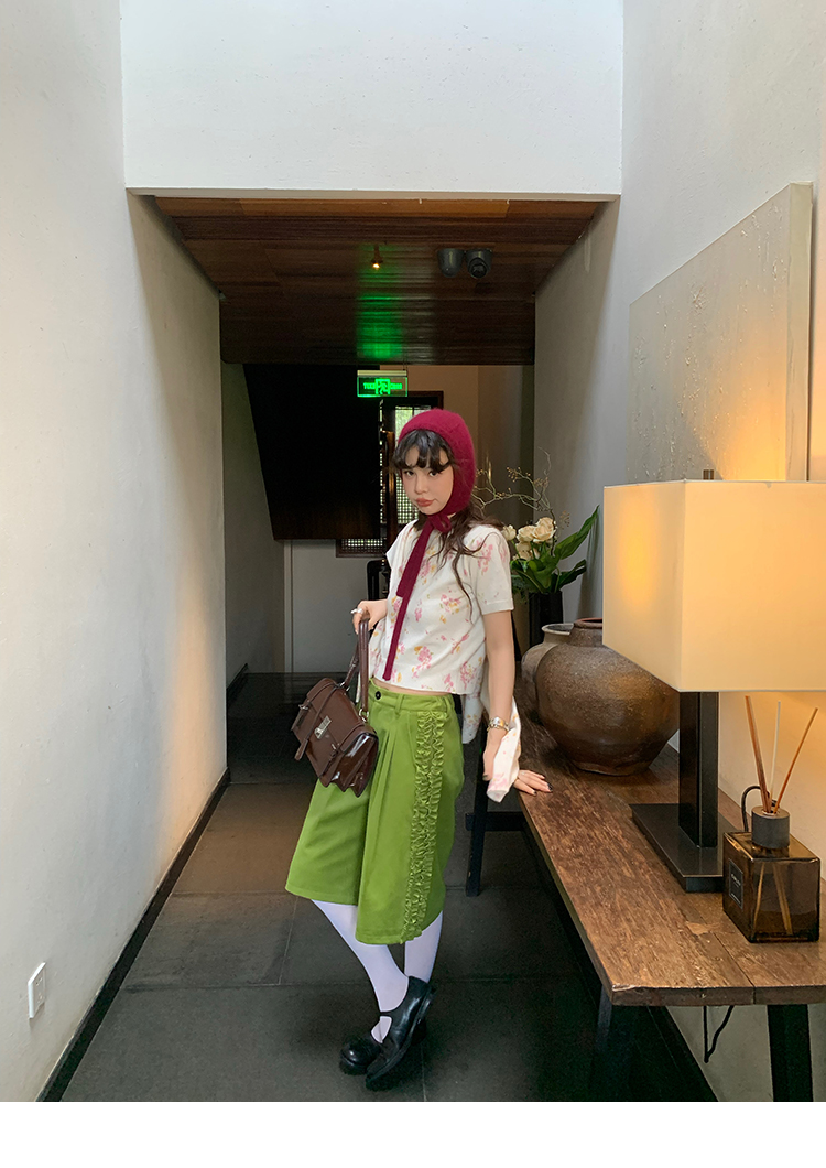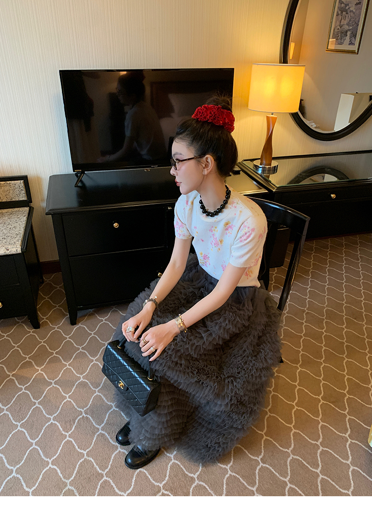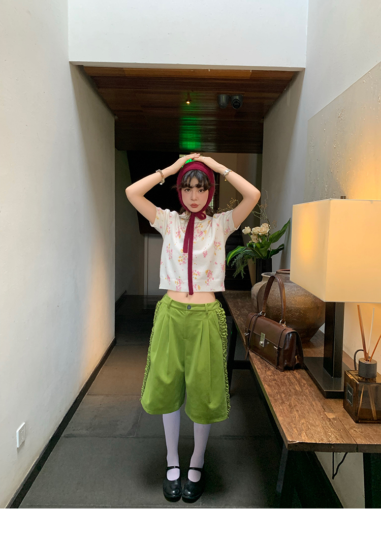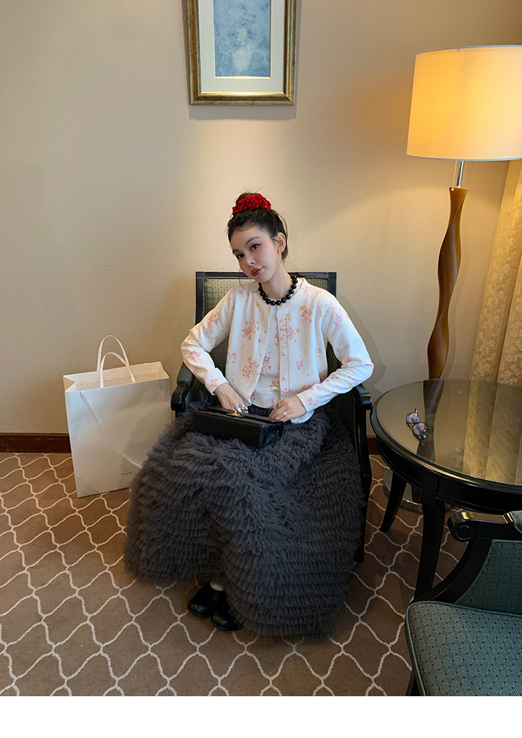 LRIB pink floral wool round neck short-sleeved knitted cardigan two-piece set