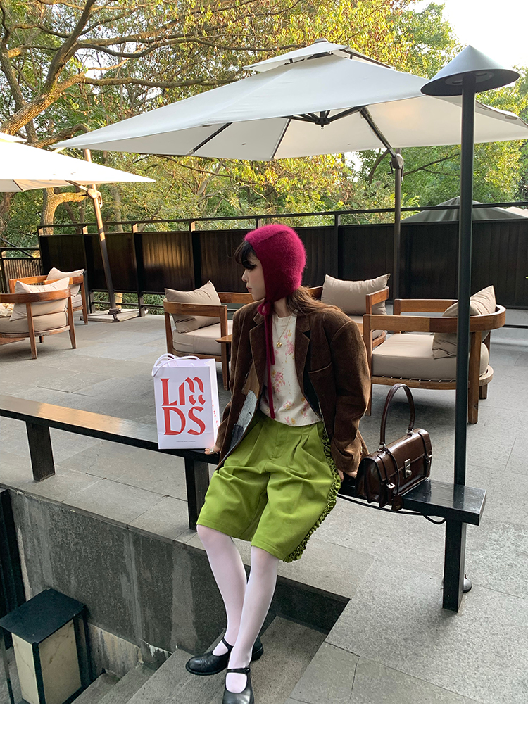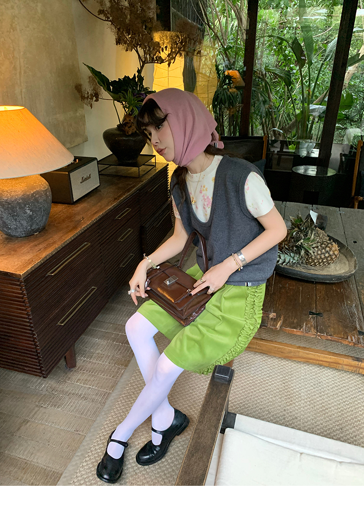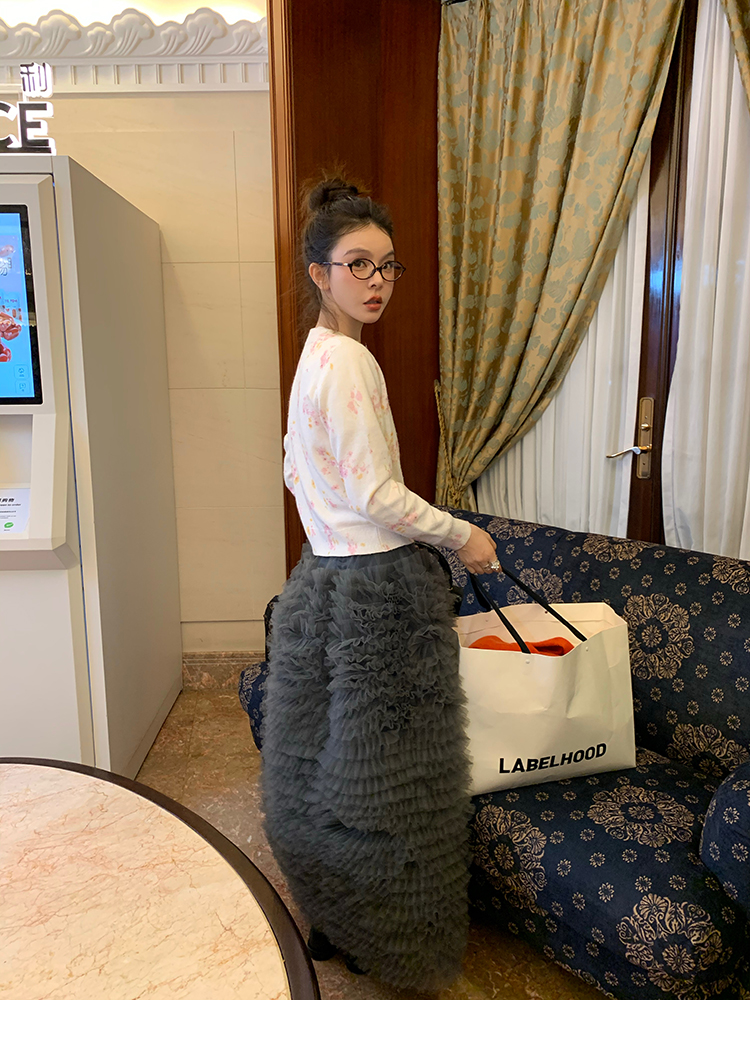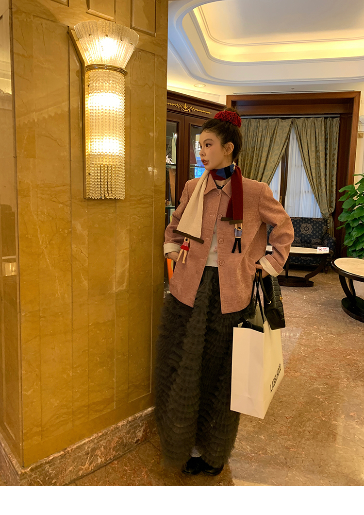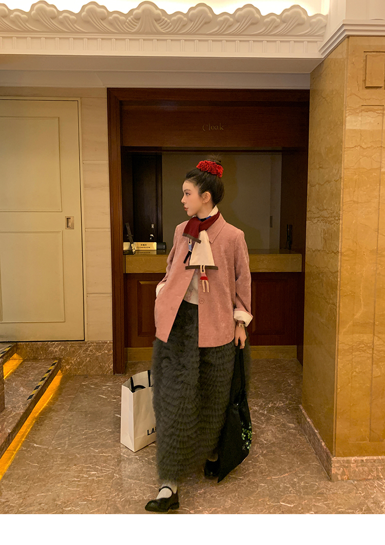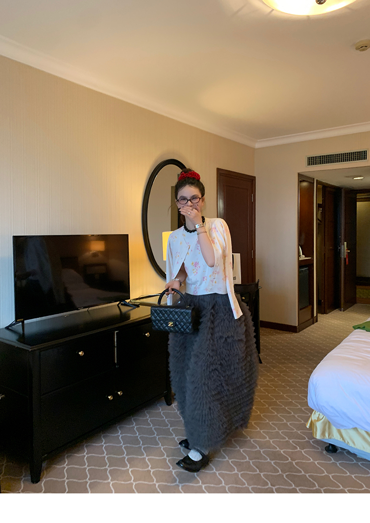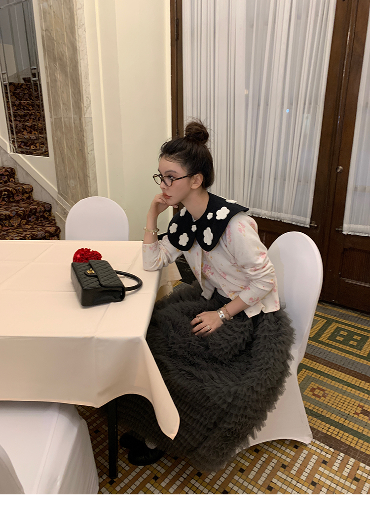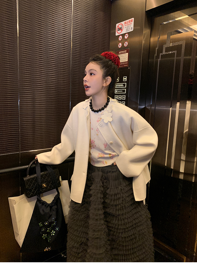 LRIB pink floral wool round neck short-sleeved knitted cardigan two-piece set