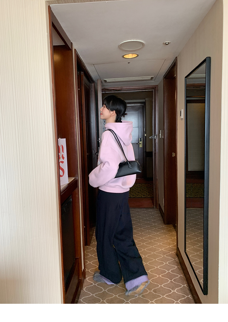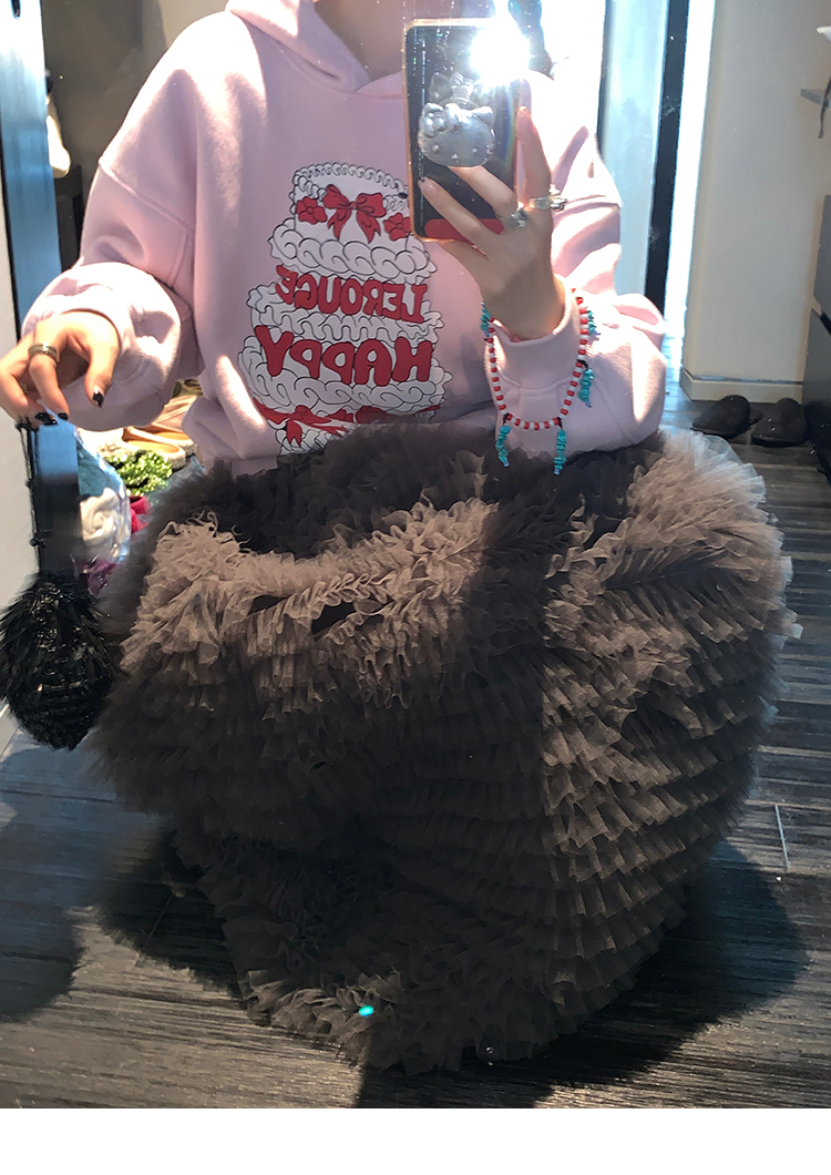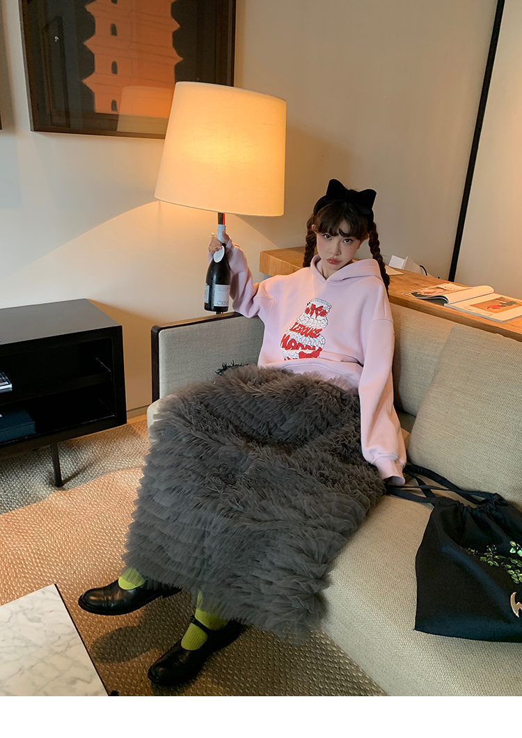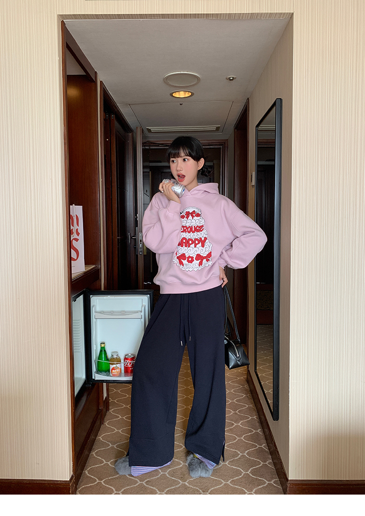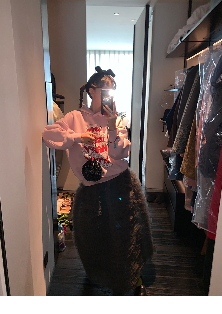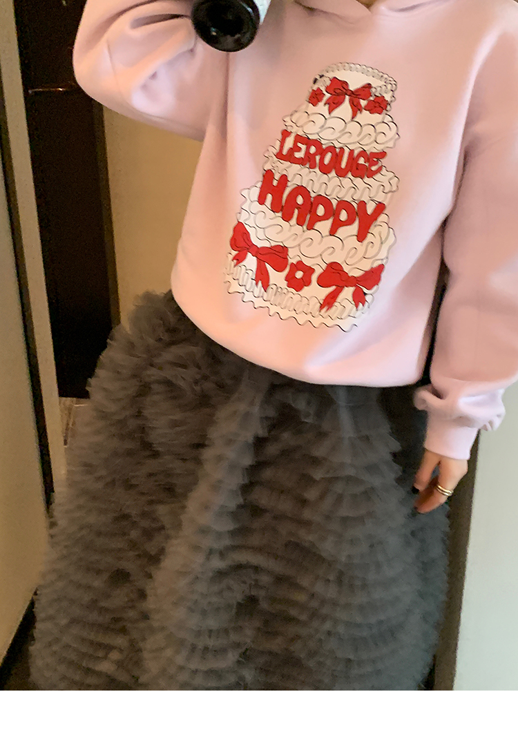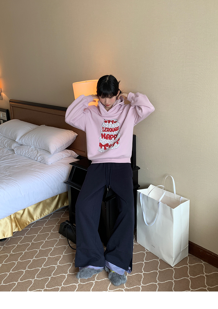 LRIB taro powder birthday cake print loose plush hooded sweatshirt