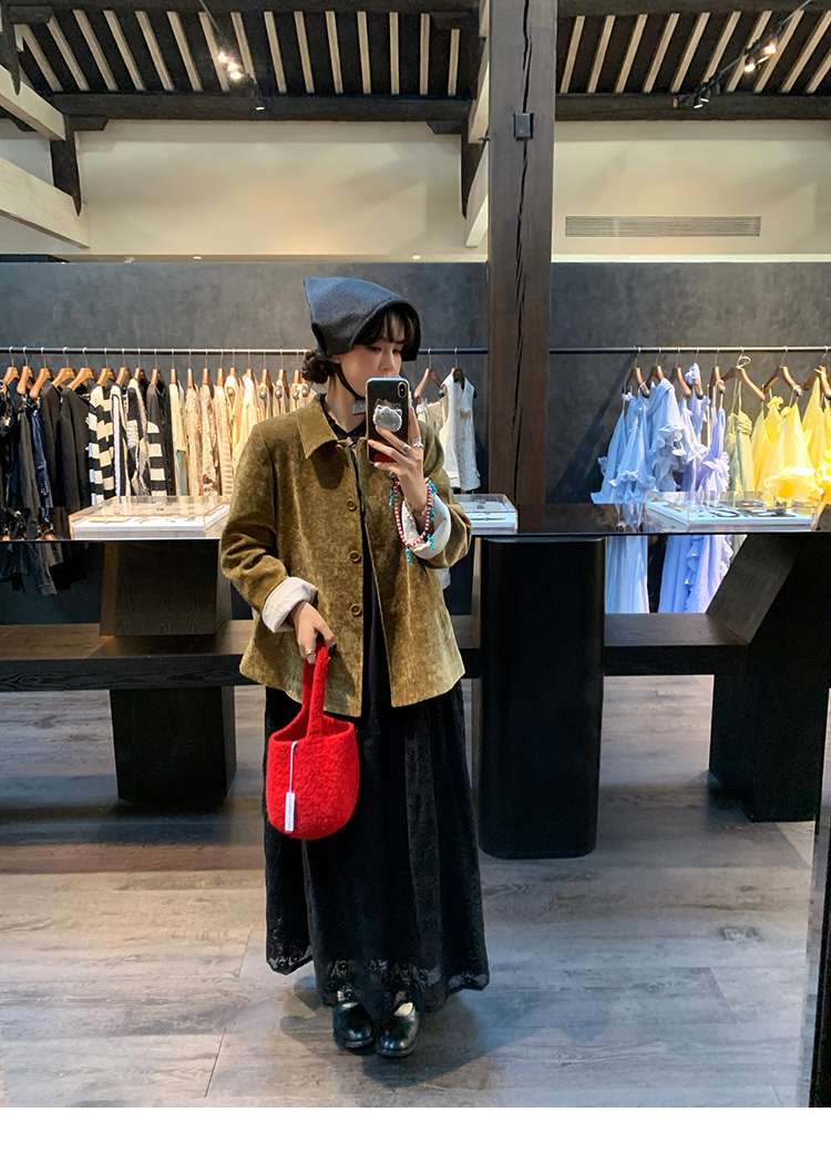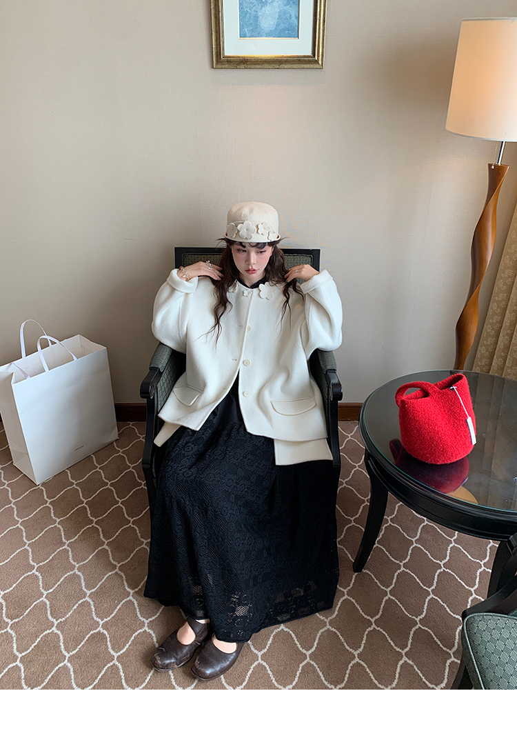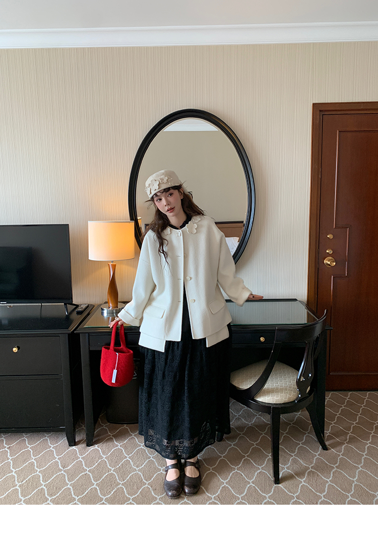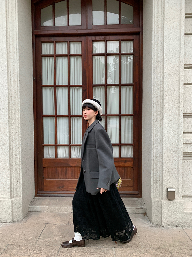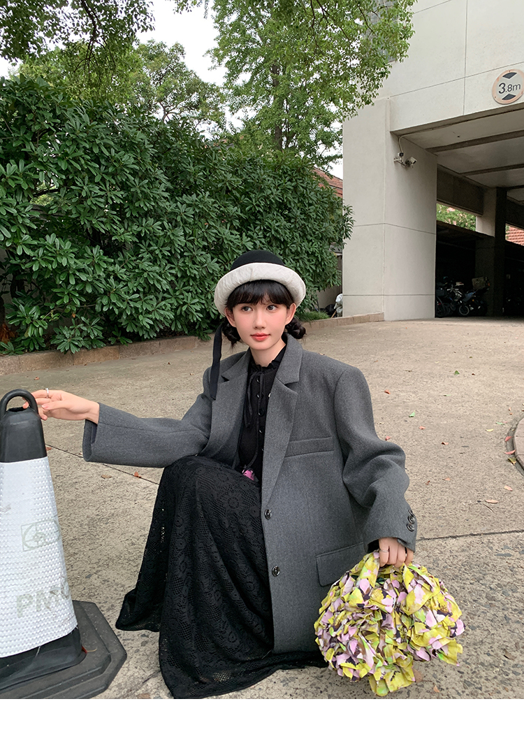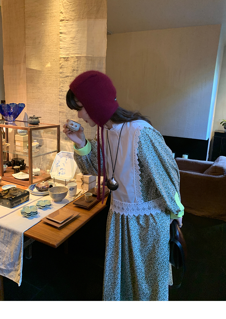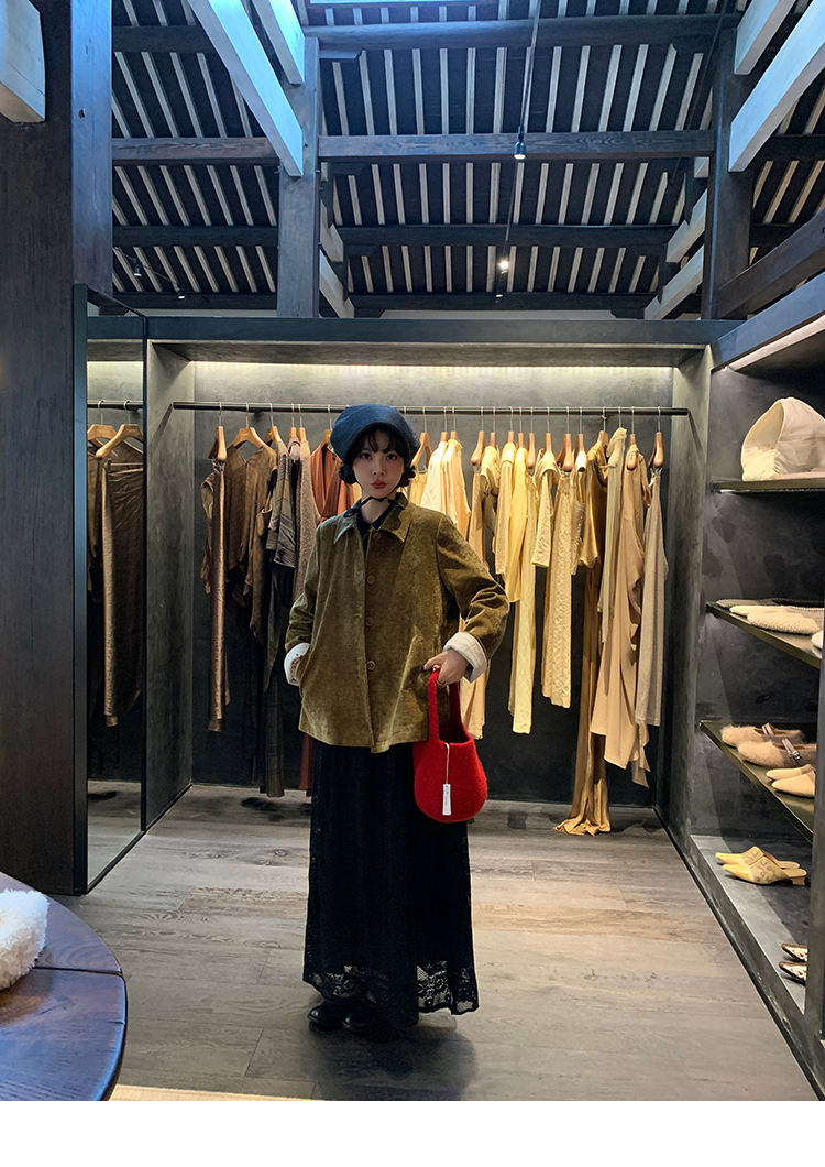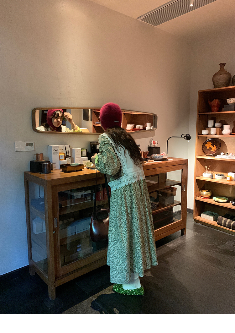 LRIB Literary Dark Splicing Dress Stand Collar Lace Vest Set