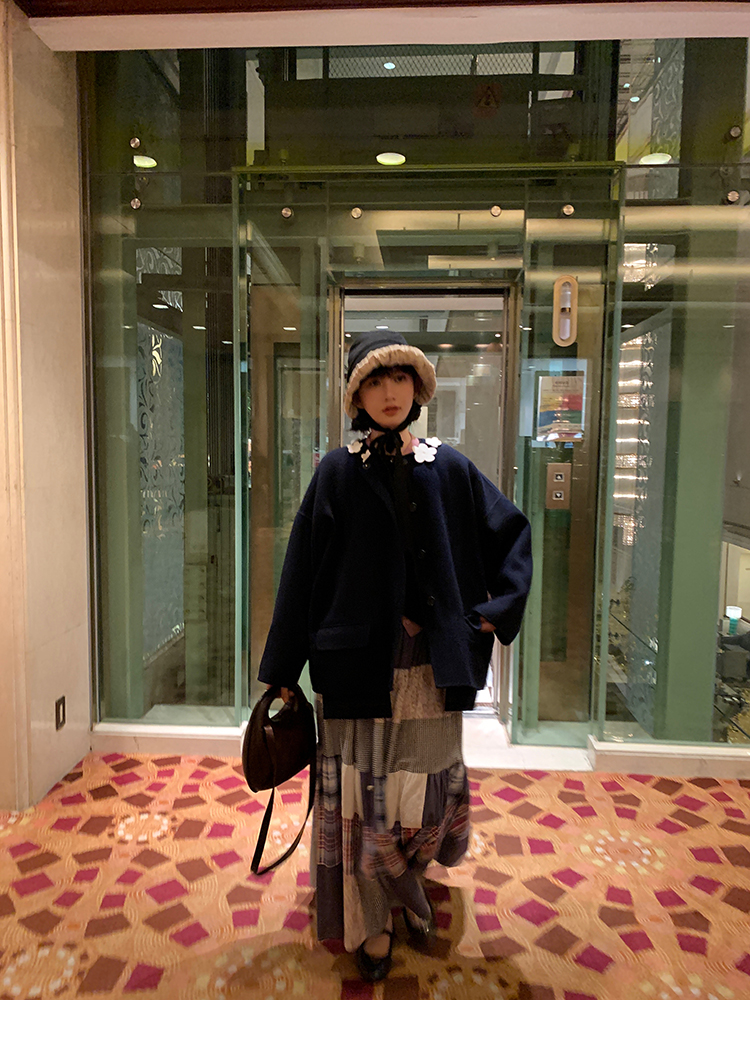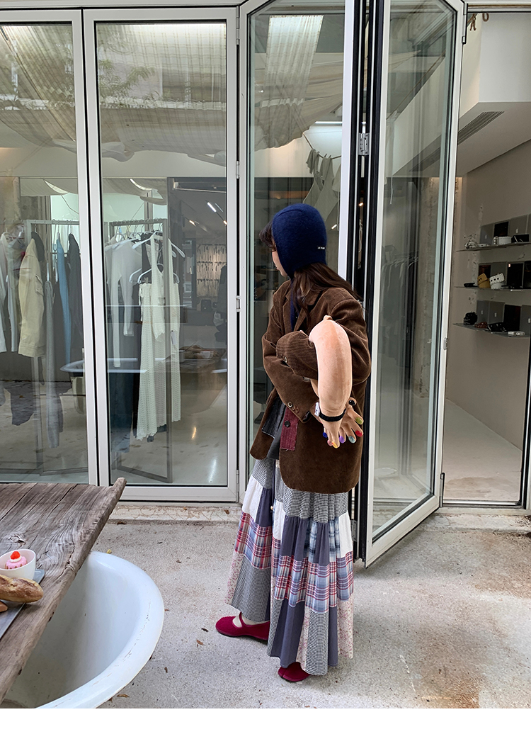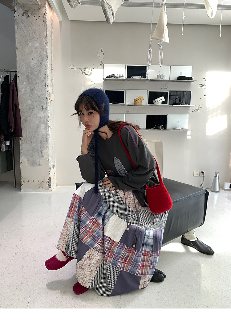 LRIB vintage retro patchwork stitching layered drawstring skirt