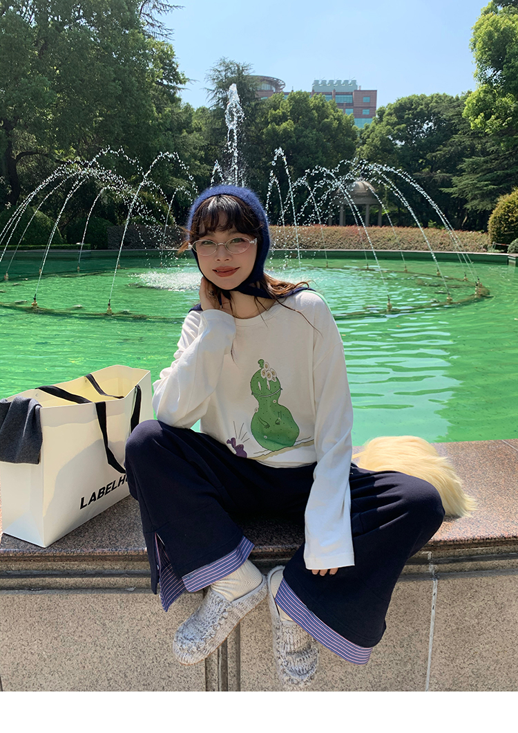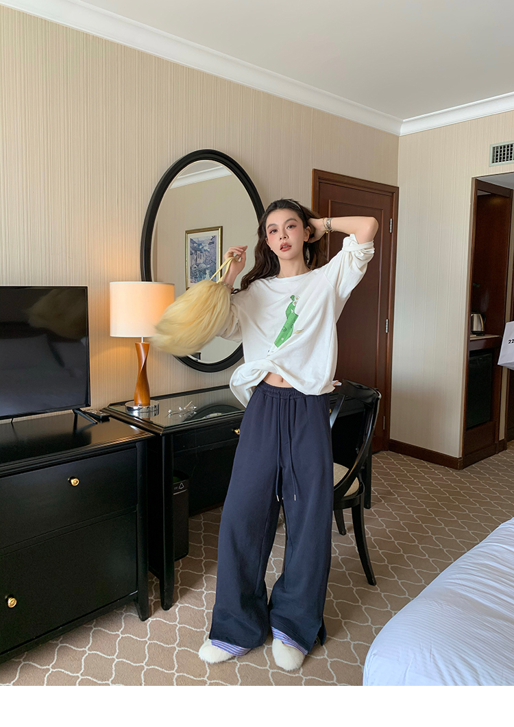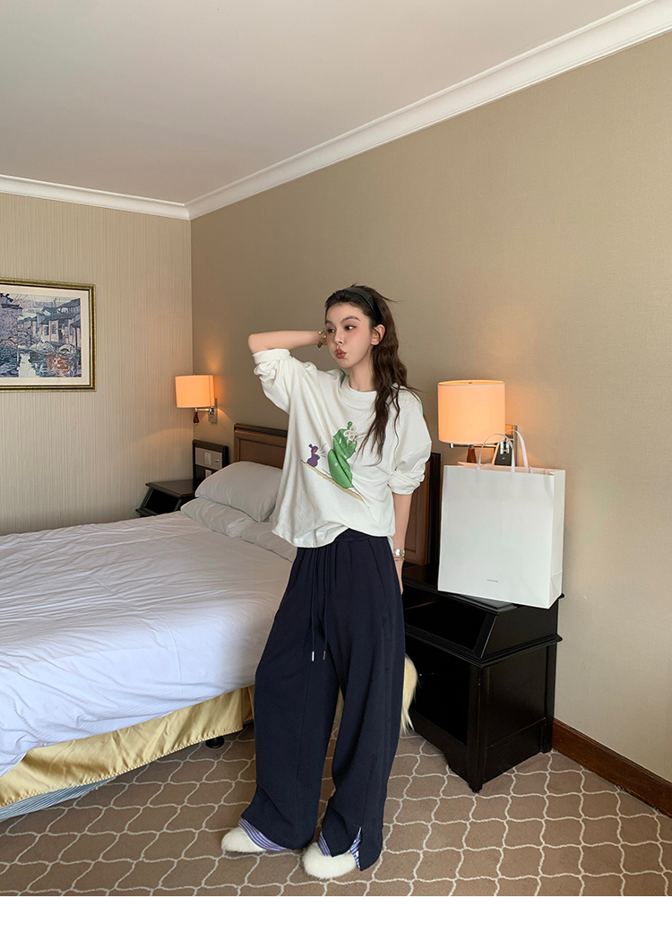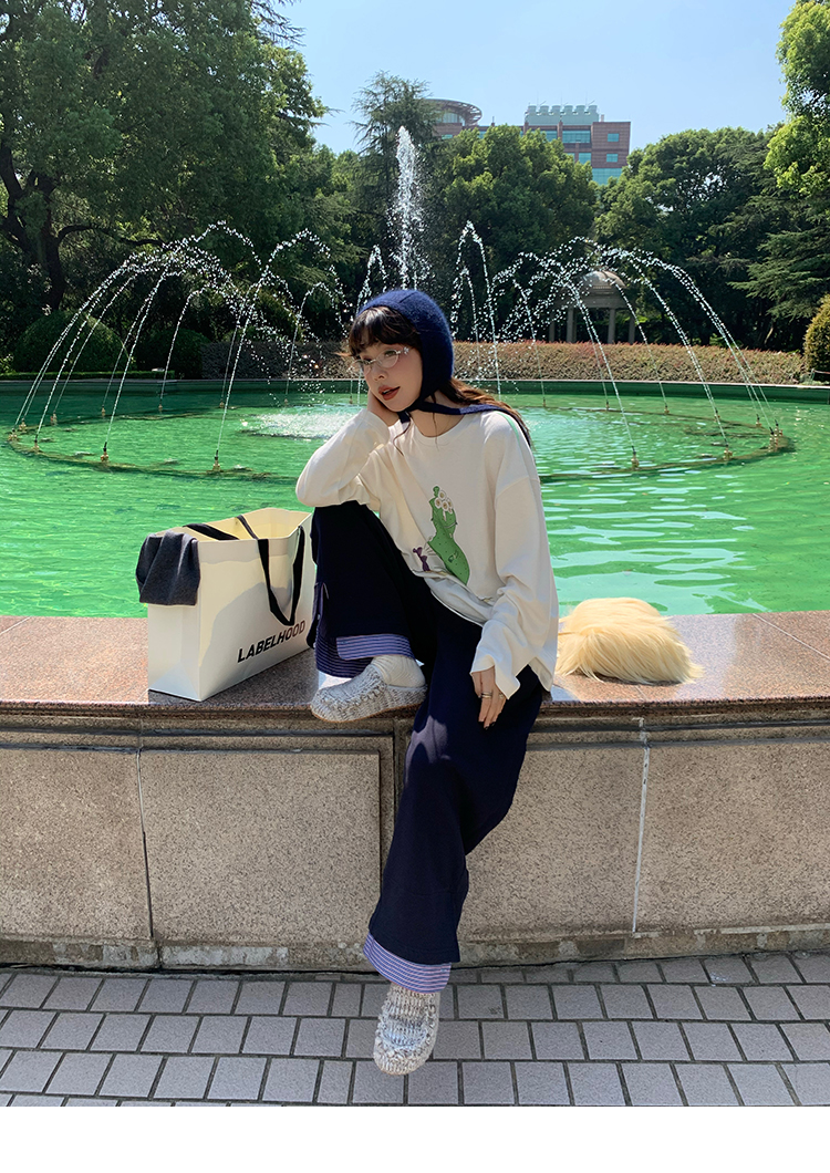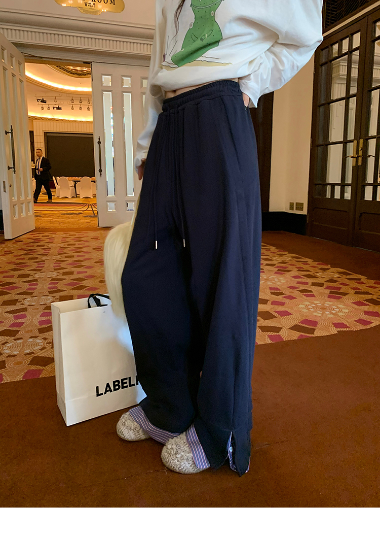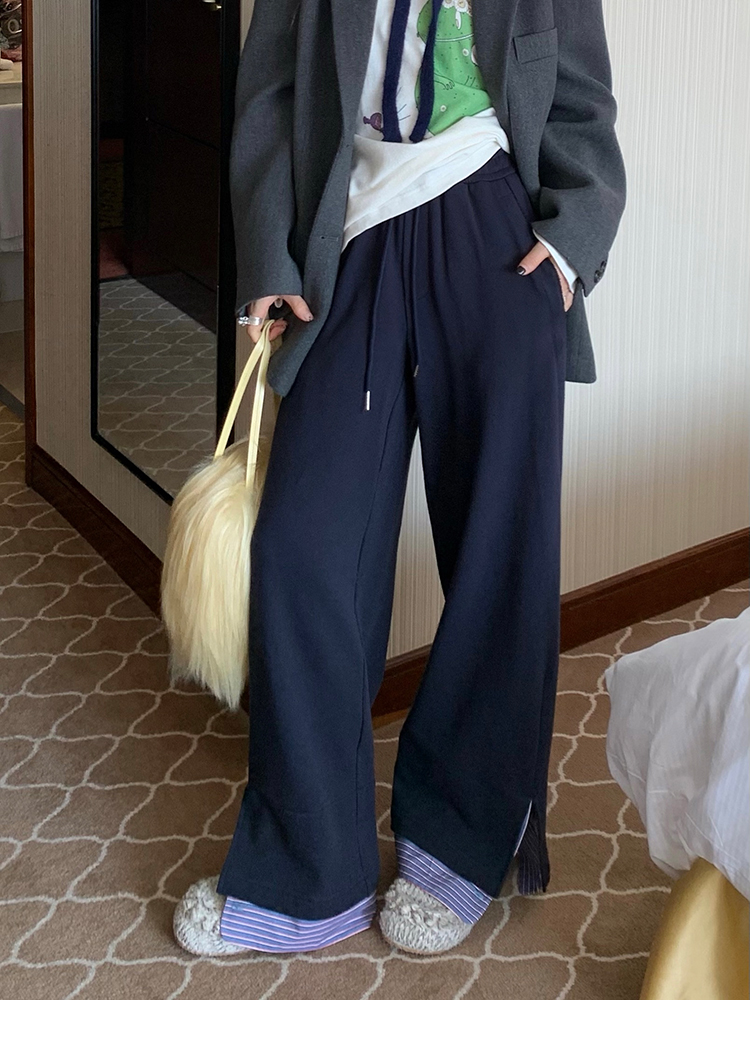 LRIB light blue striped fake two-piece elastic waist casual pants