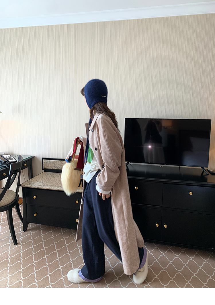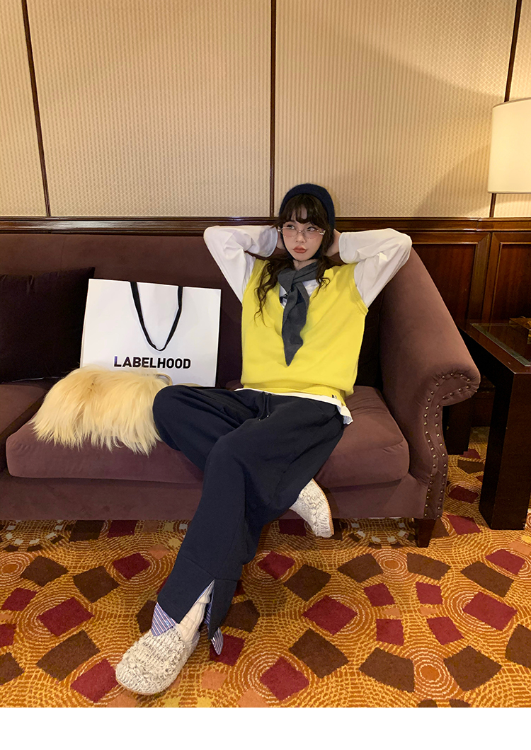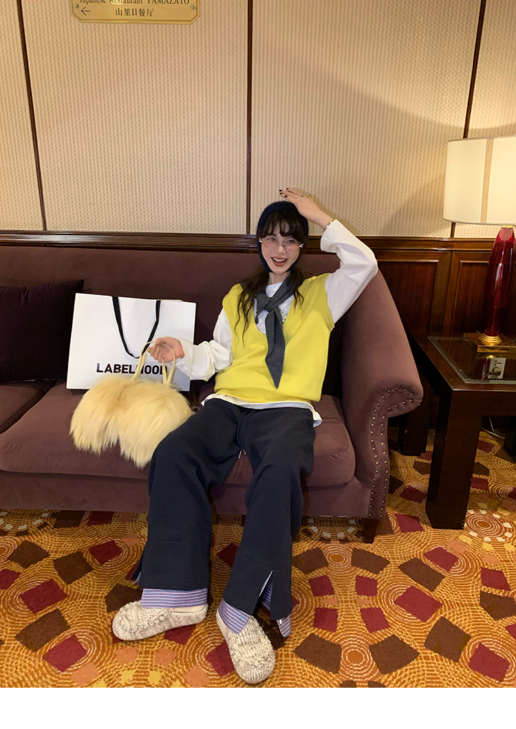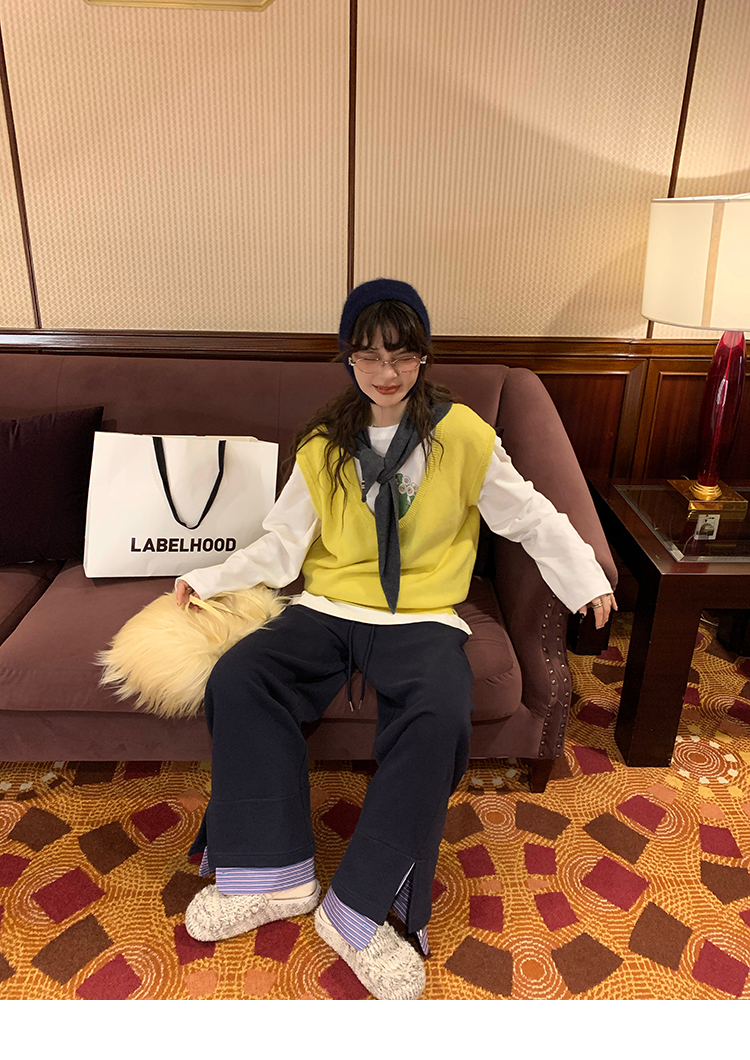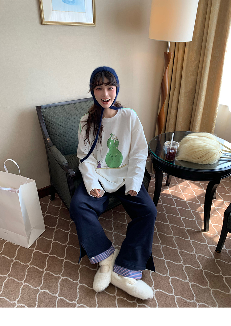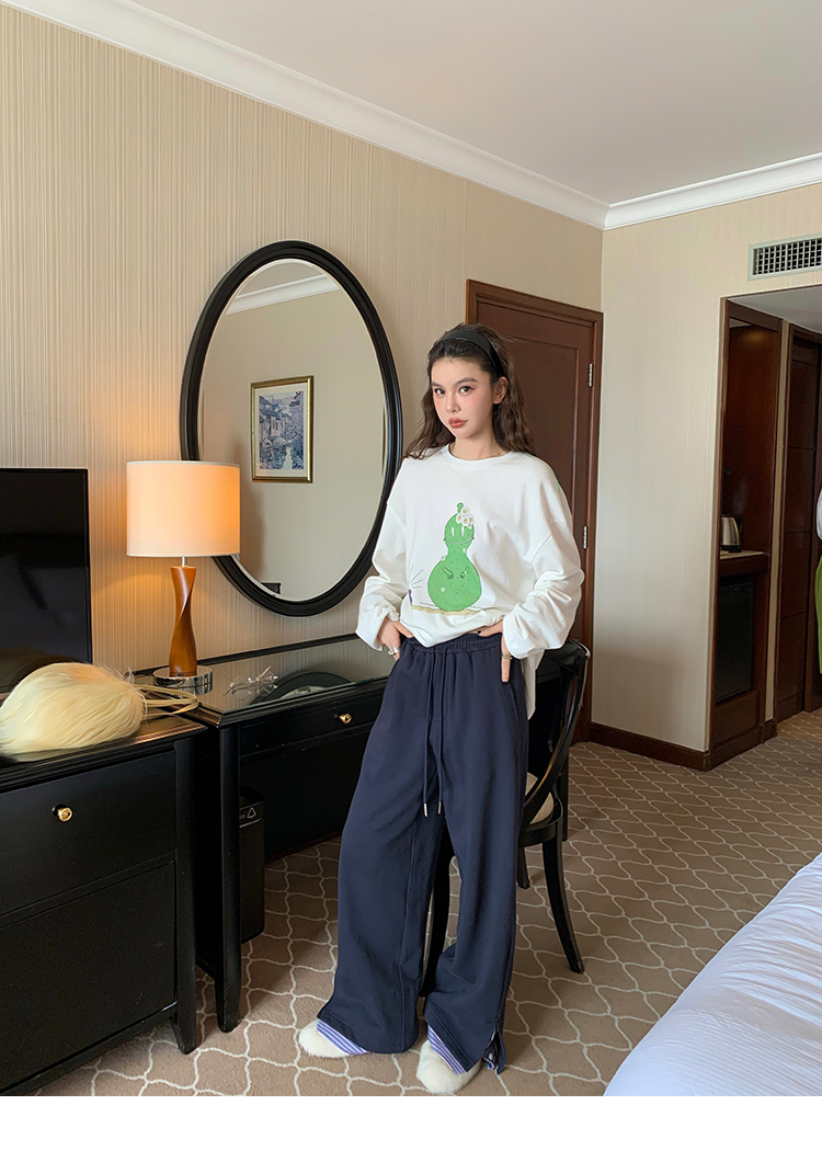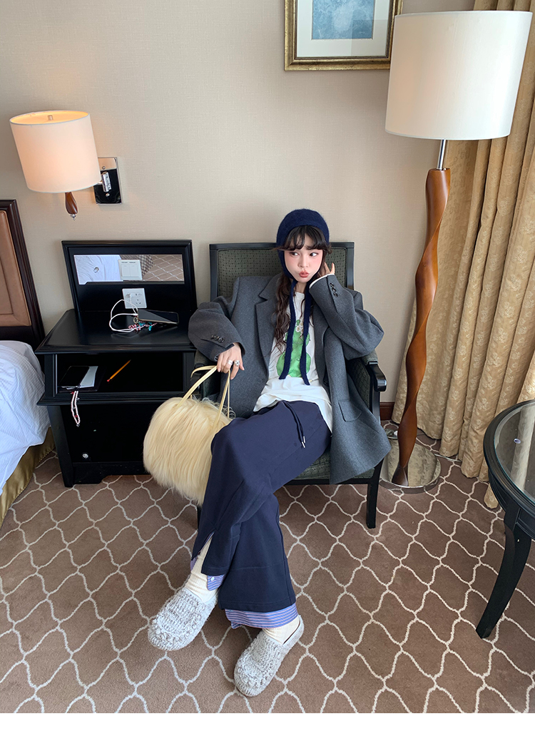 LRIB light blue striped fake two-piece elastic waist casual pants