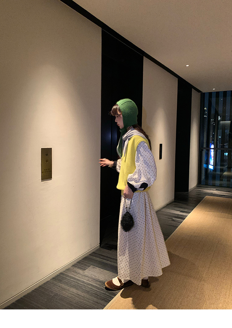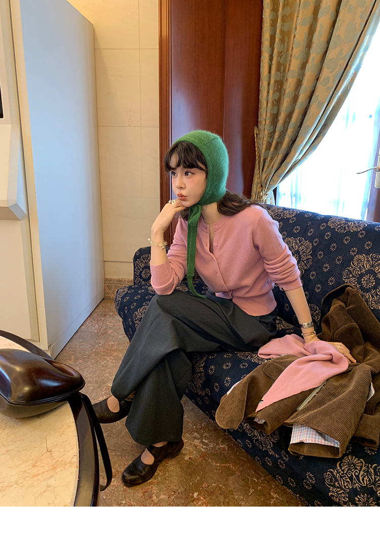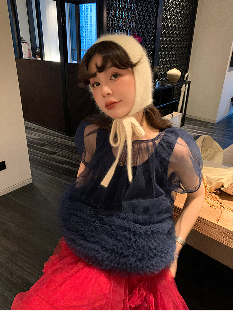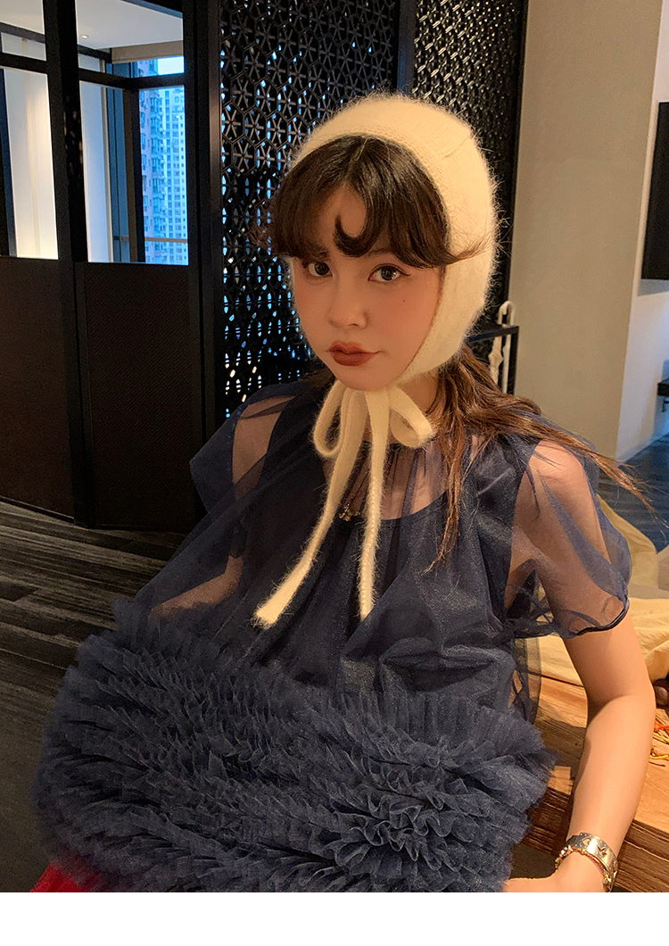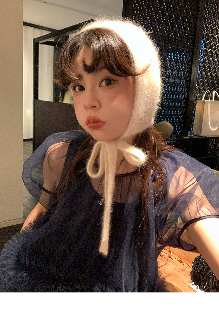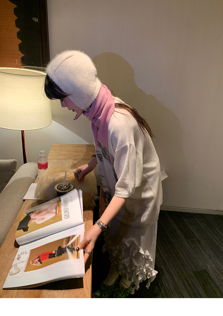 LRIB Angora rabbit fur multi-color label knitted tie head cap