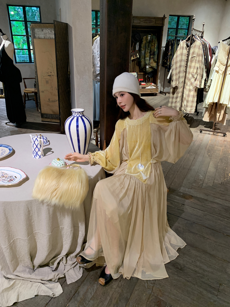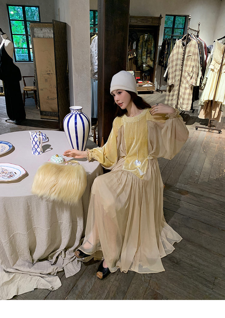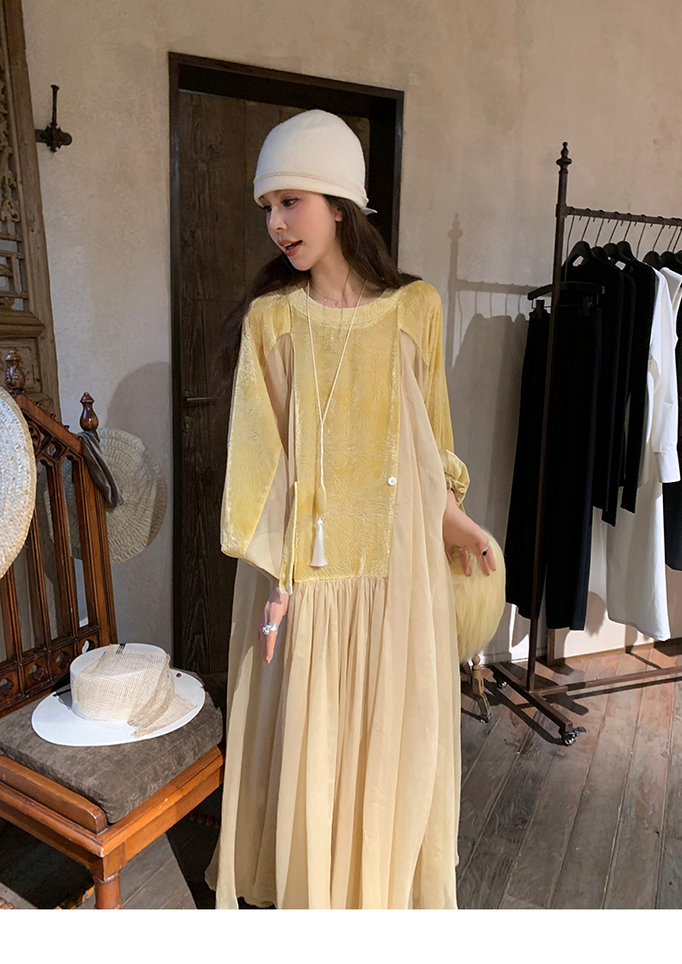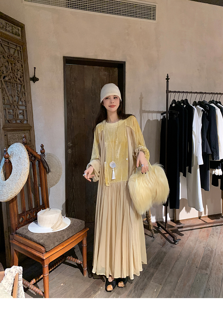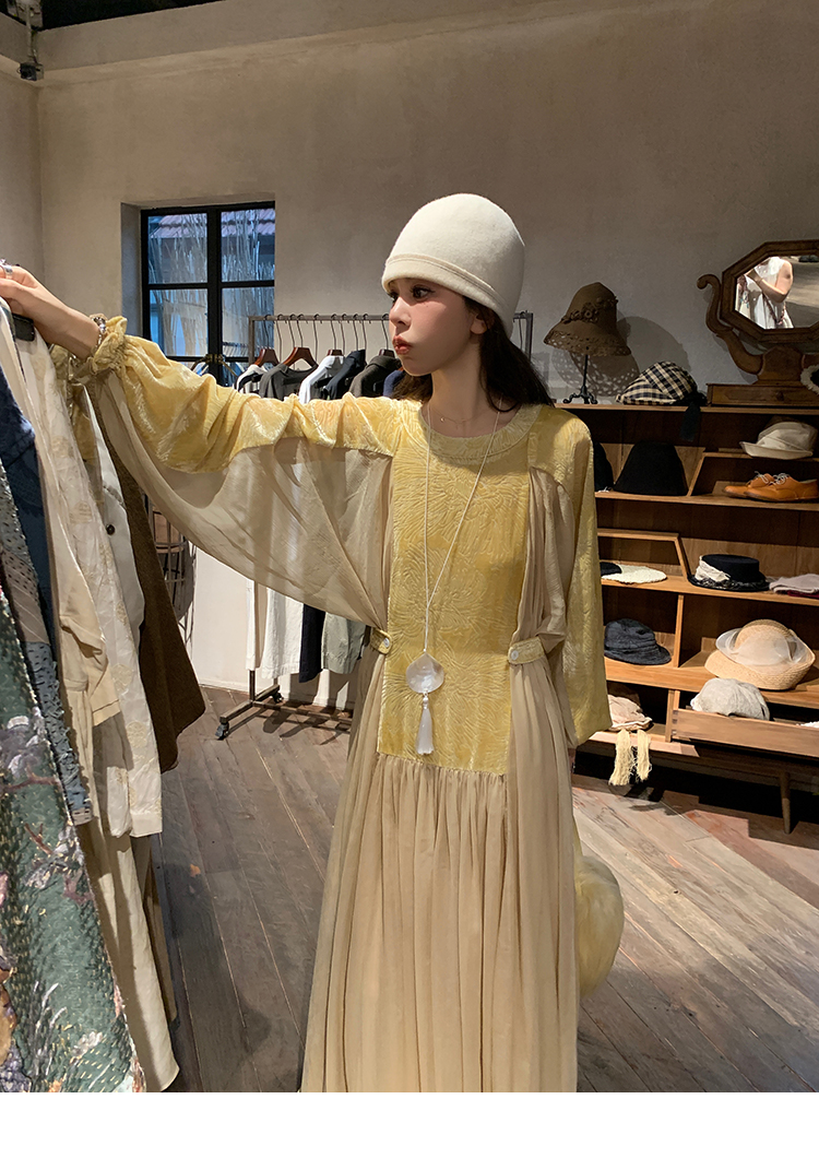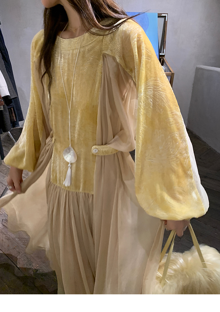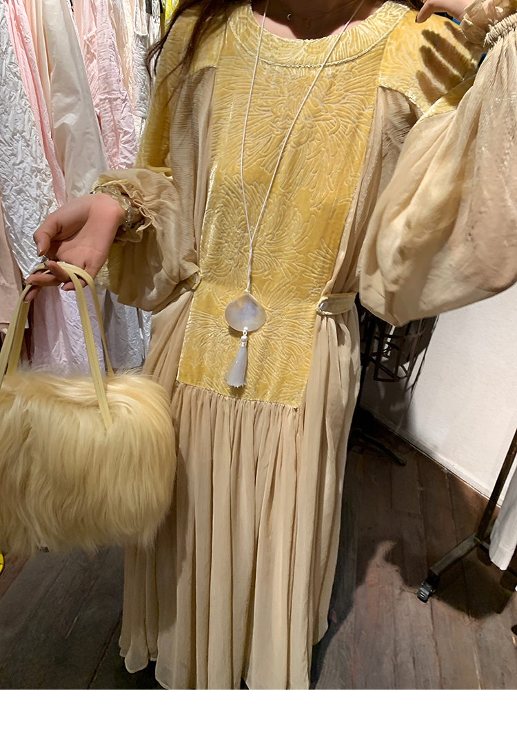LRIB autumn rhyme amber gentle velvet patchwork dress