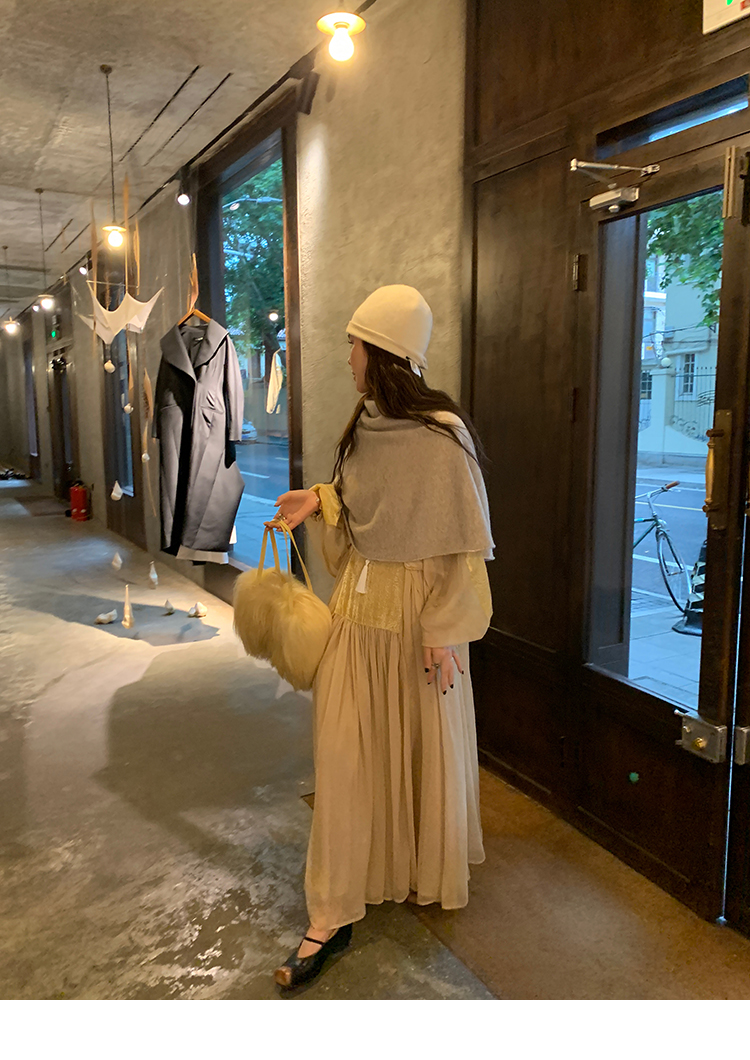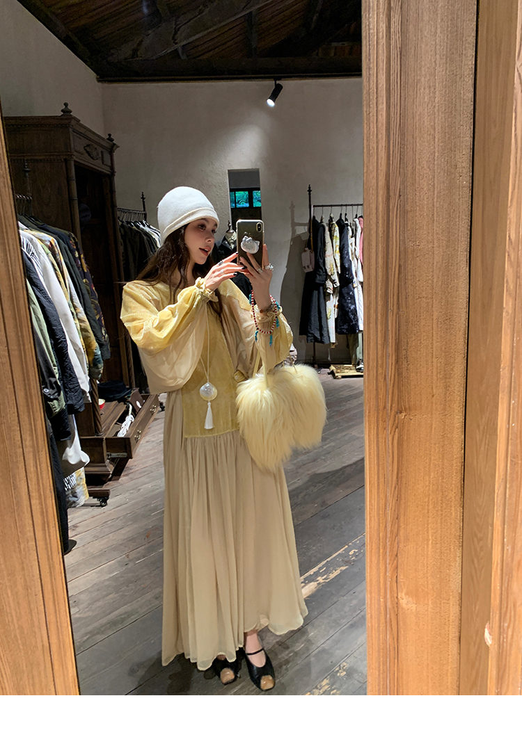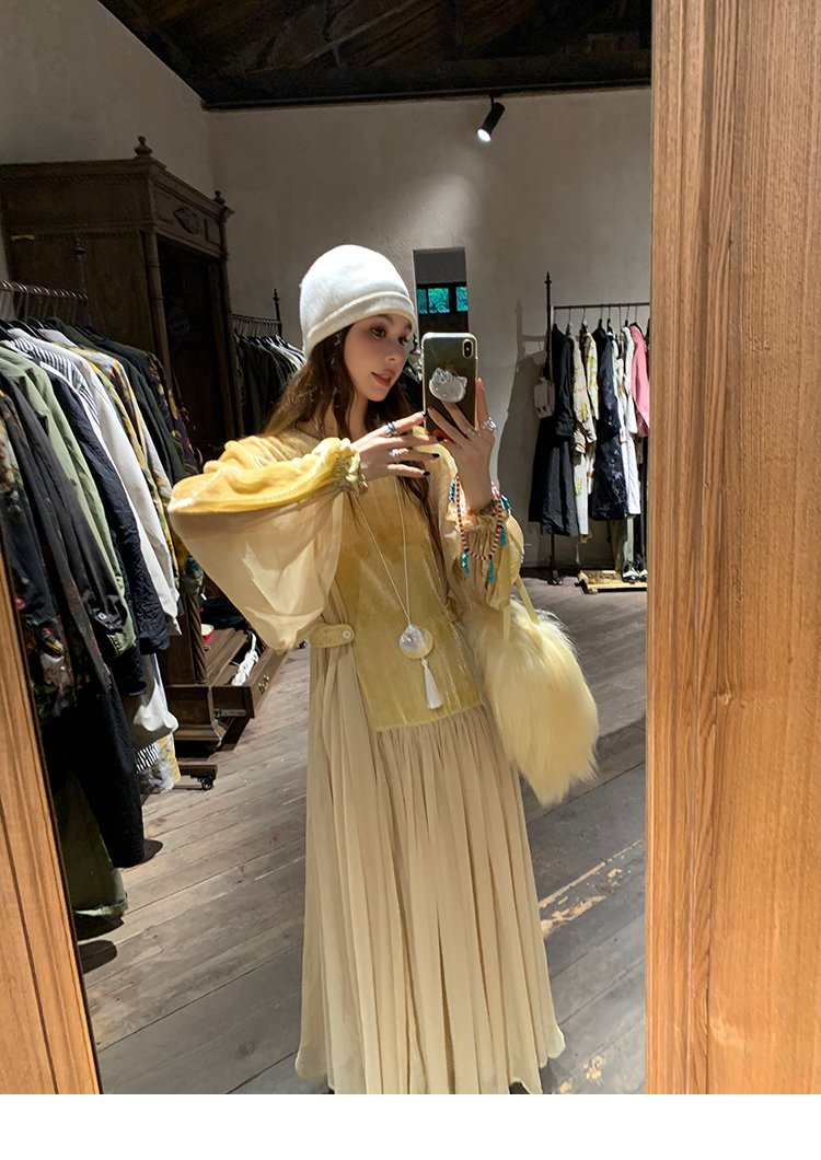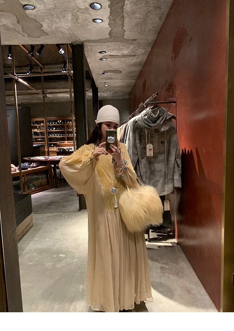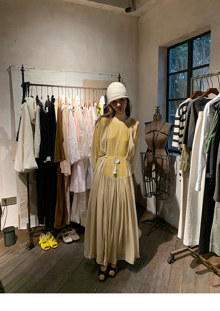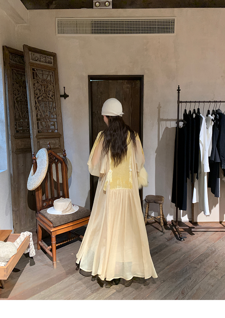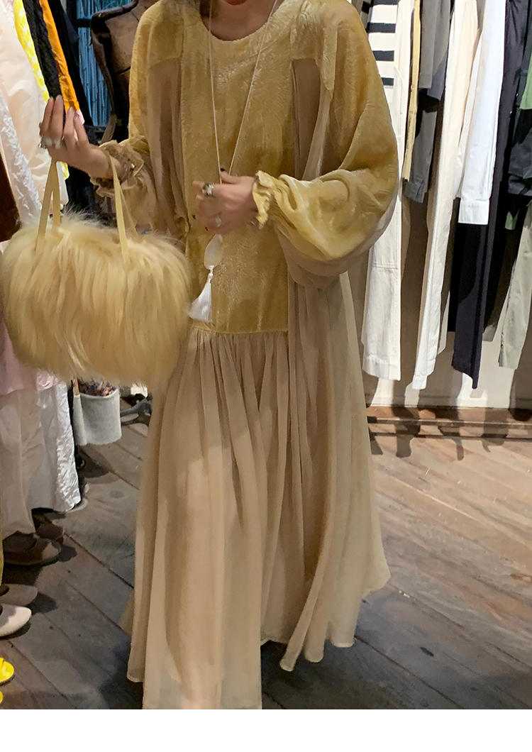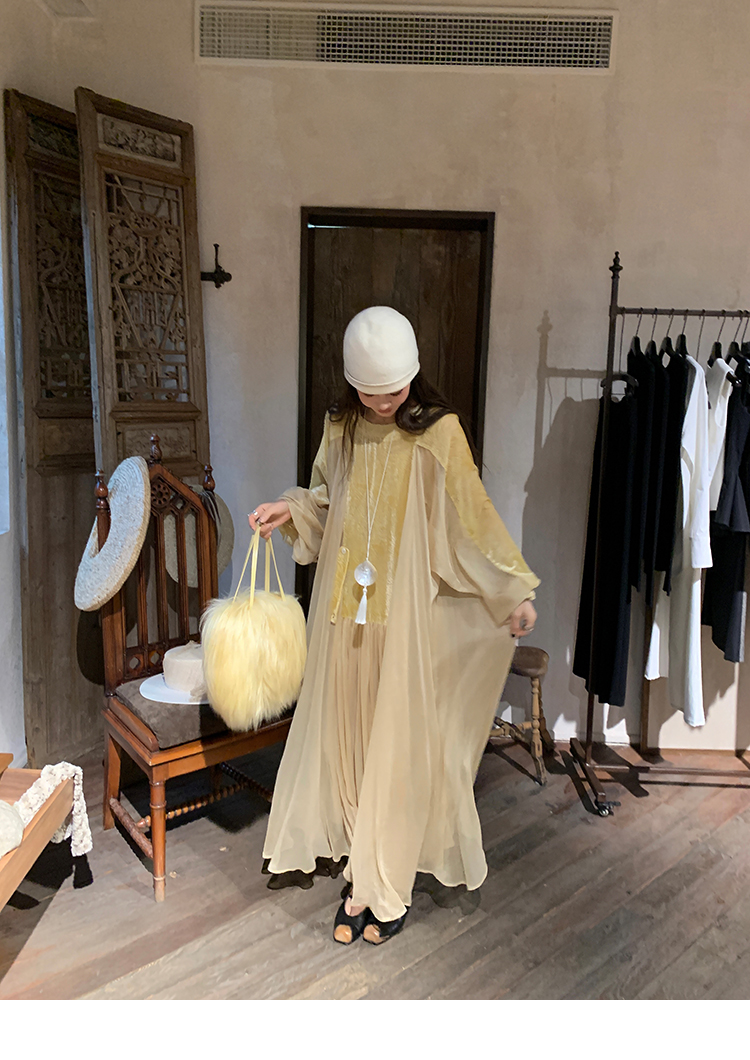 LRIB autumn rhyme amber gentle velvet patchwork dress