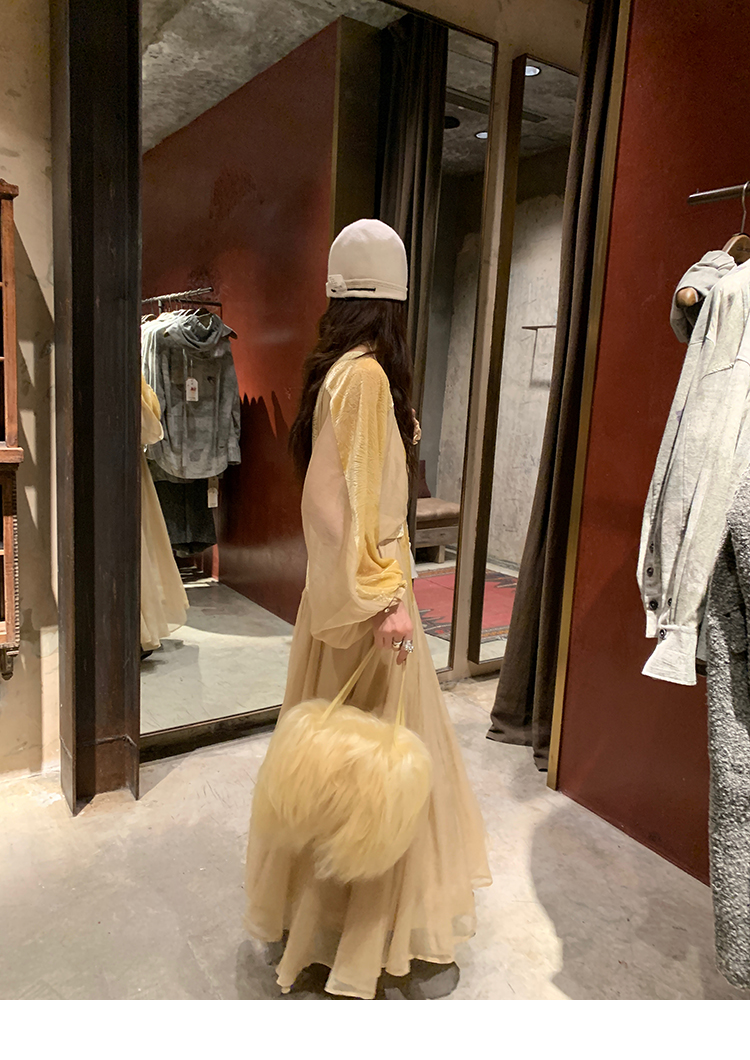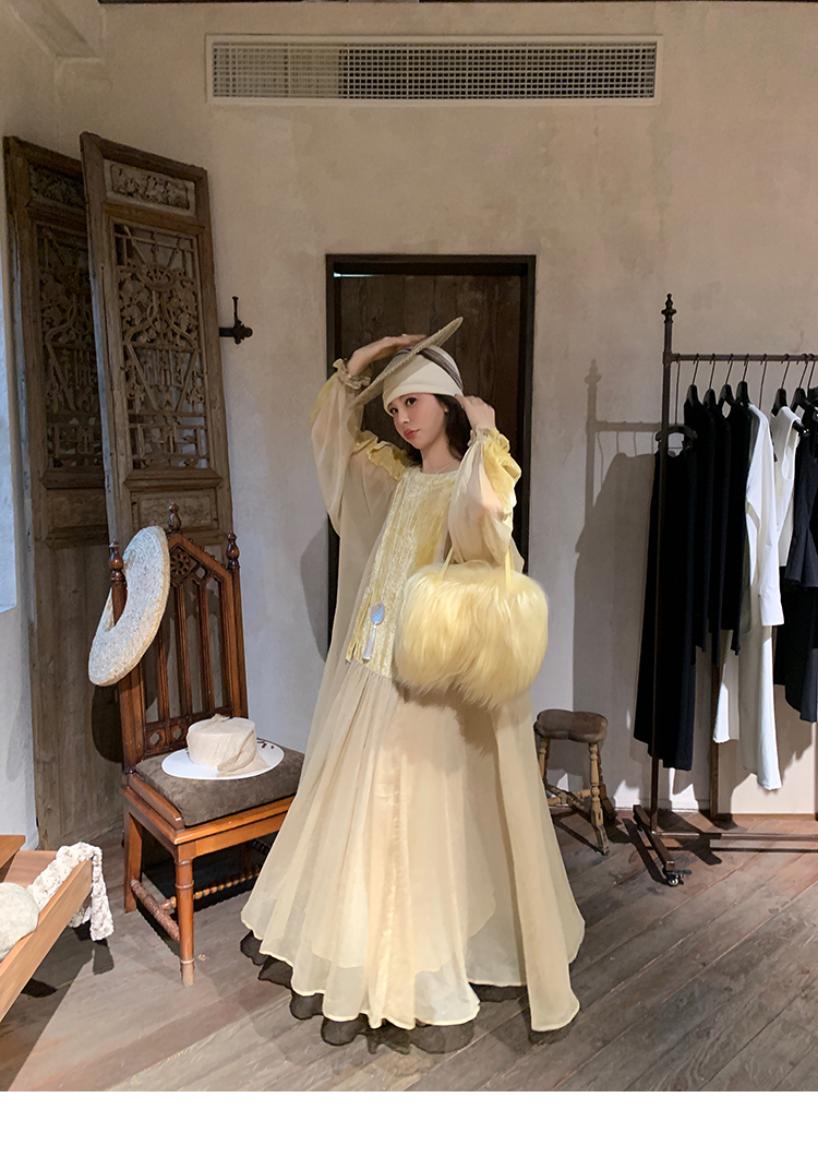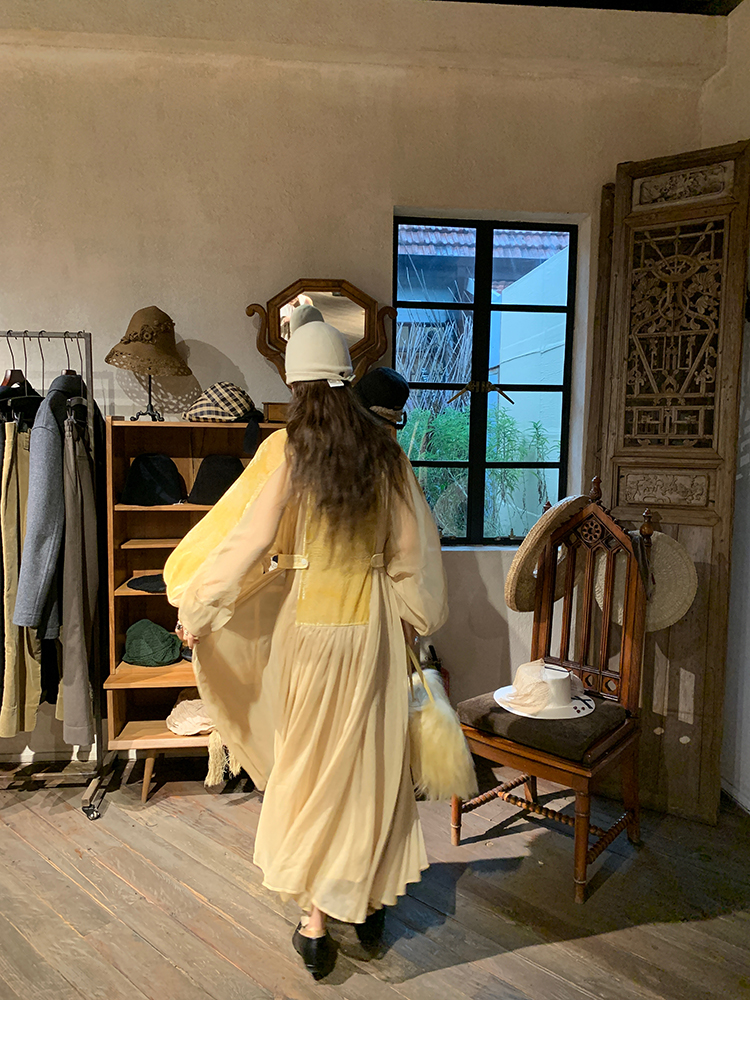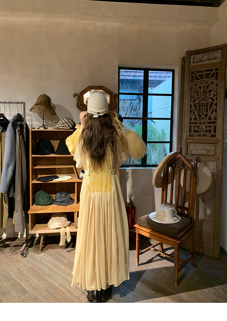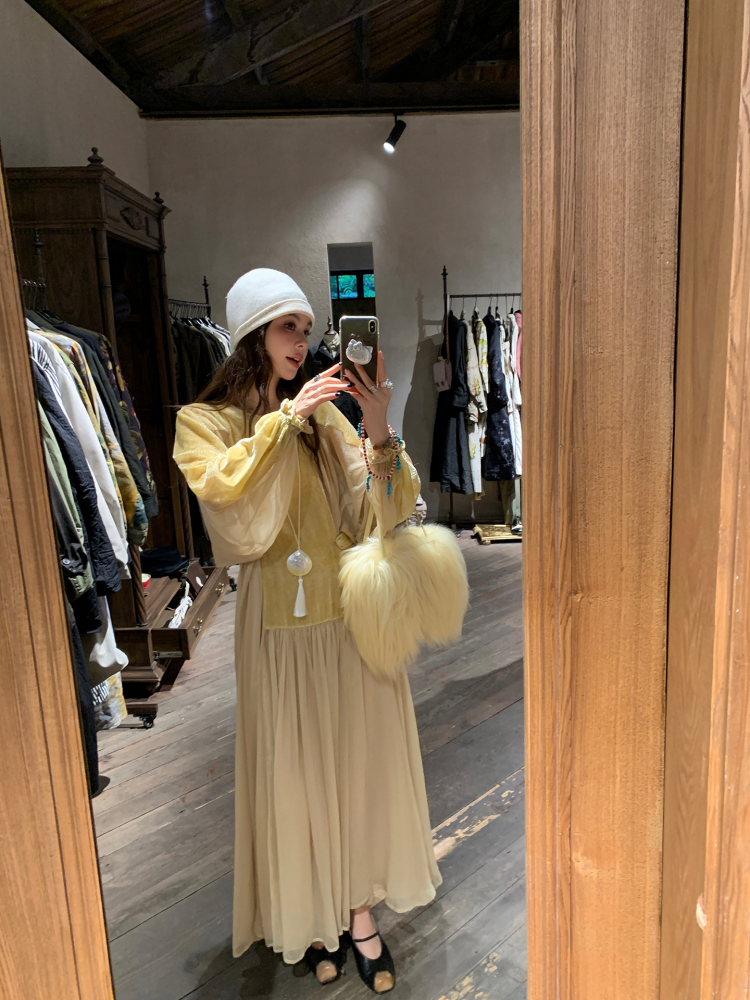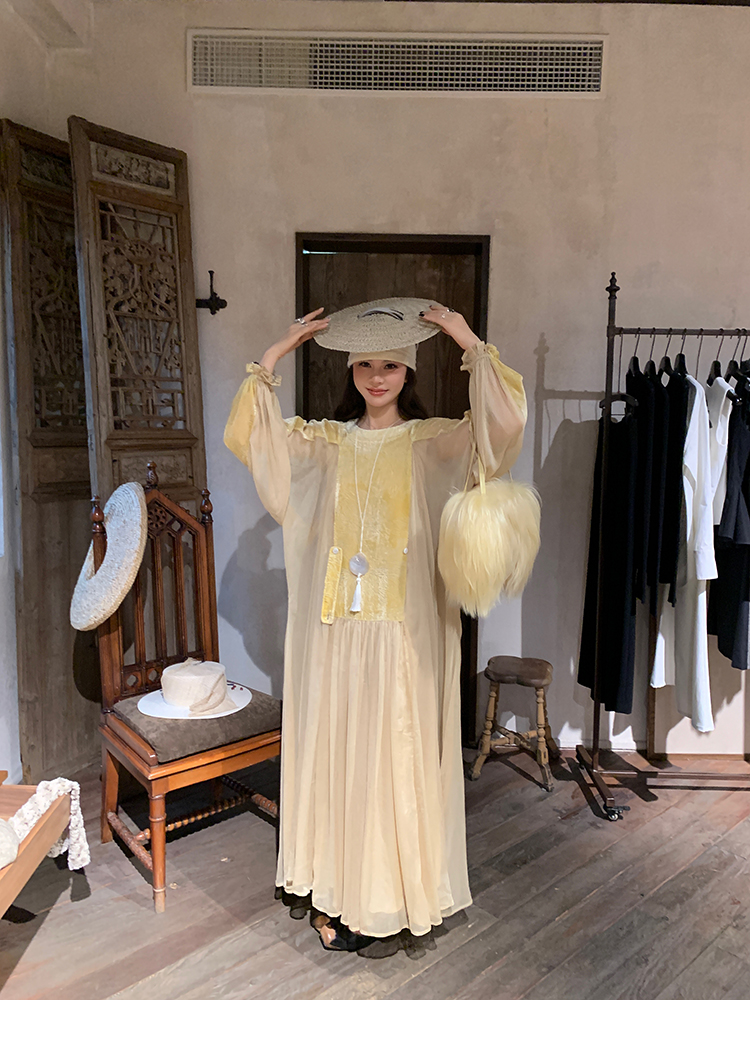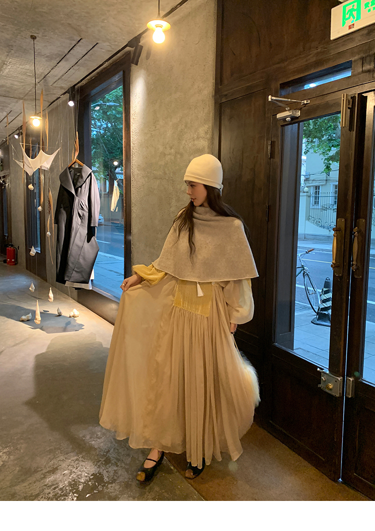 LRIB autumn rhyme amber gentle velvet patchwork dress
