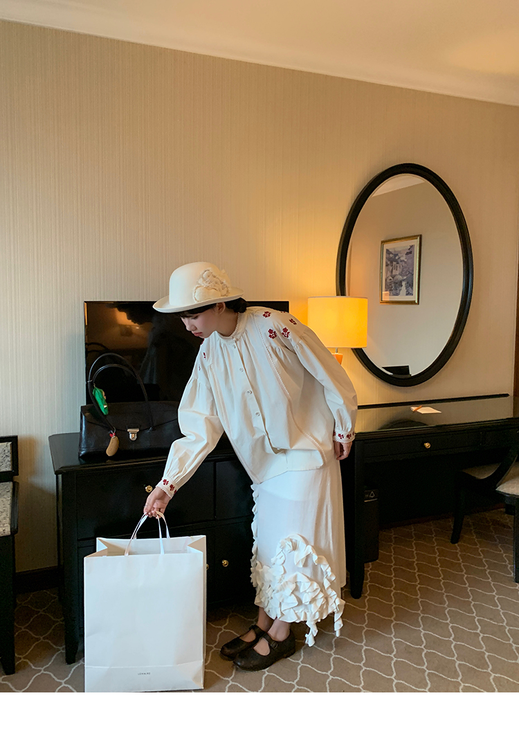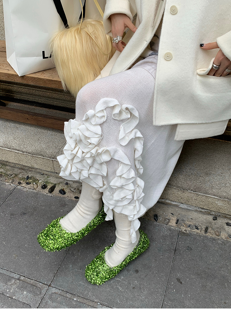 LRIB light tinfoil complex piled sense lace white knitted skirt