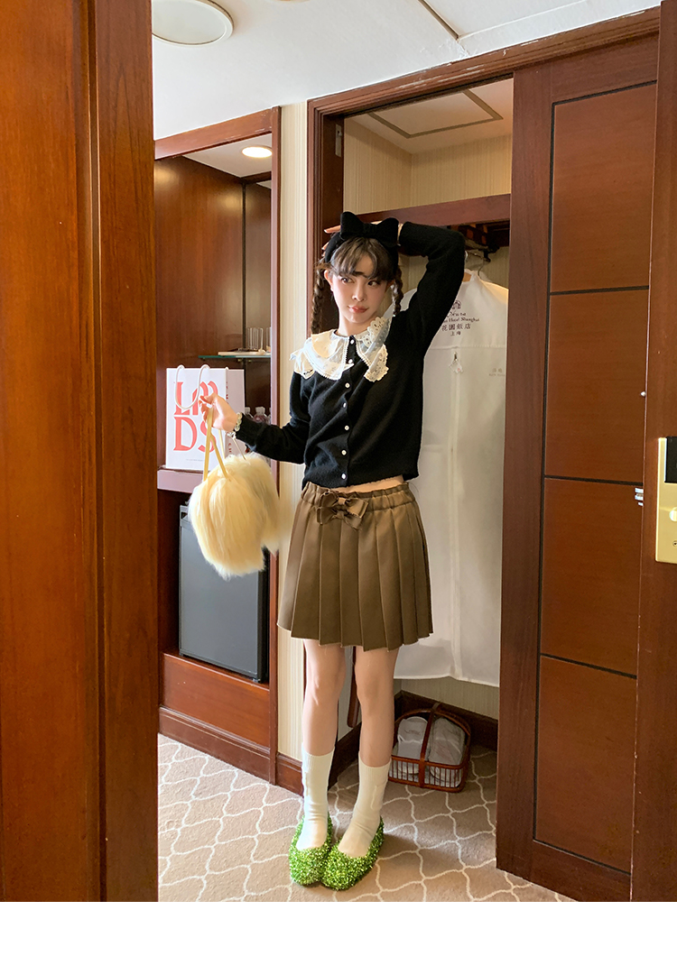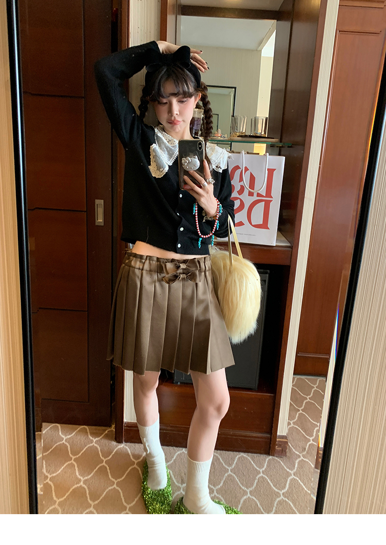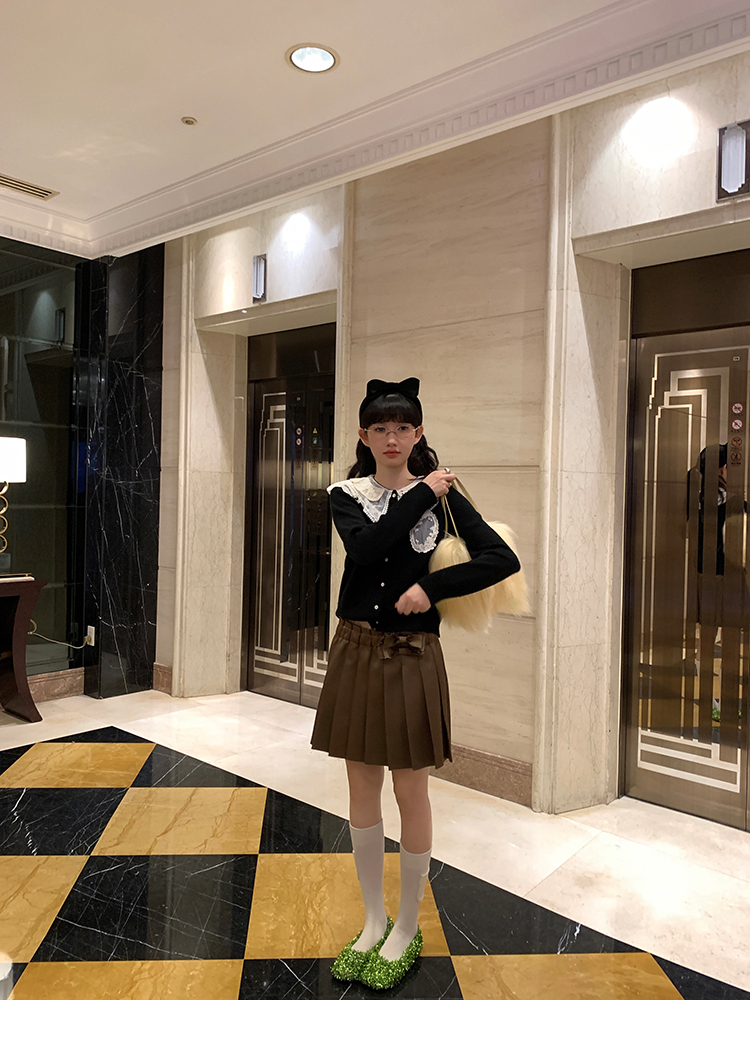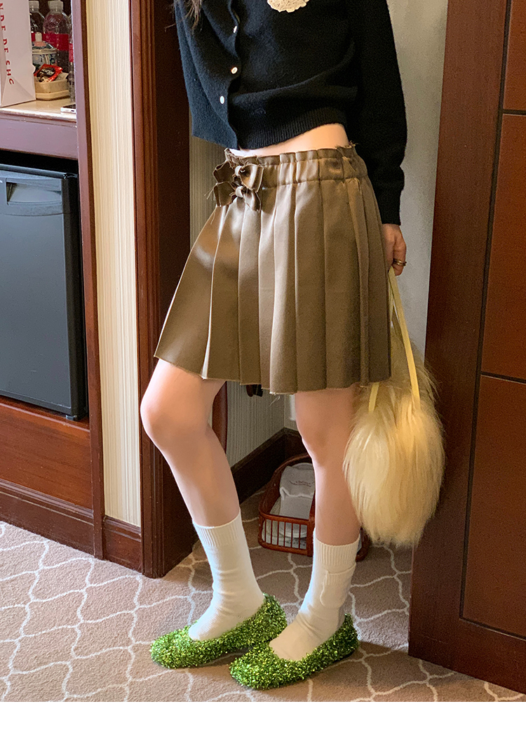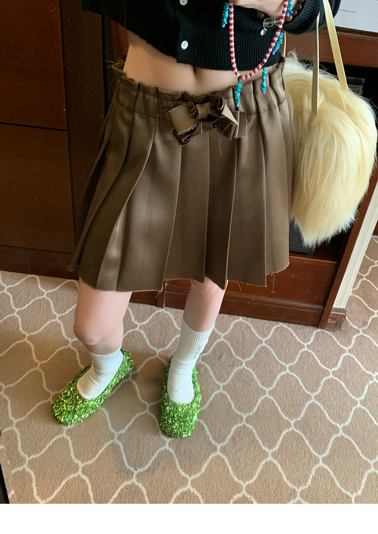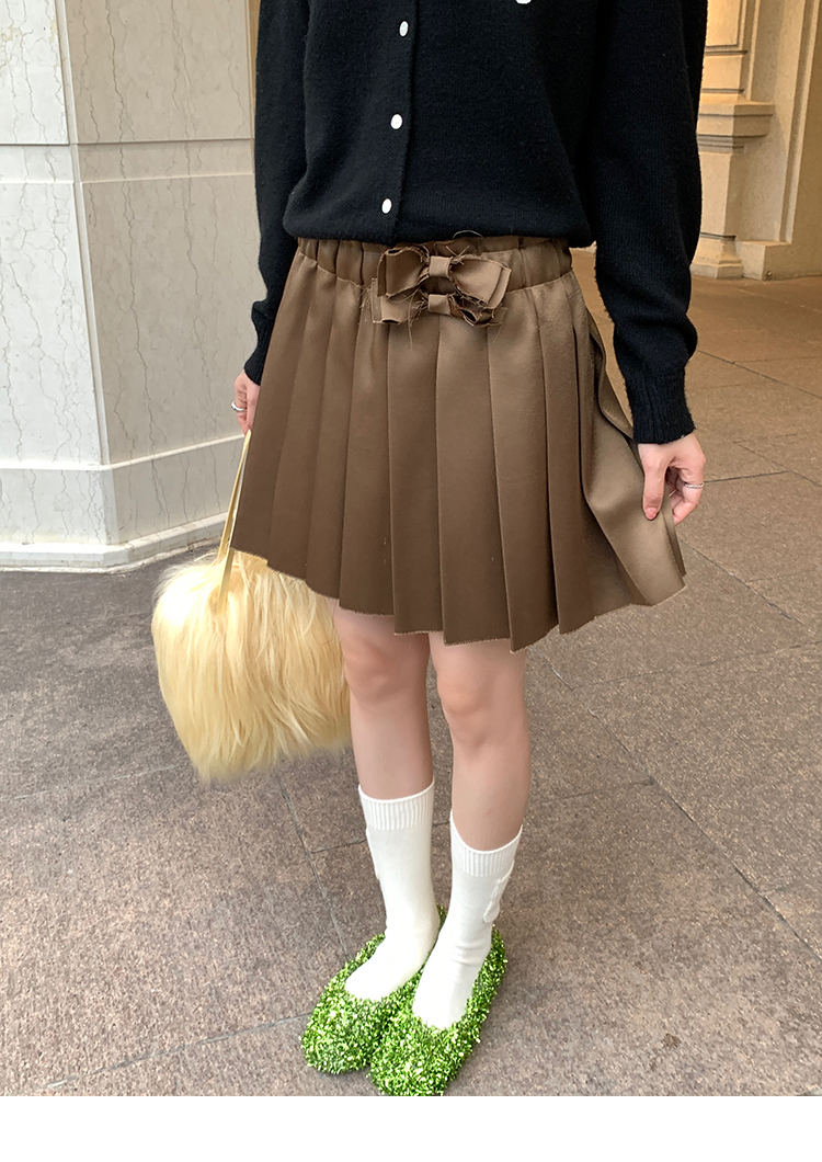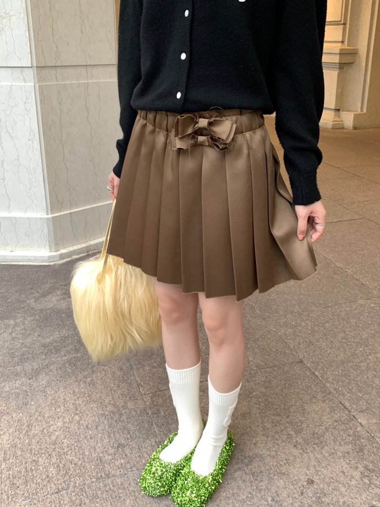 LRIB Girls Holiday Double-Layer Bow Satin Pleated Raw Edge Skirt
