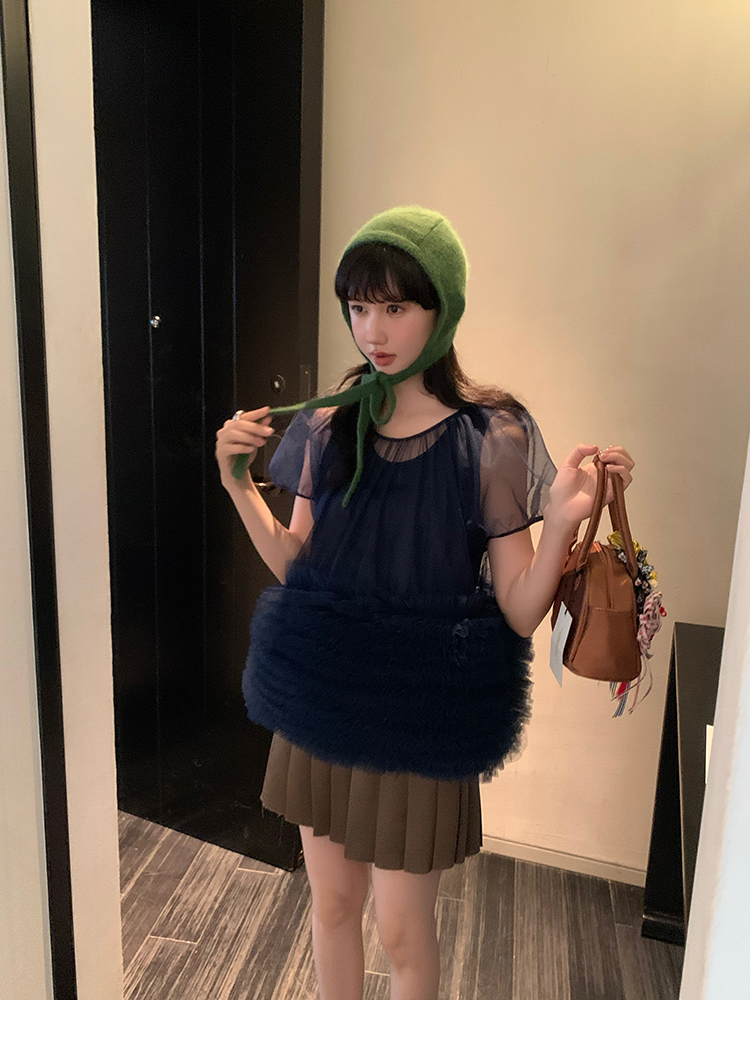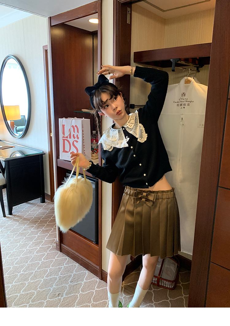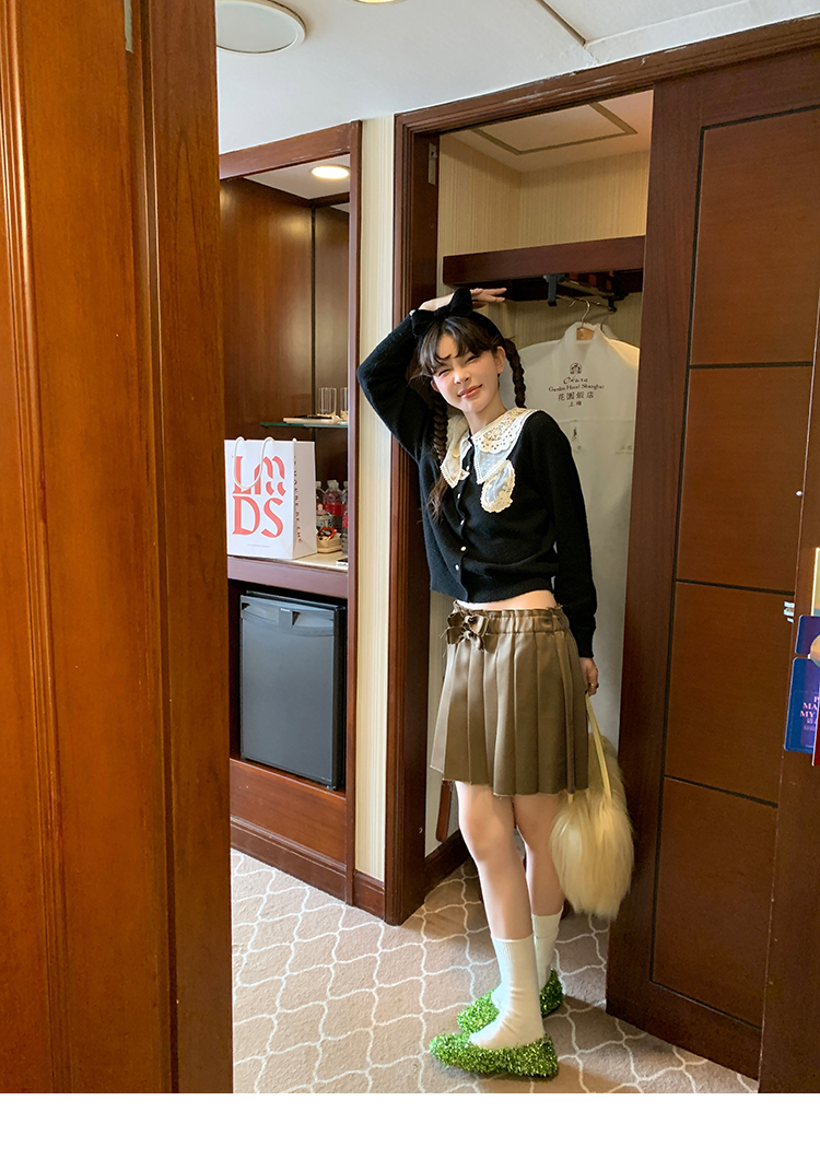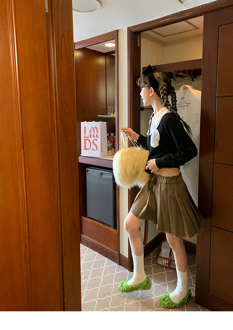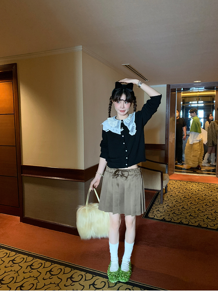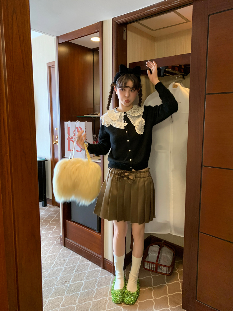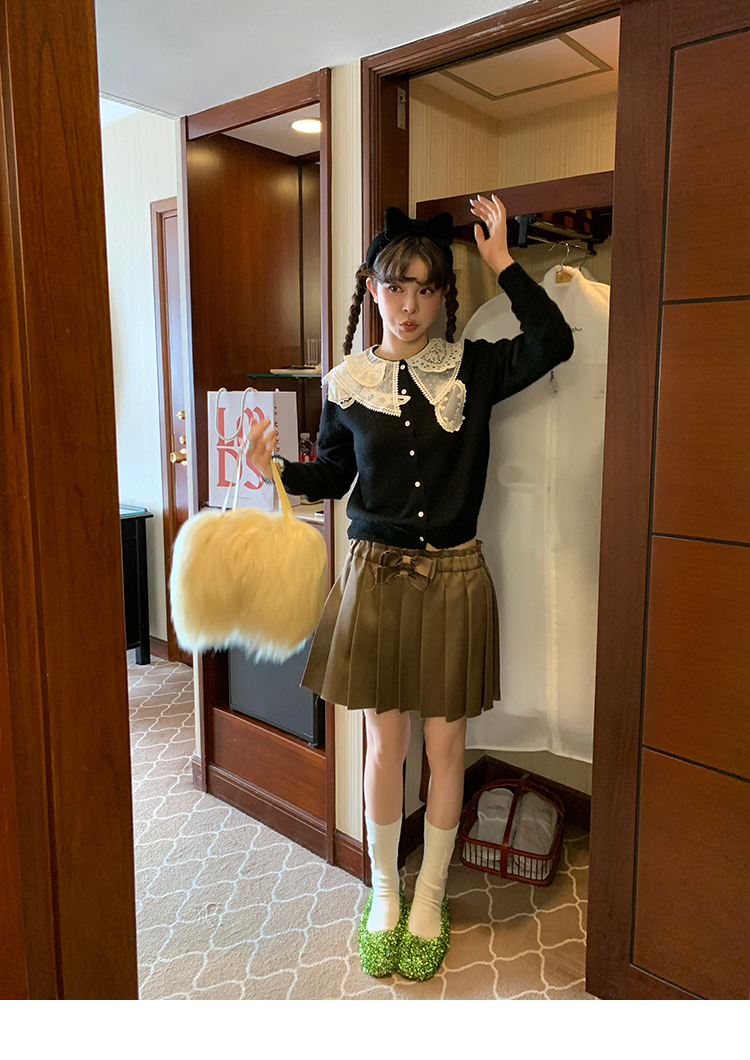 LRIB Girls Holiday Double-Layer Bow Satin Pleated Raw Edge Skirt