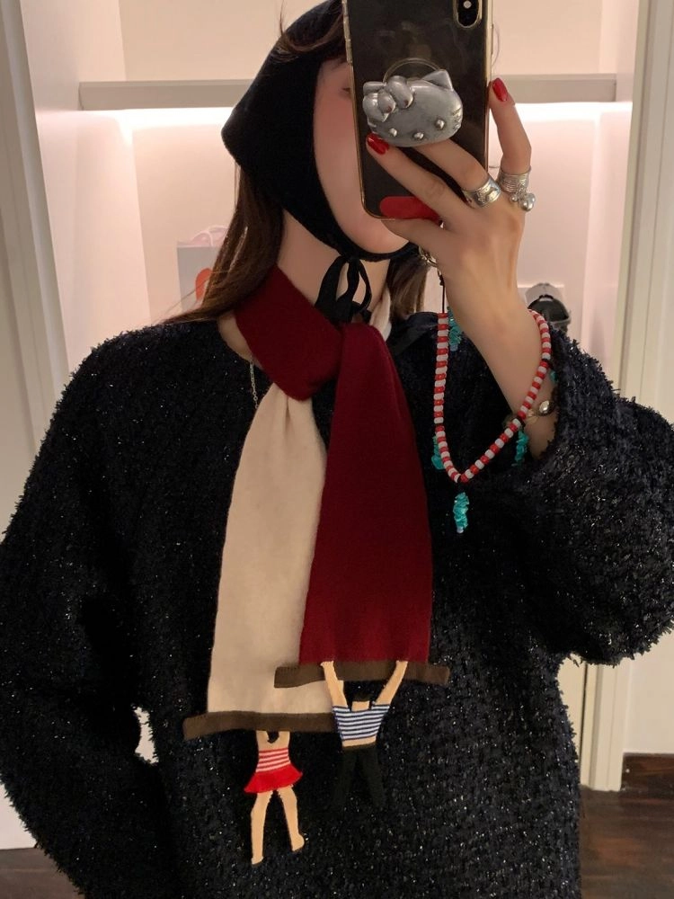 LRIB cute swimming figurine color knitted small scarf