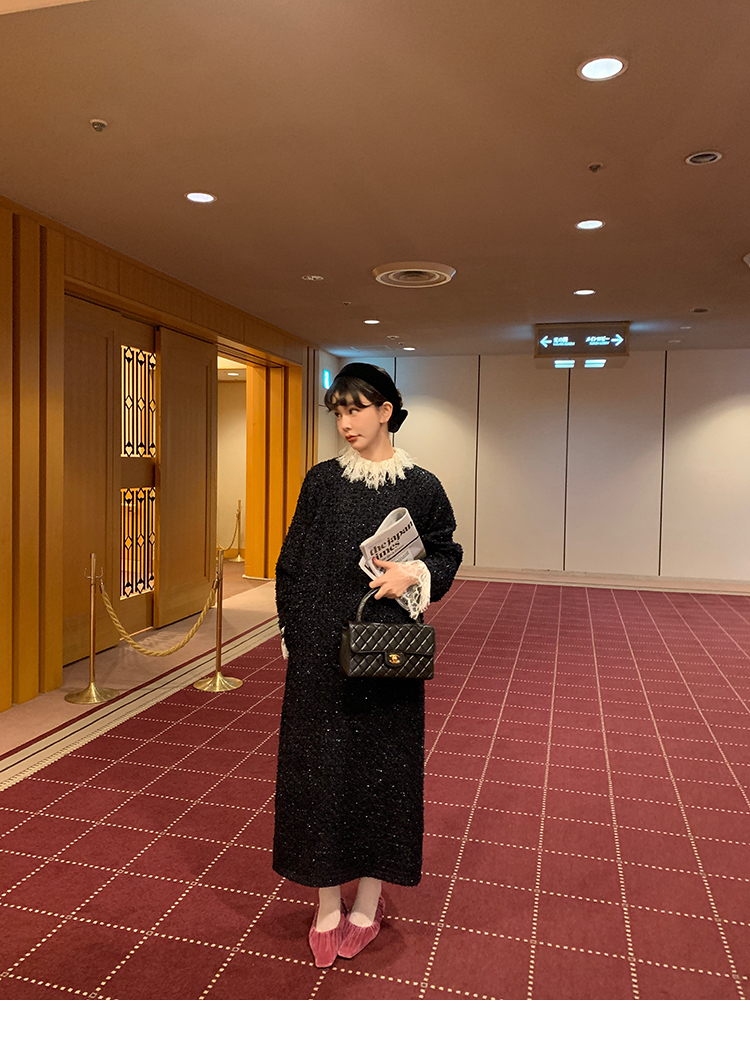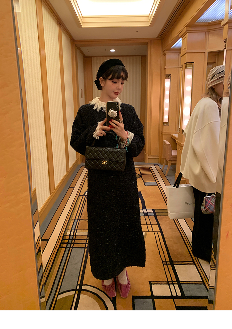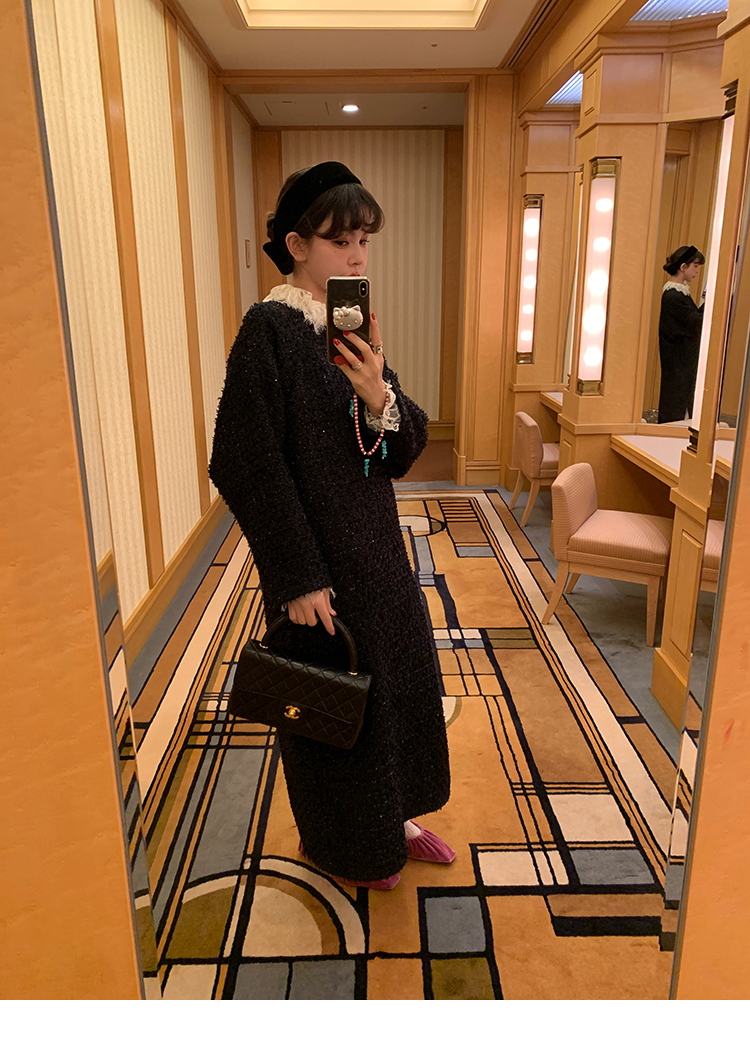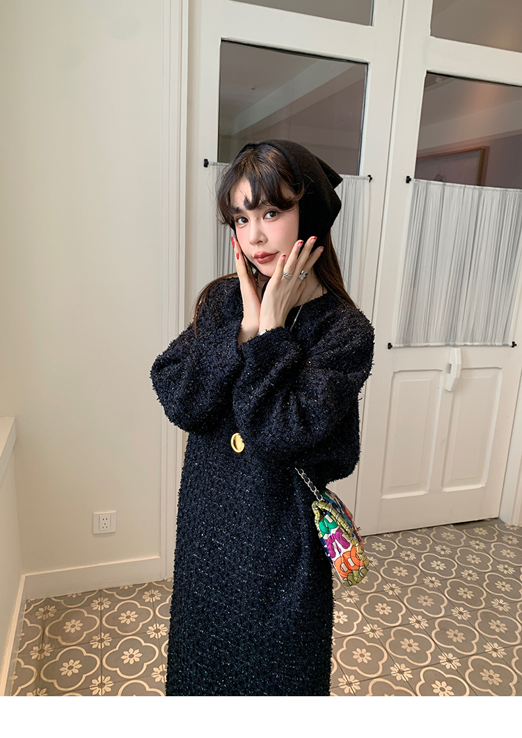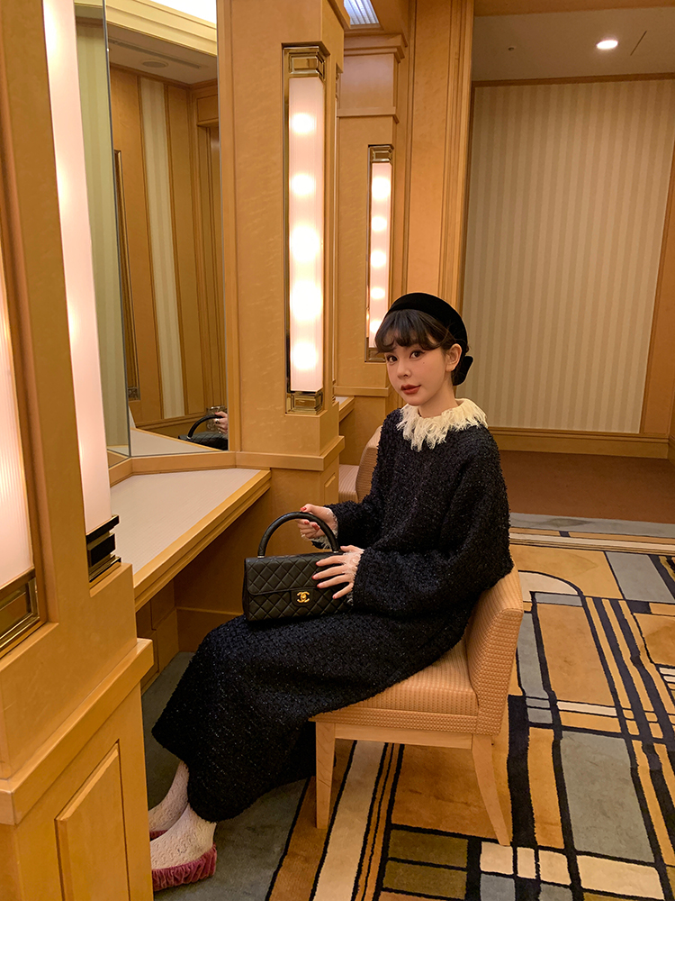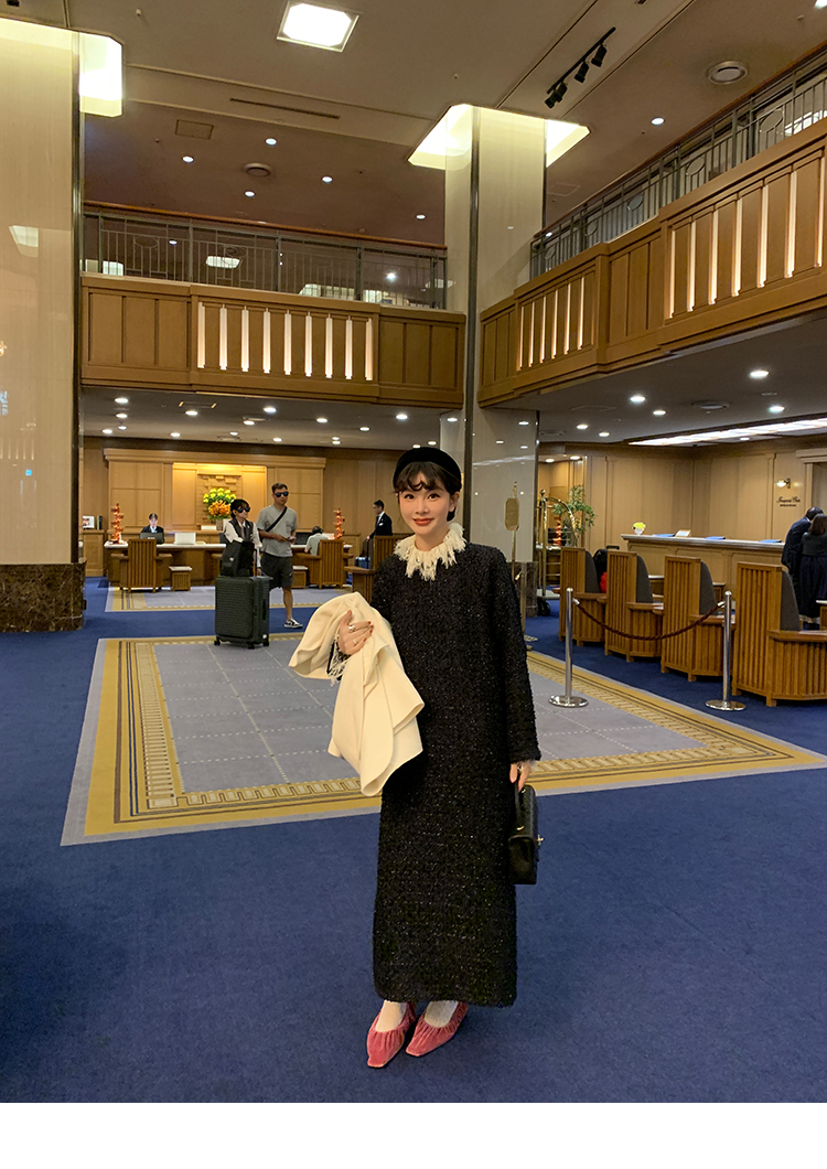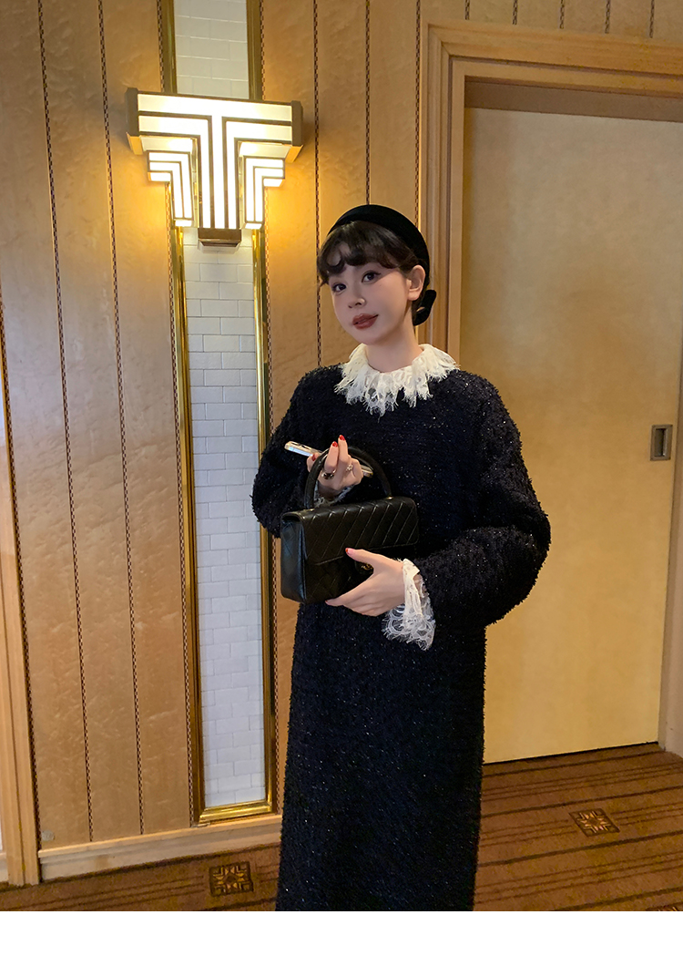LRIB romantic dignified fine shimmering tweed long-sleeved dress