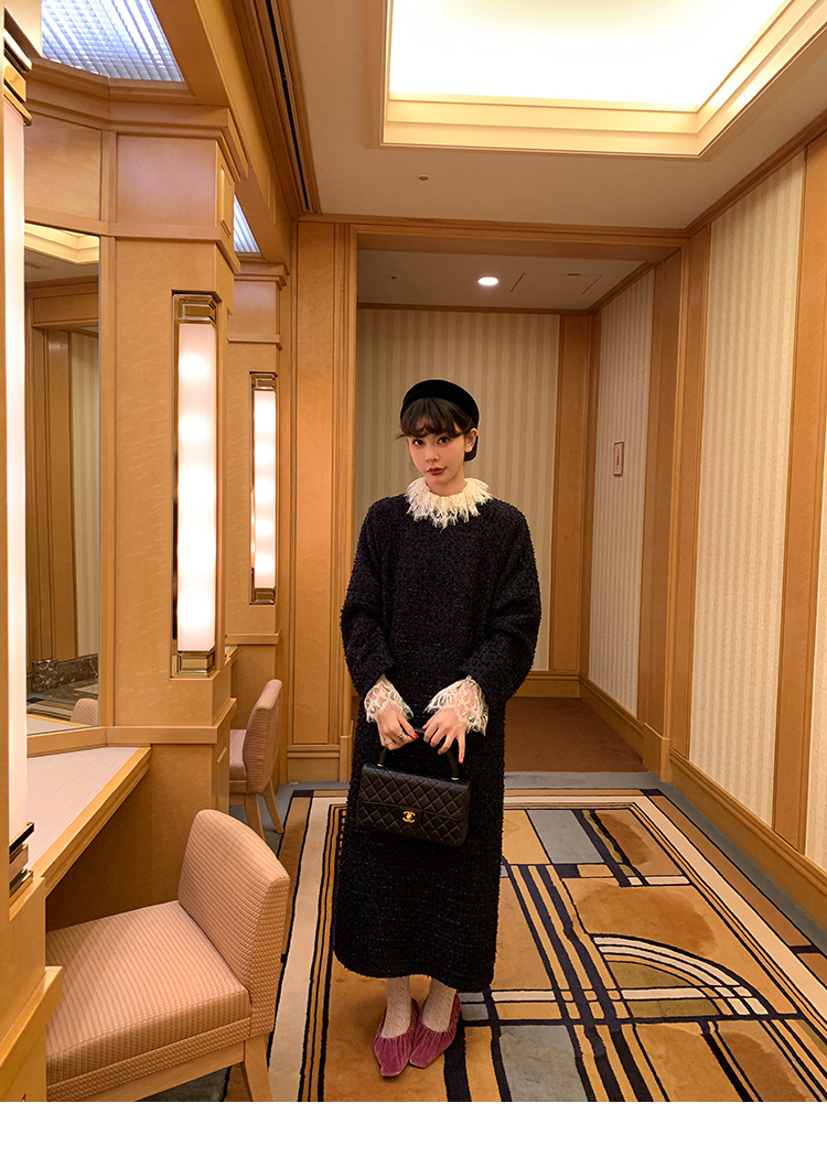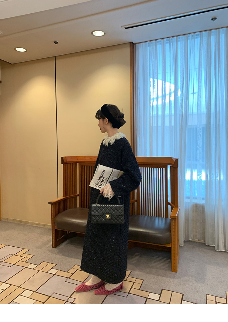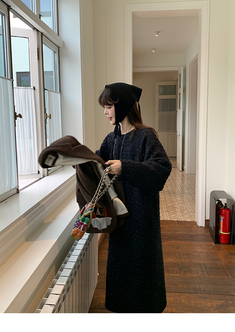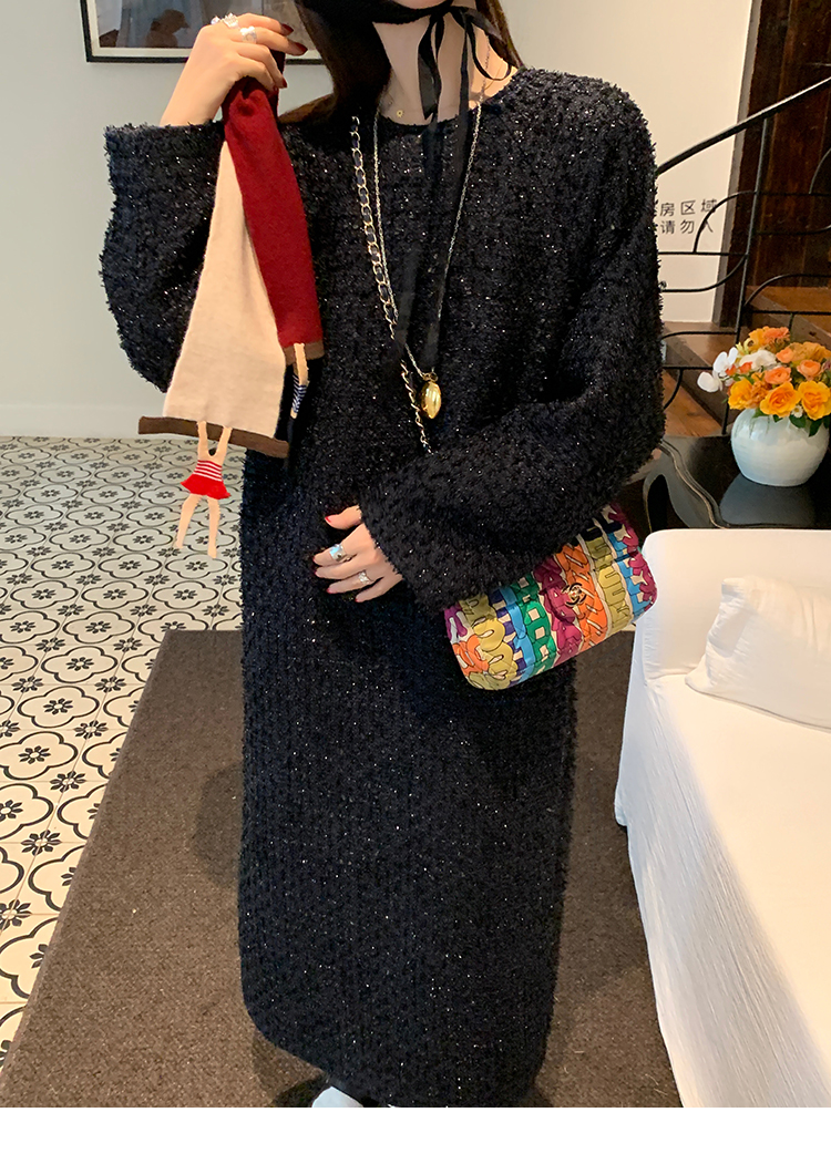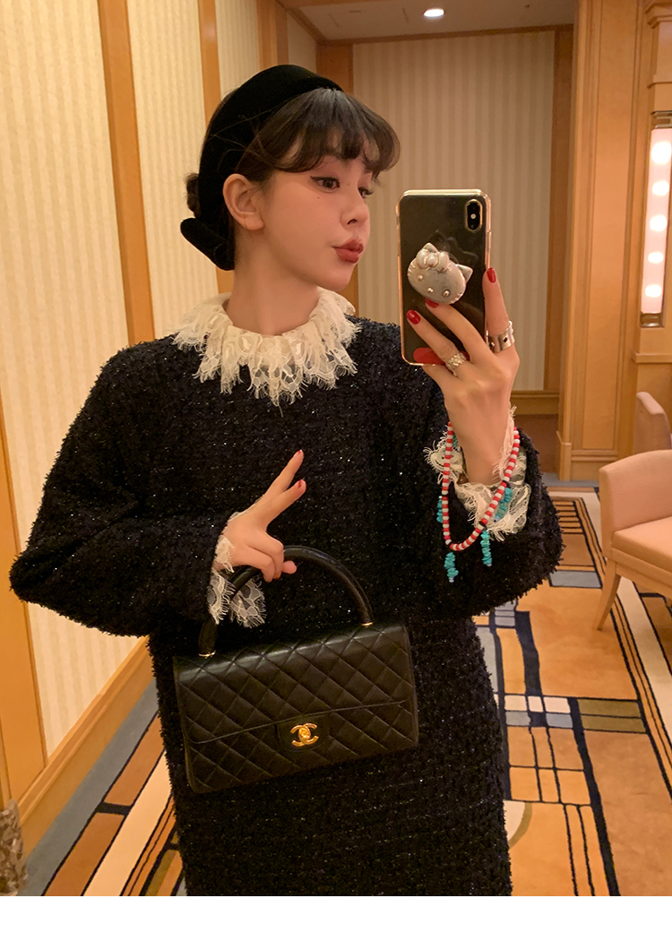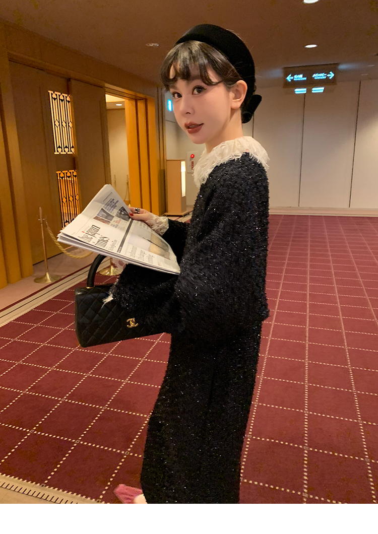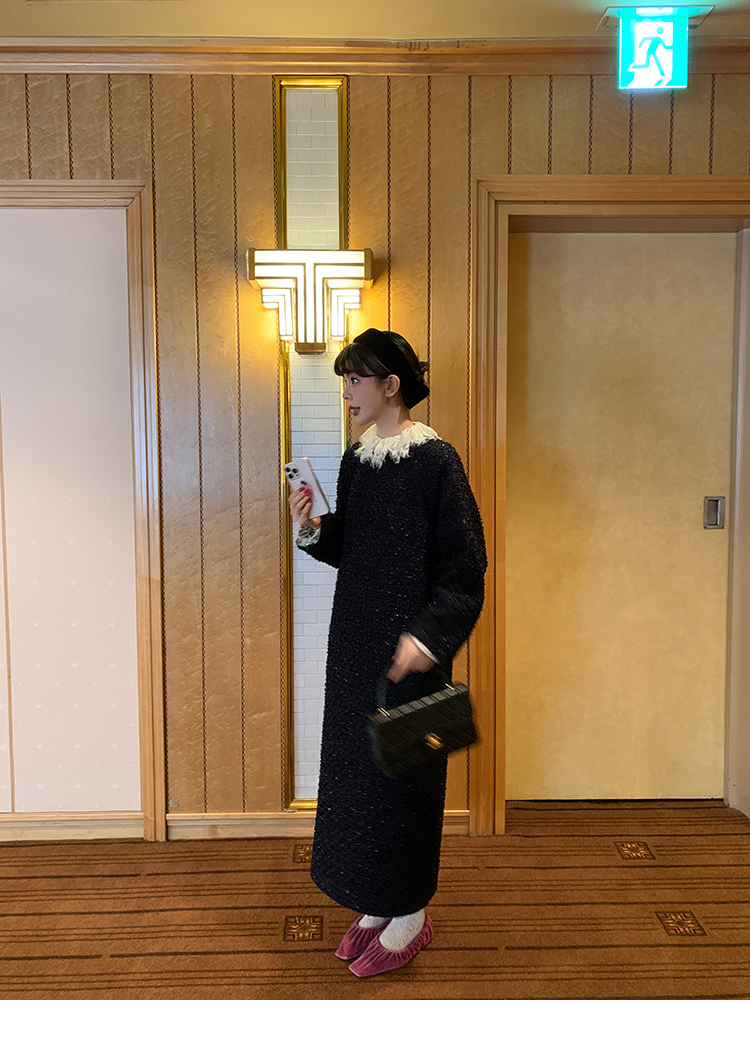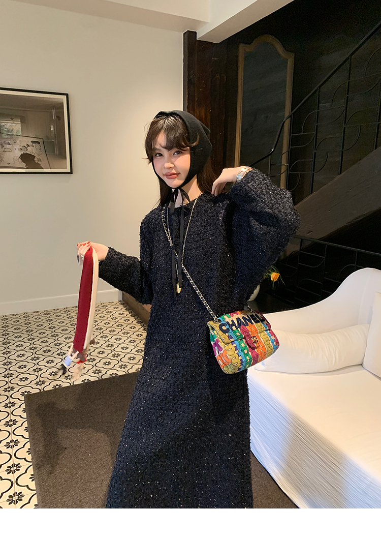 LRIB romantic dignified fine shimmering tweed long-sleeved dress
