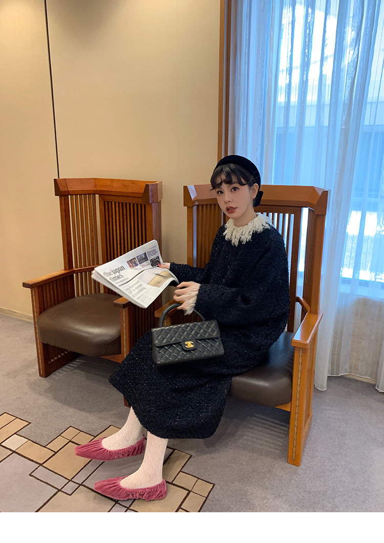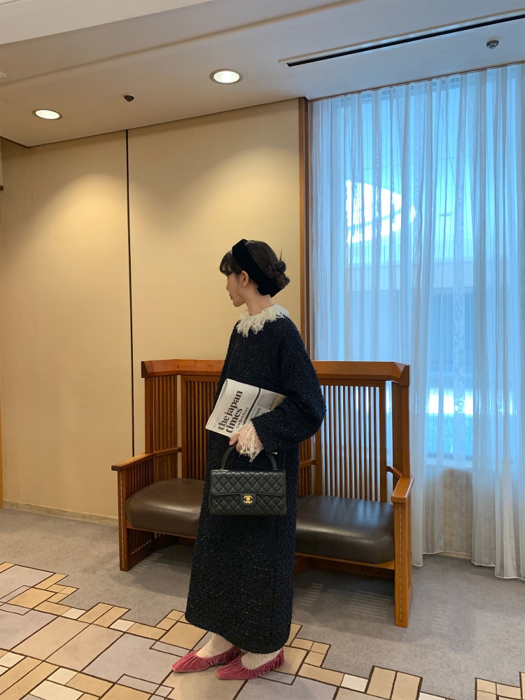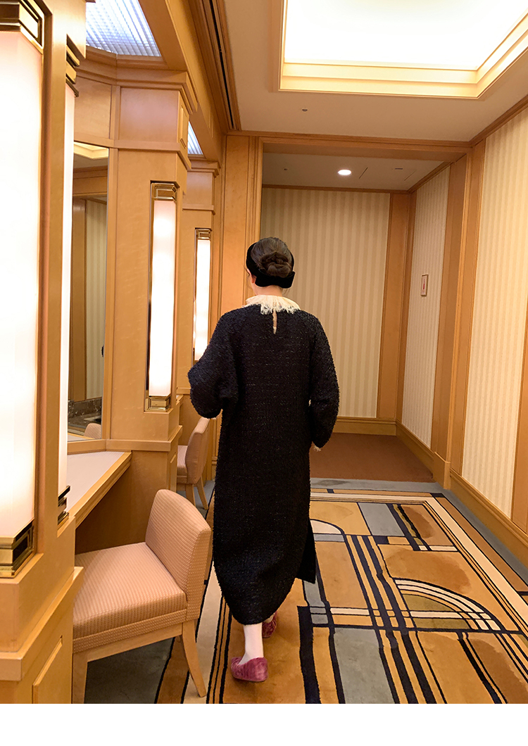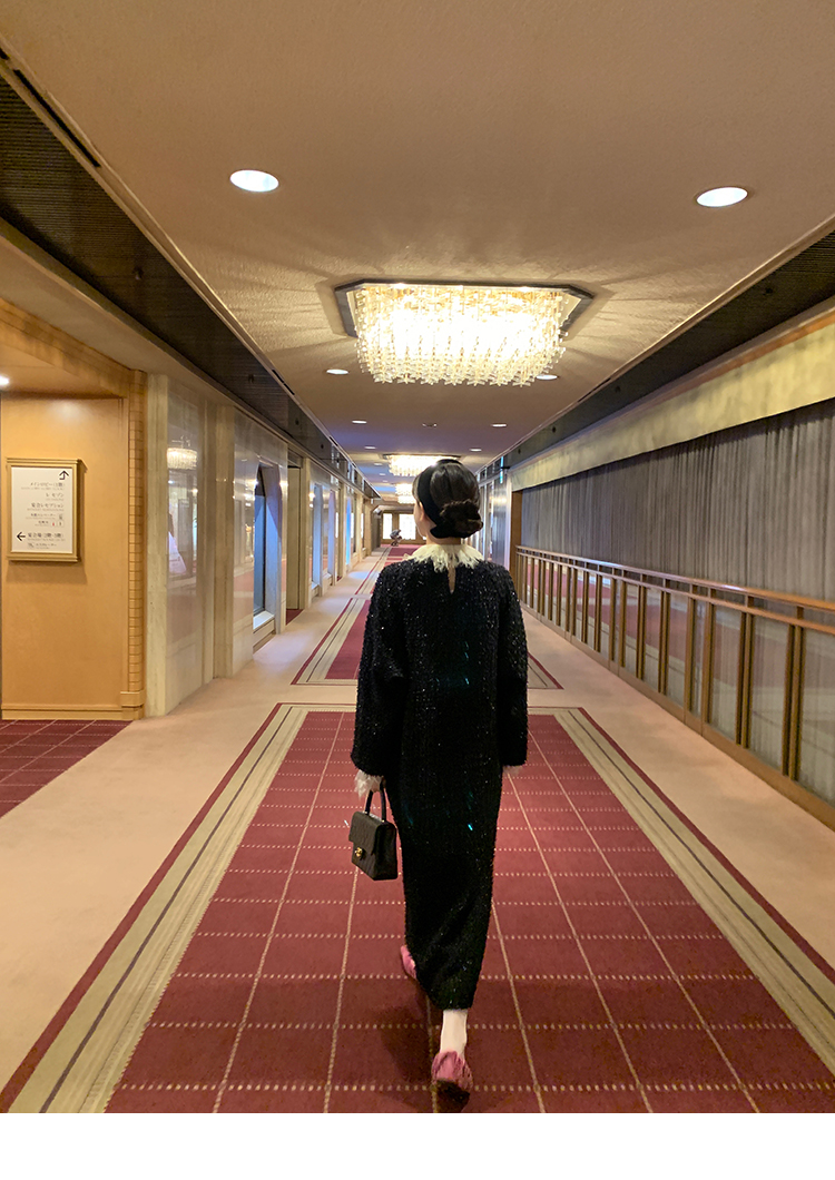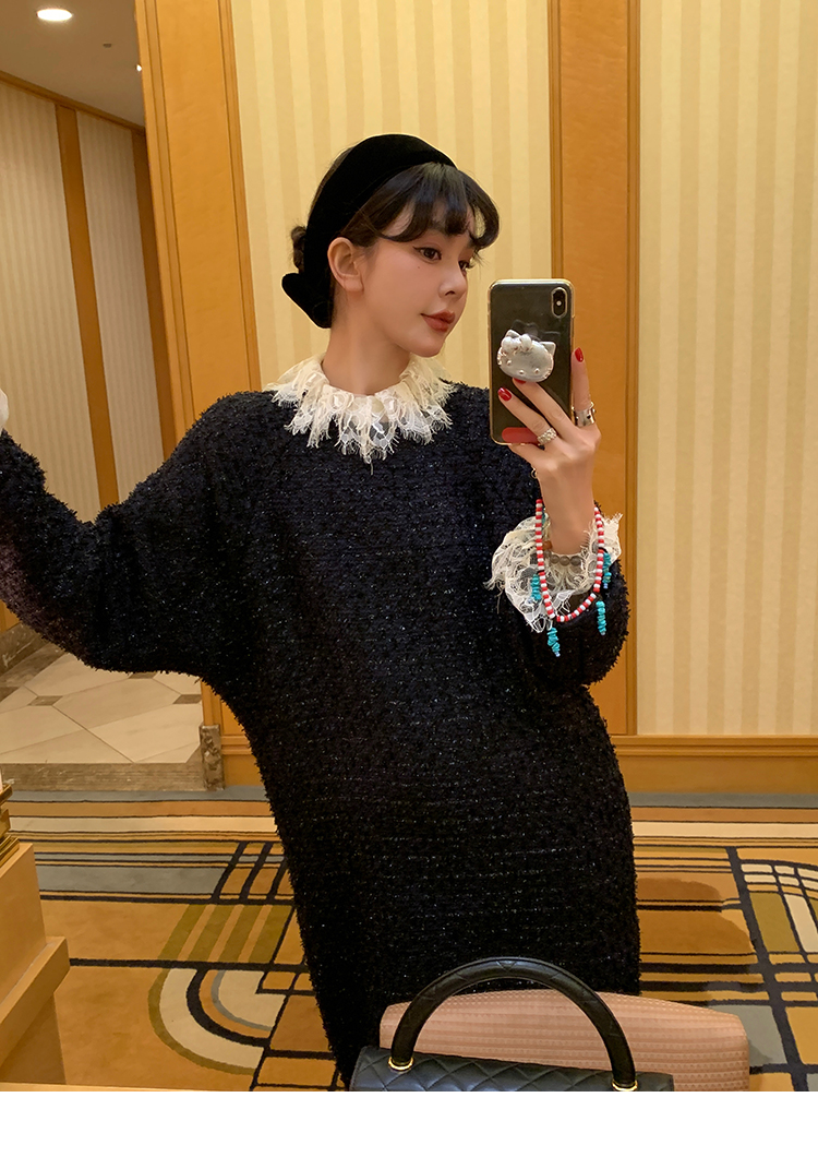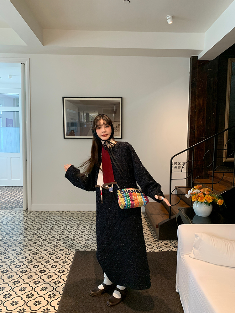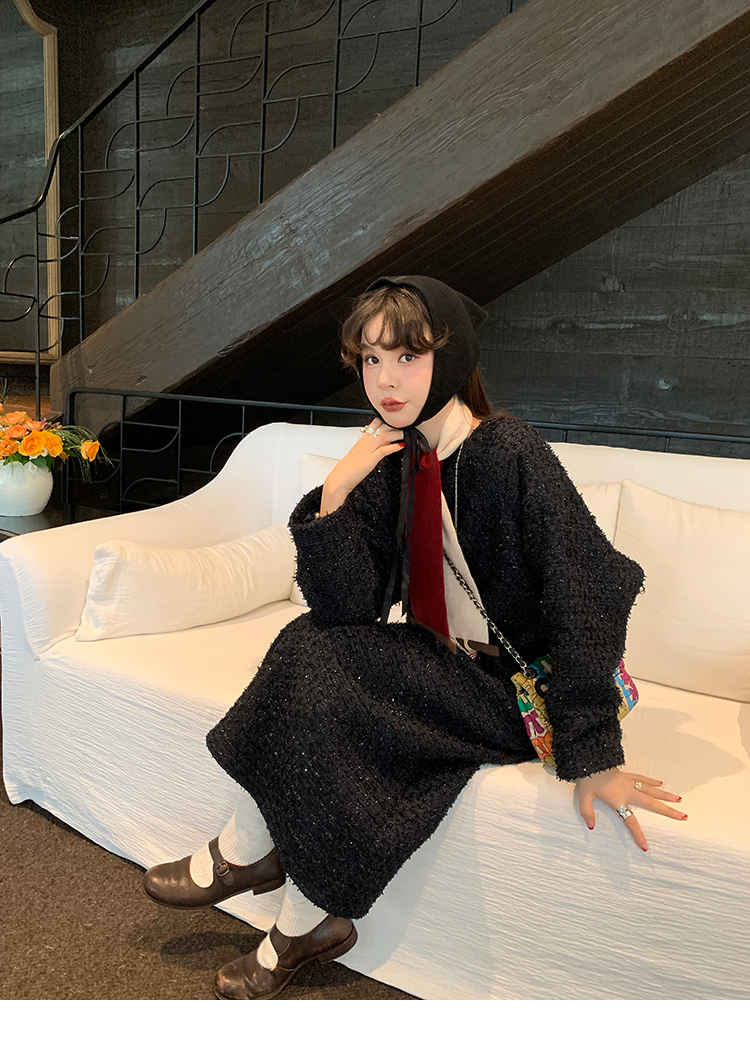 LRIB romantic dignified fine shimmering tweed long-sleeved dress